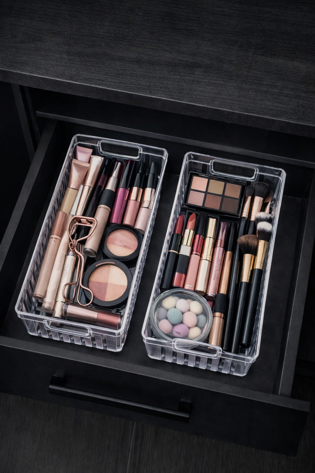 Thanks to its transparent design, you can easily see the products inside and quickly find the makeup you want.