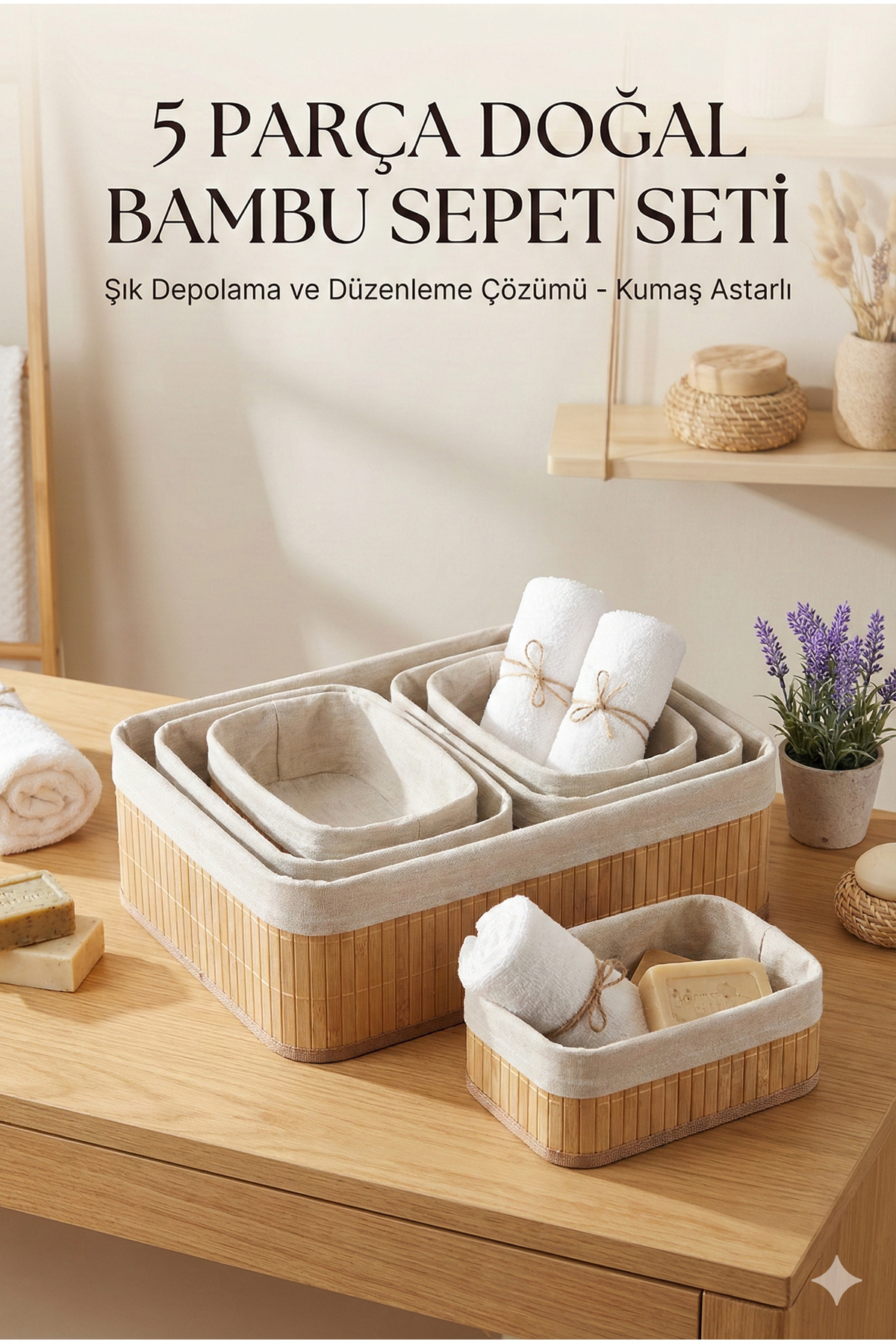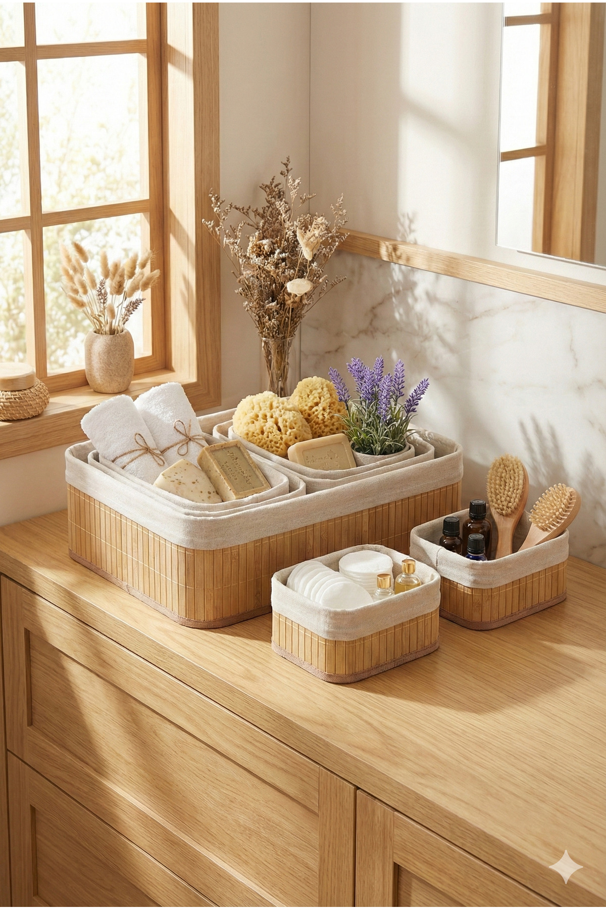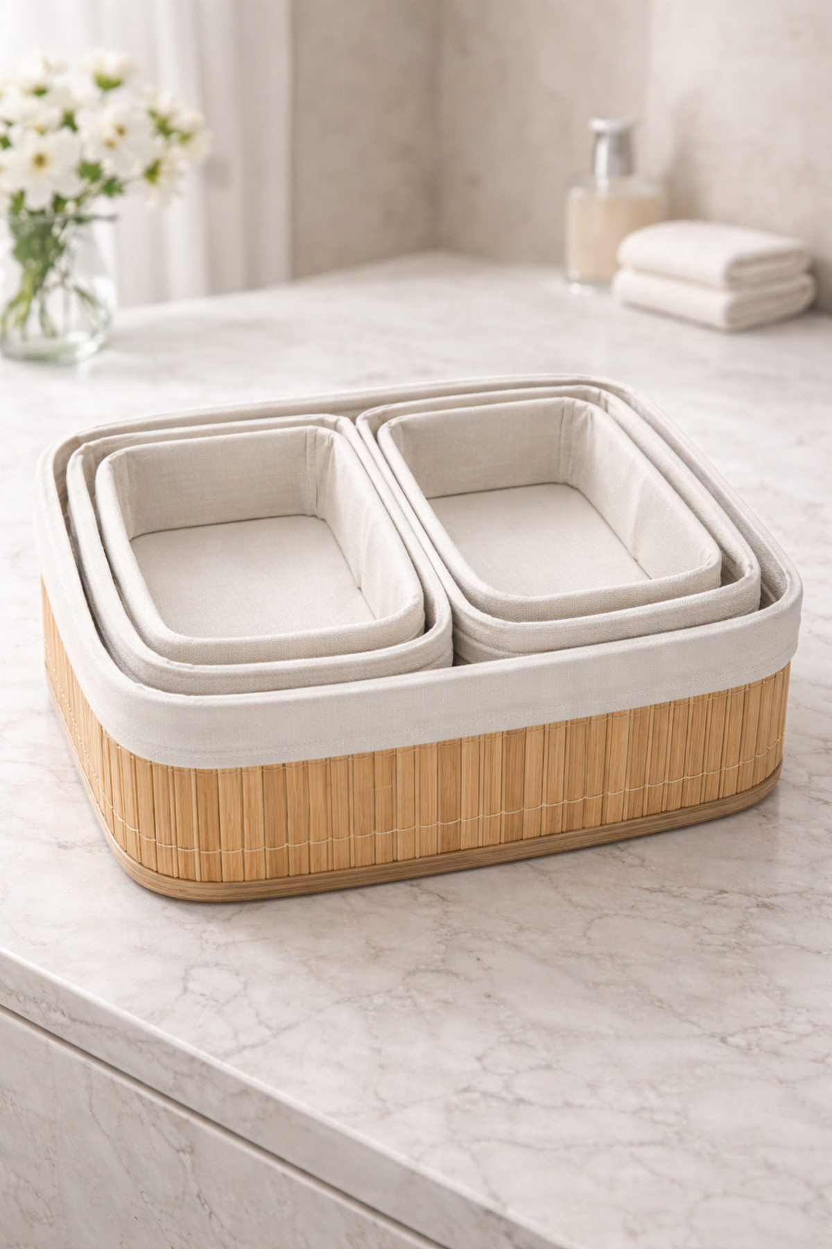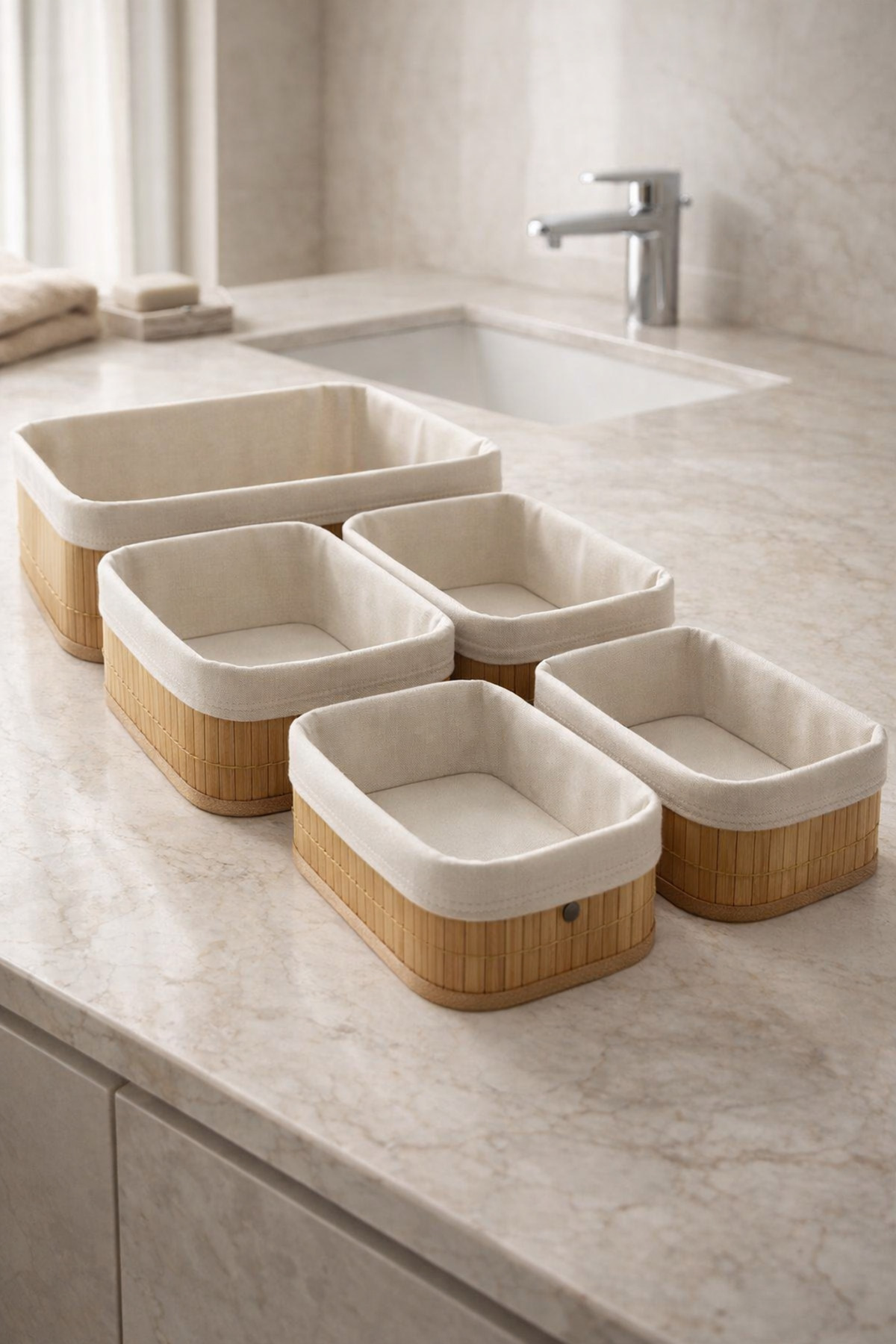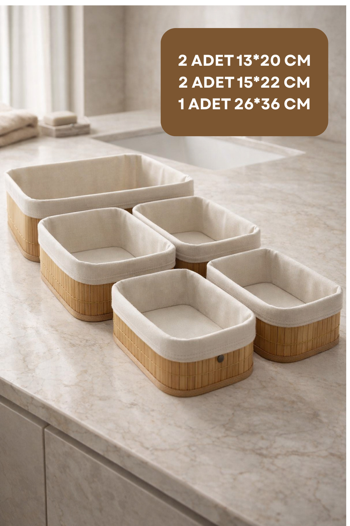 BEYZANA Bamboo Organizer Basket Set of 5 Bathroom Cabinet Kitchen | ByTR