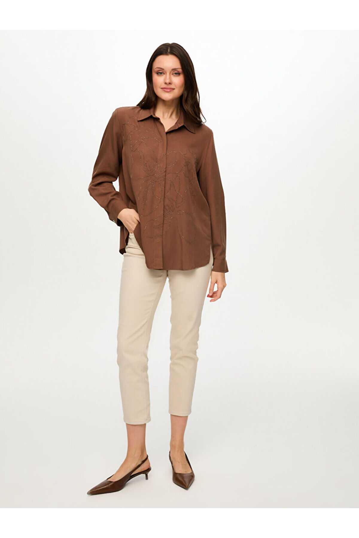 Chain Embroidery Detailed Lyocell Shirt S26GML024