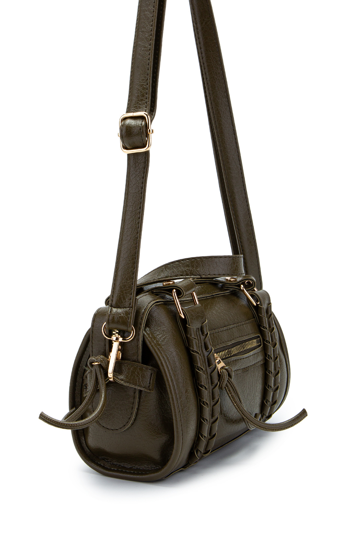 minebag Jimmy Women's Crossbody Bag with Knitting and Pendant Detail Khaki | ByTR