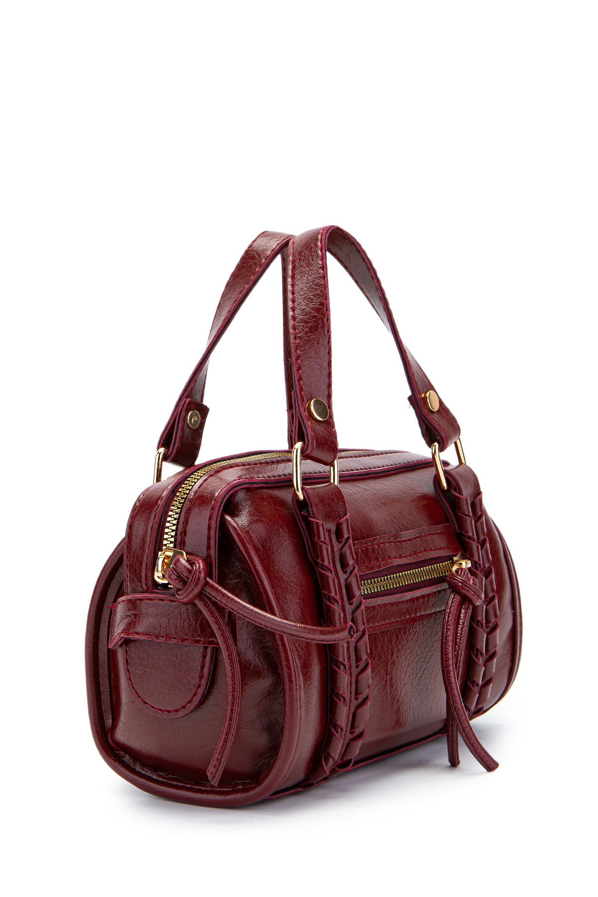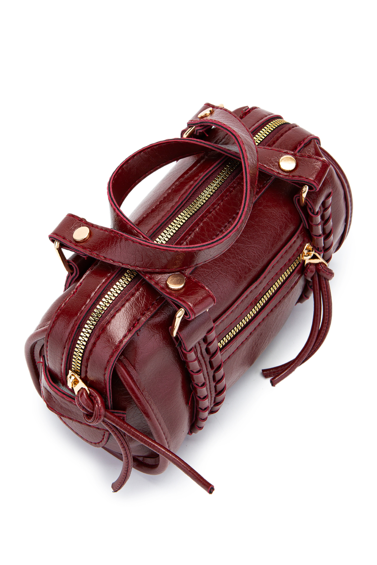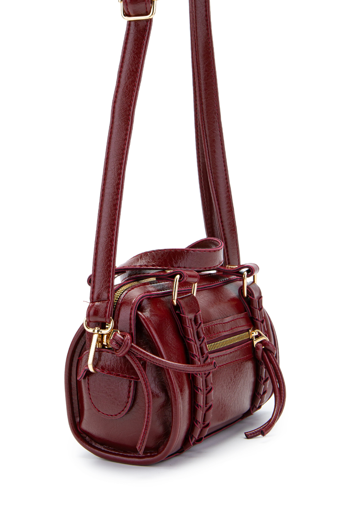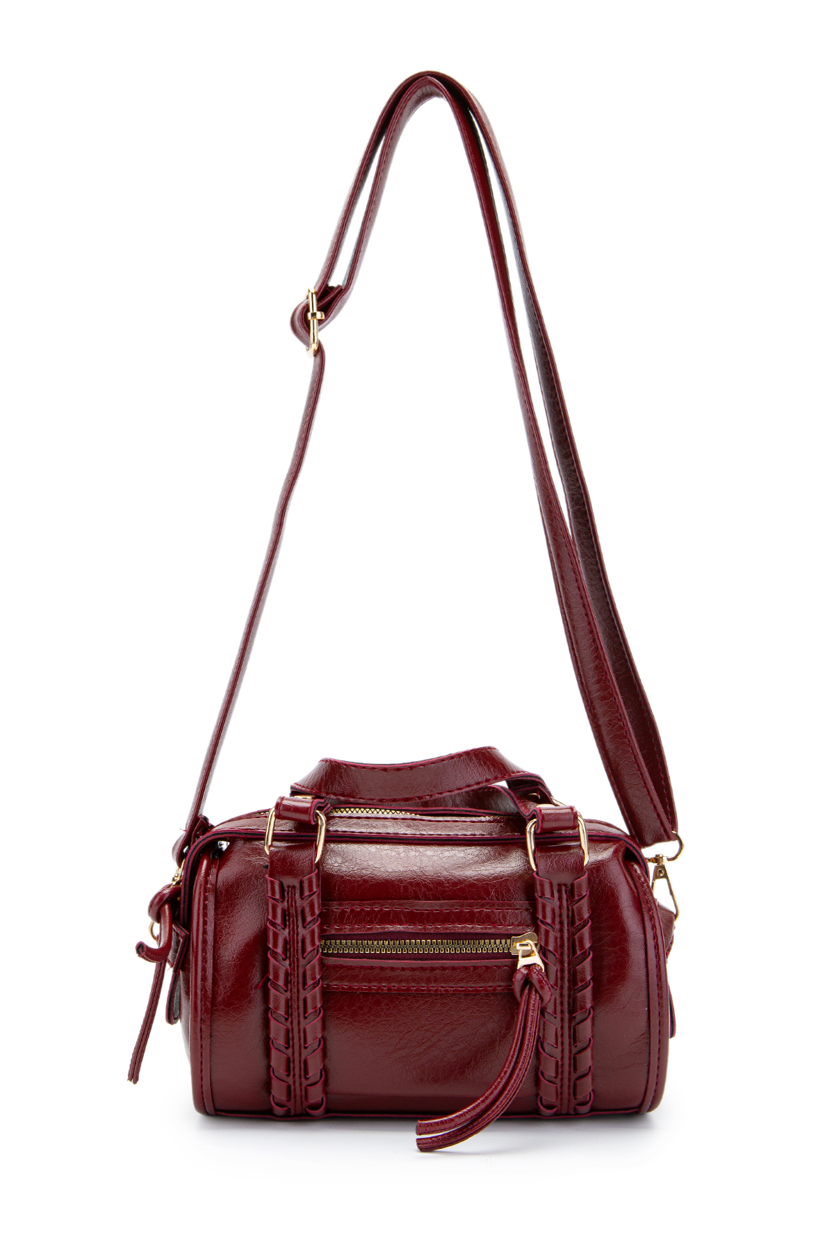 minebag Jimmy Women's Crossbody Bag with Knitting and Pendant Detail Burgundy | ByTR