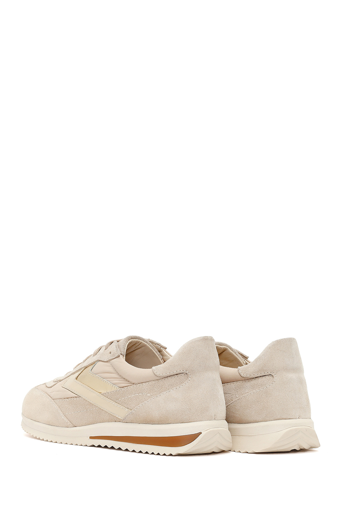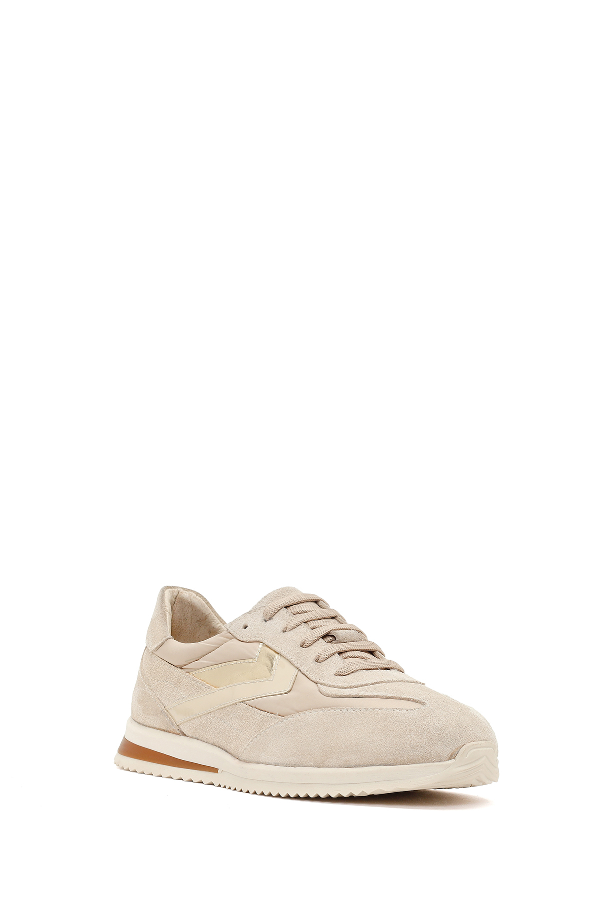 Women's Beige Lace-Up Suede Leather Sneaker Includes cowhide.