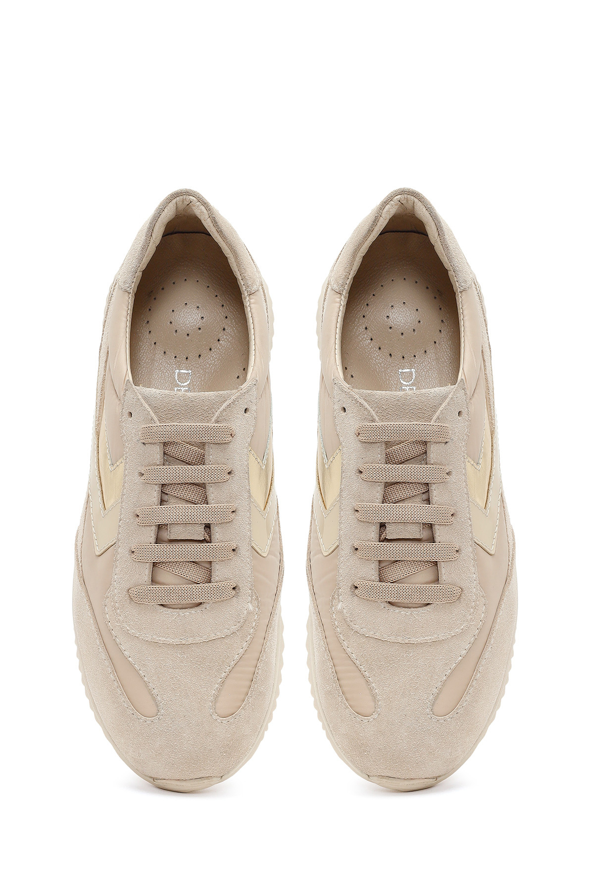 Derimod Women's Beige Lace-Up Suede Leather Sneaker 26PFD410914 | ByTR
