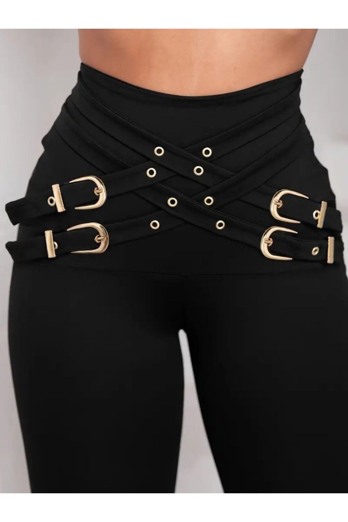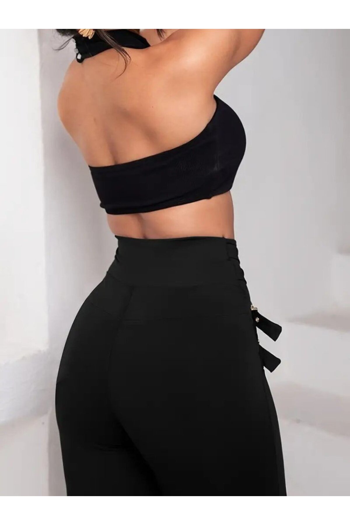 Viyamo Women's High Waist Cross Front Bird Eye Detailed Diver Leggings | ByTR