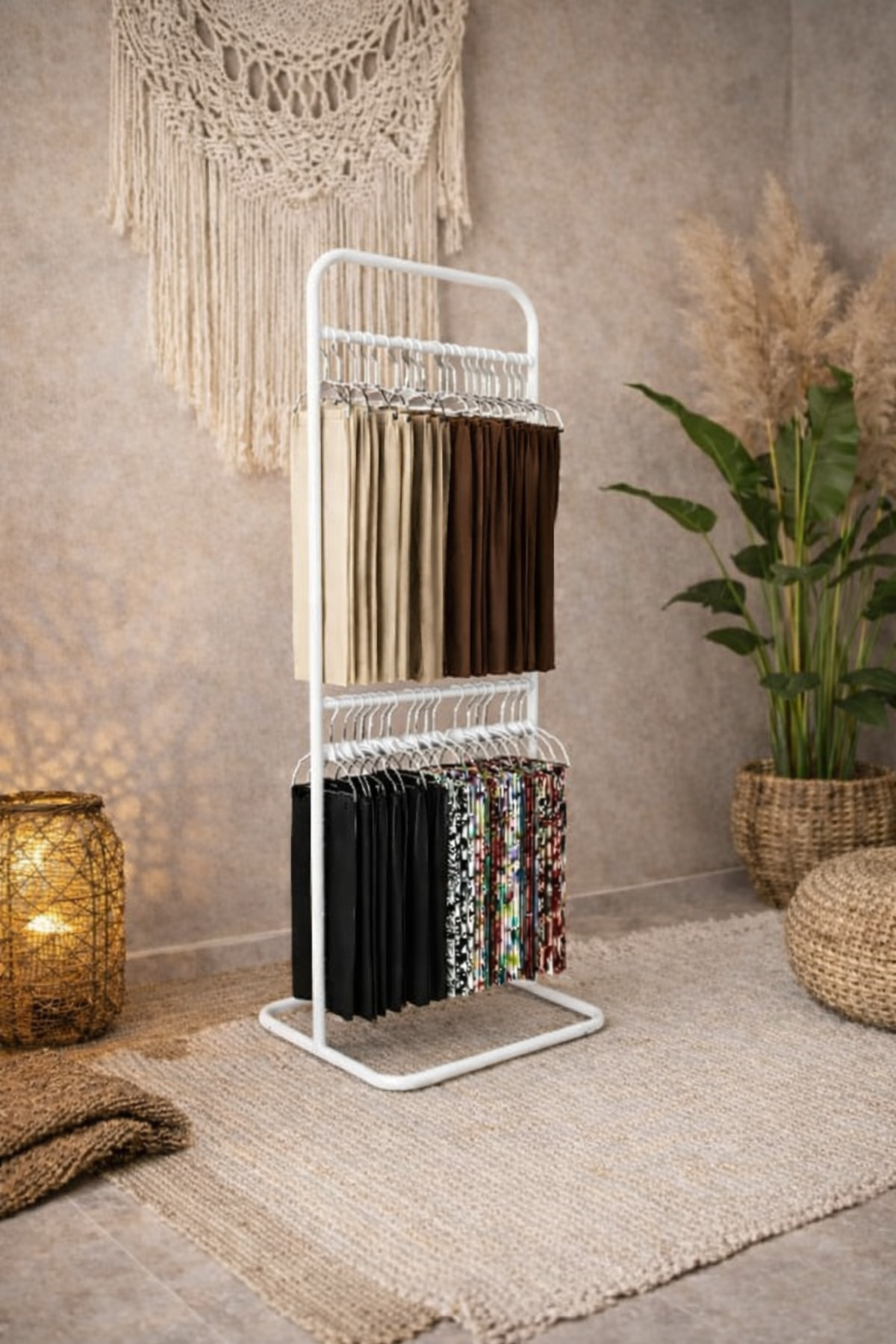 The shawl and scarf are designed as organizers, thus helping you keep your clothes tidy.