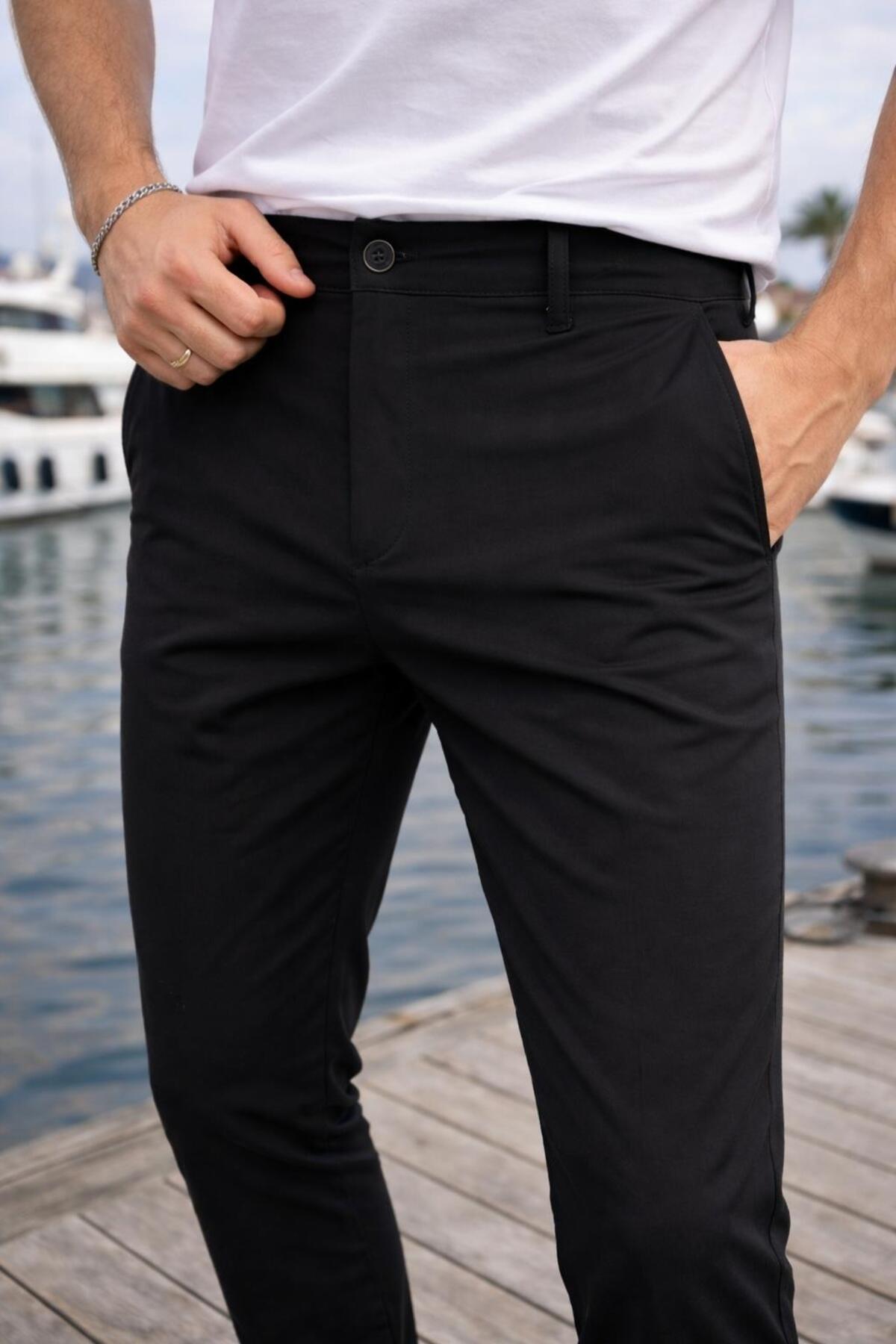 Valiberta Parachute Fabric Regular Fit Button Zippered Flat Leg Casual Men's Pants - Black | ByTR
