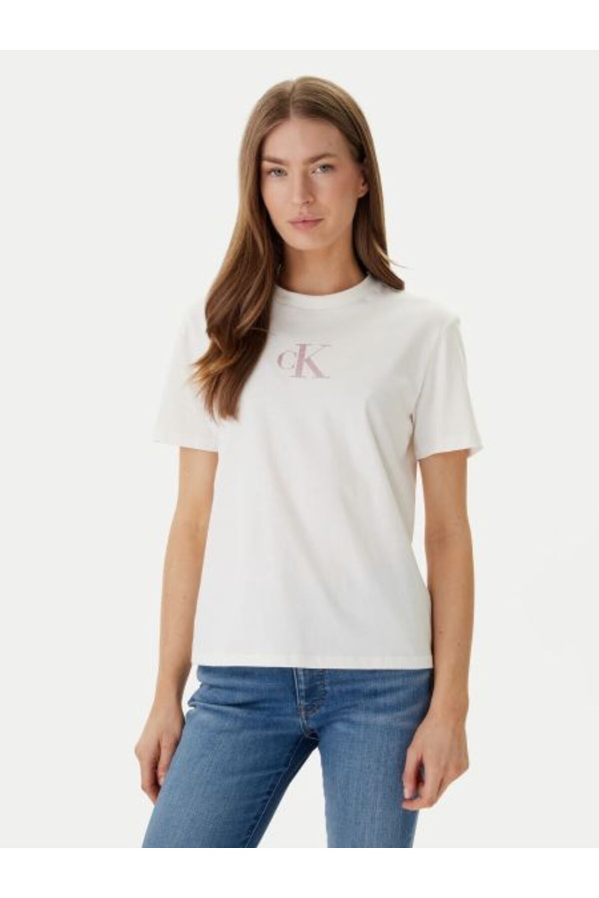 Calvin Klein Short Sleeve Classic Foil CK Women's WhiteT-shirt LV047E804G-YBH | ByTR