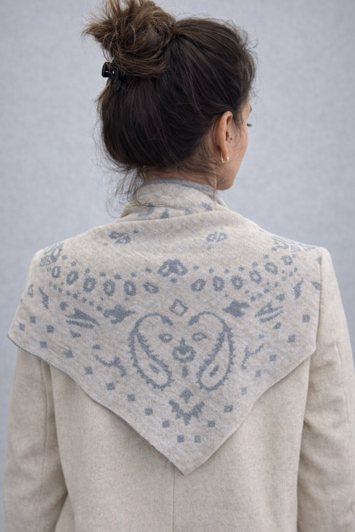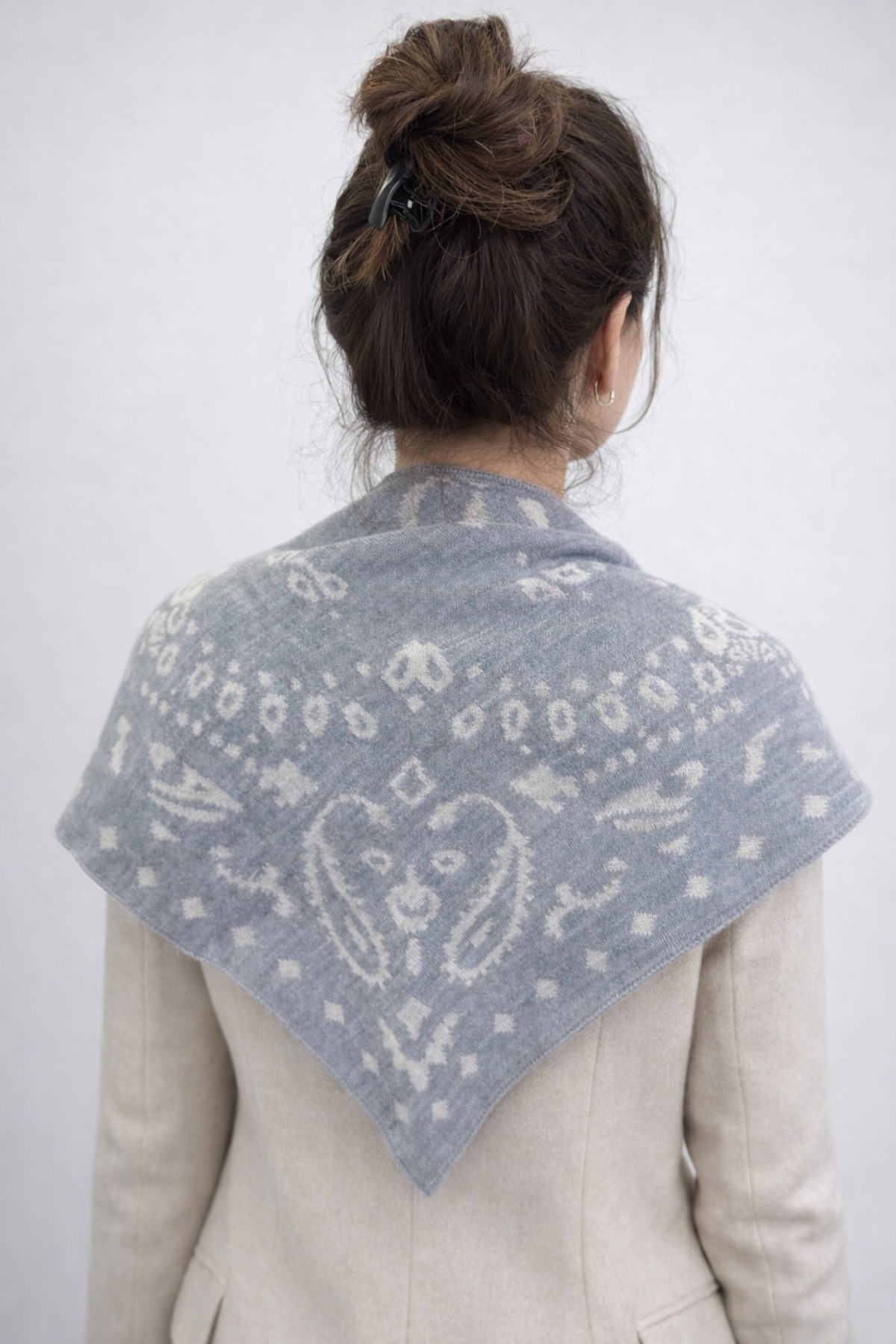 Patterned Double Sided Knitwear Triangle Scarf