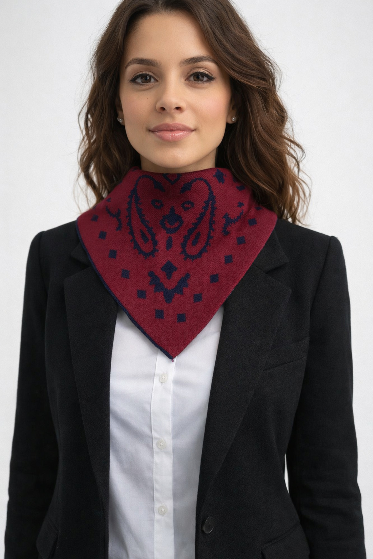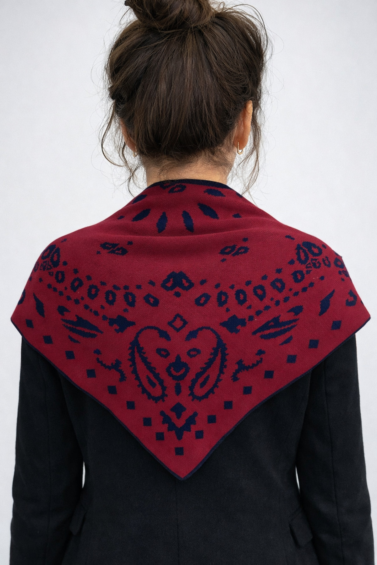 Patterned Double Sided Knitwear Triangle Scarf