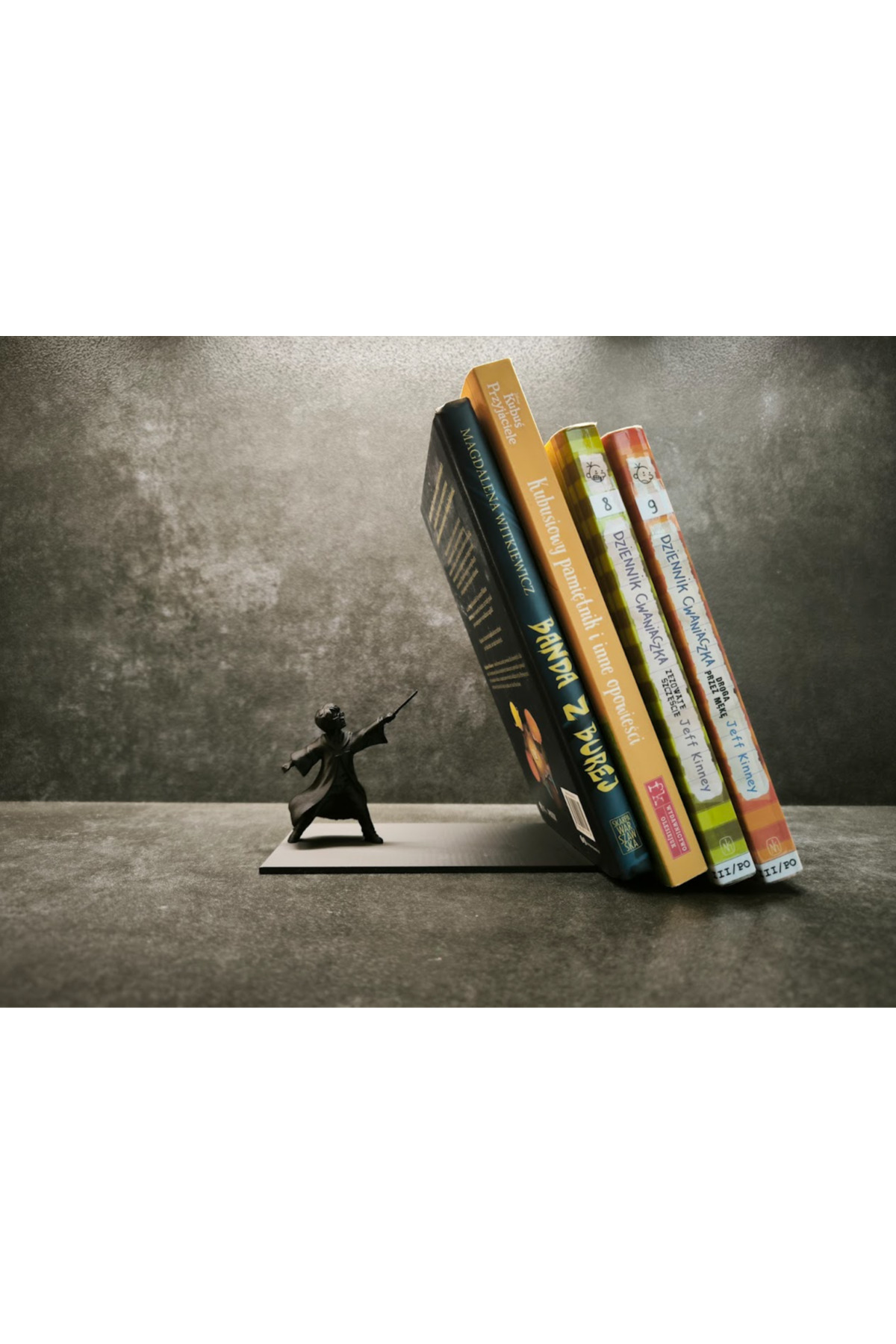 Decorative book holder that allows Harry Potter fans to keep their books organized and stylish.