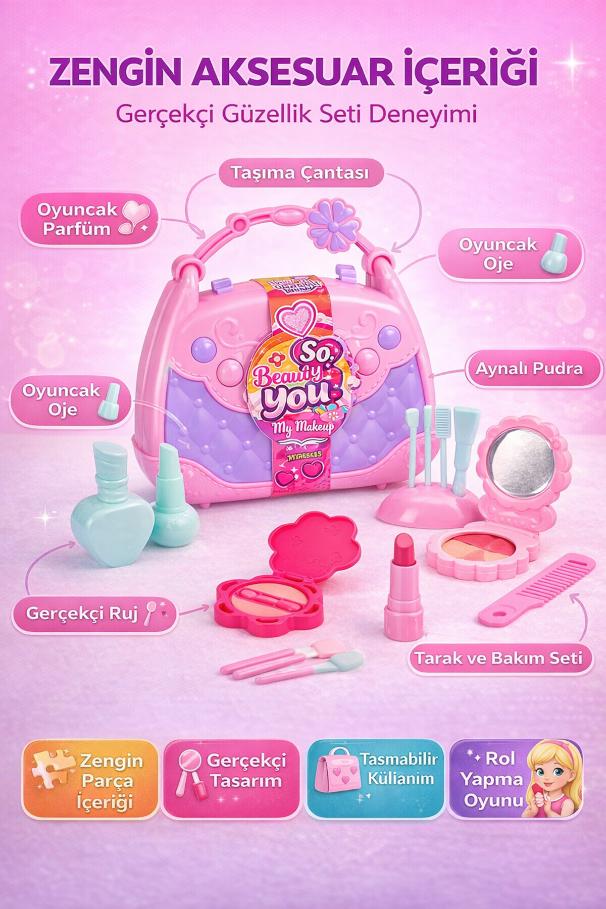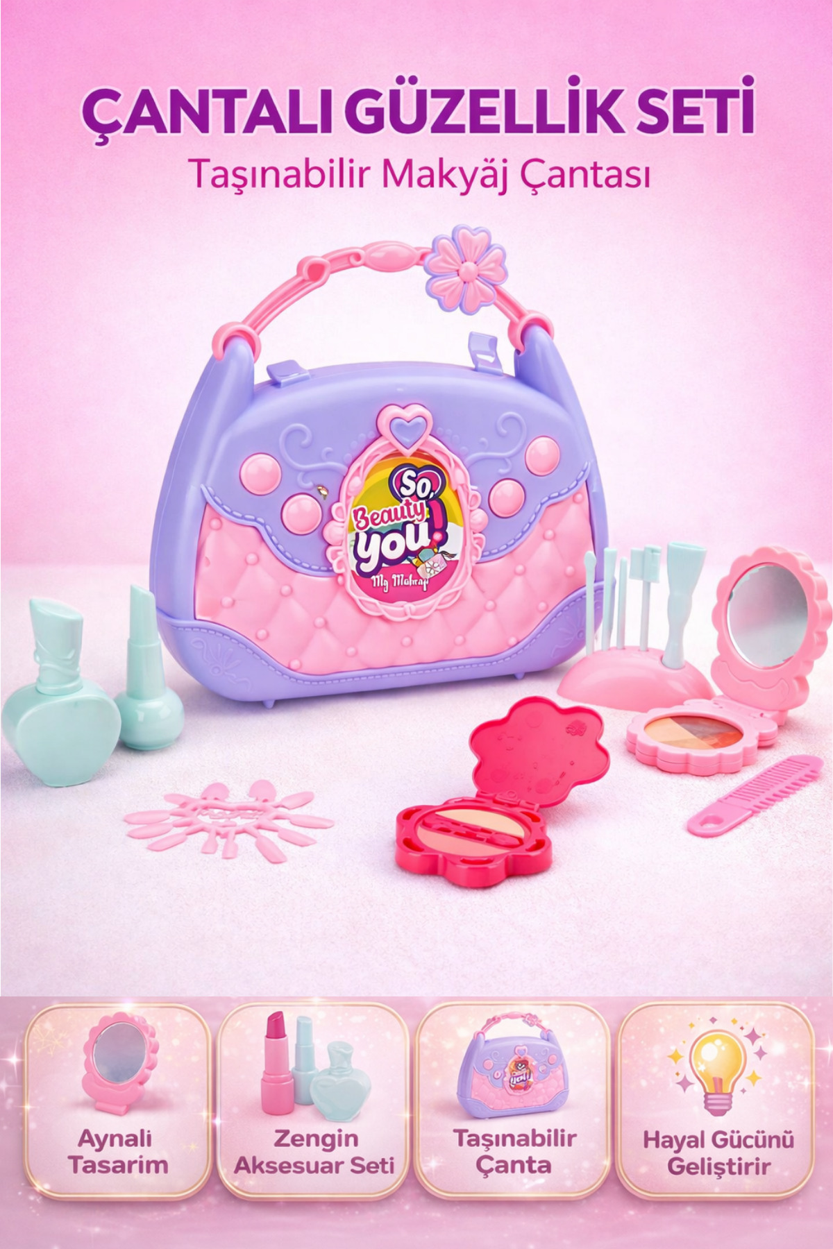 YILDIRIM OYUNCAK Beauty Set with Toy Bag | Portable Girl Toy Set with Mirror Makeup Bag Accessory | ByTR