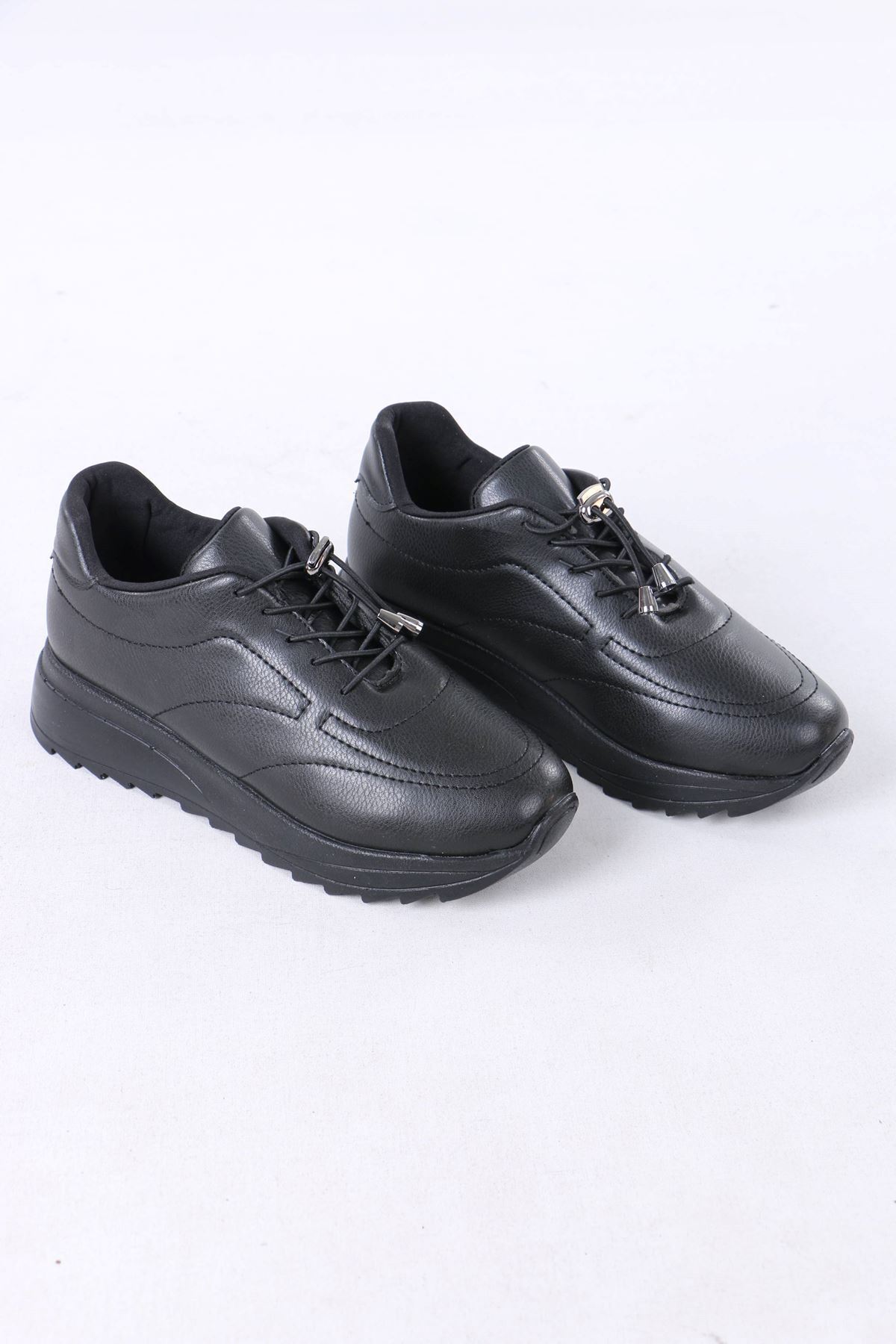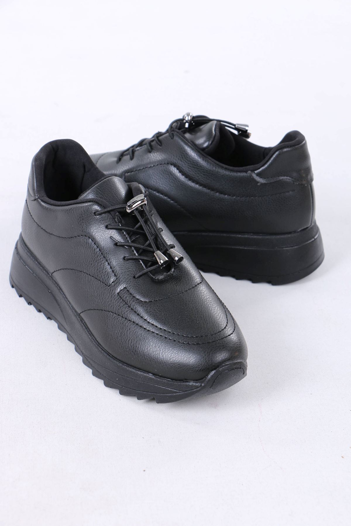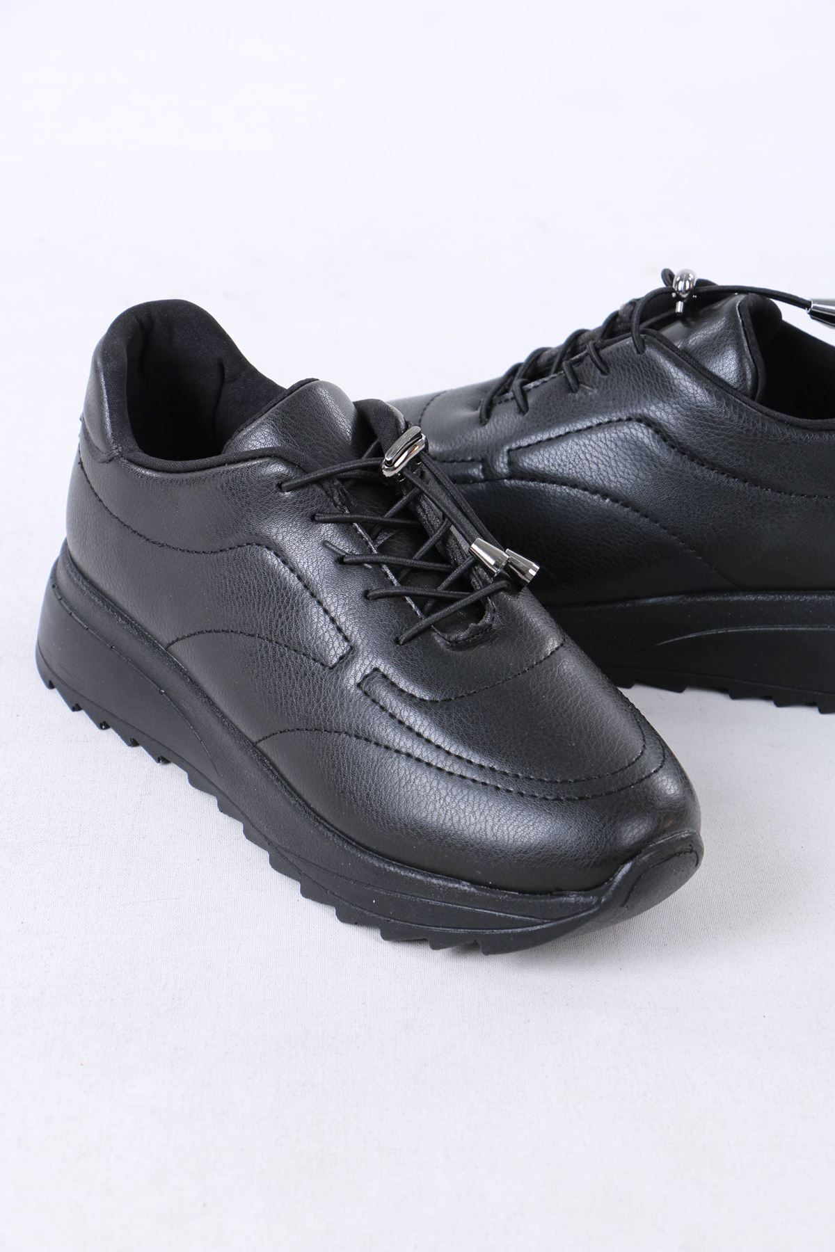 sefayol Lanton Black Matte Leather Lace-Up Women's Casual Sports Shoes | ByTR
