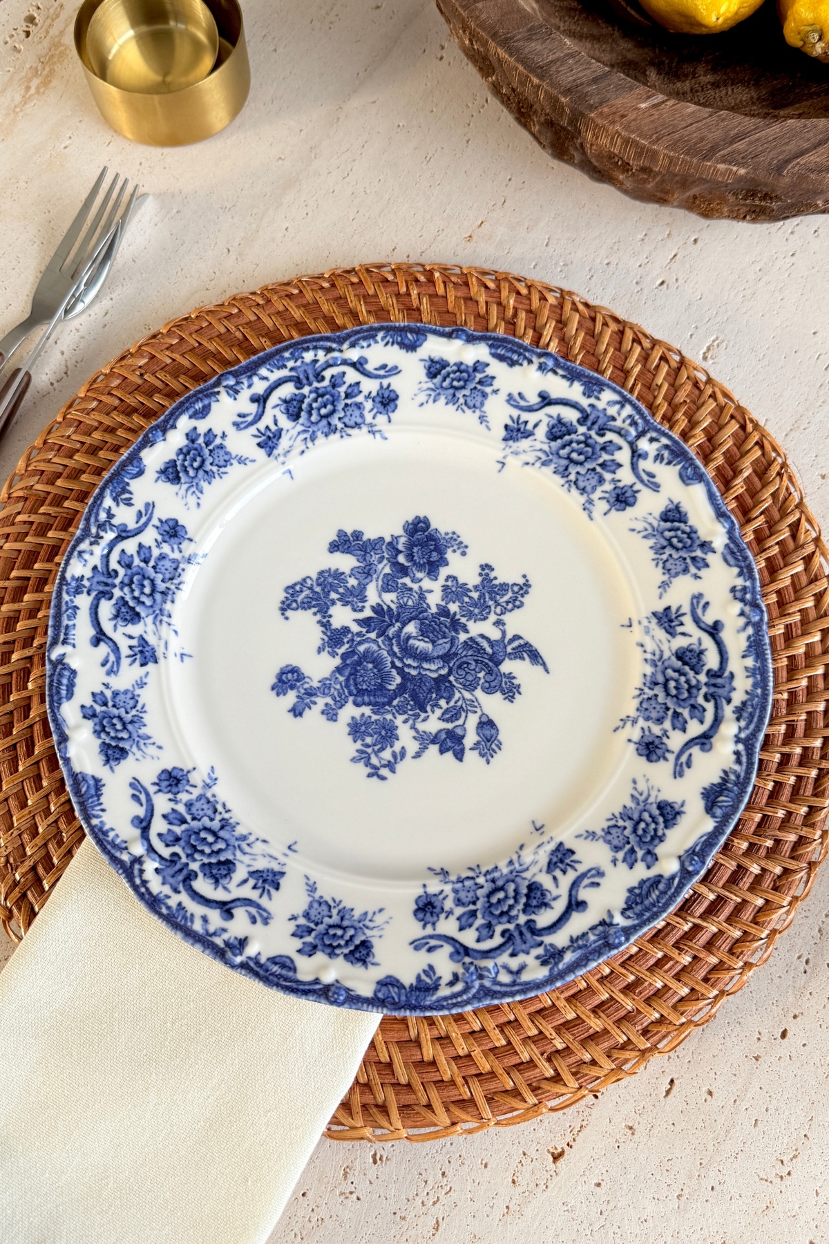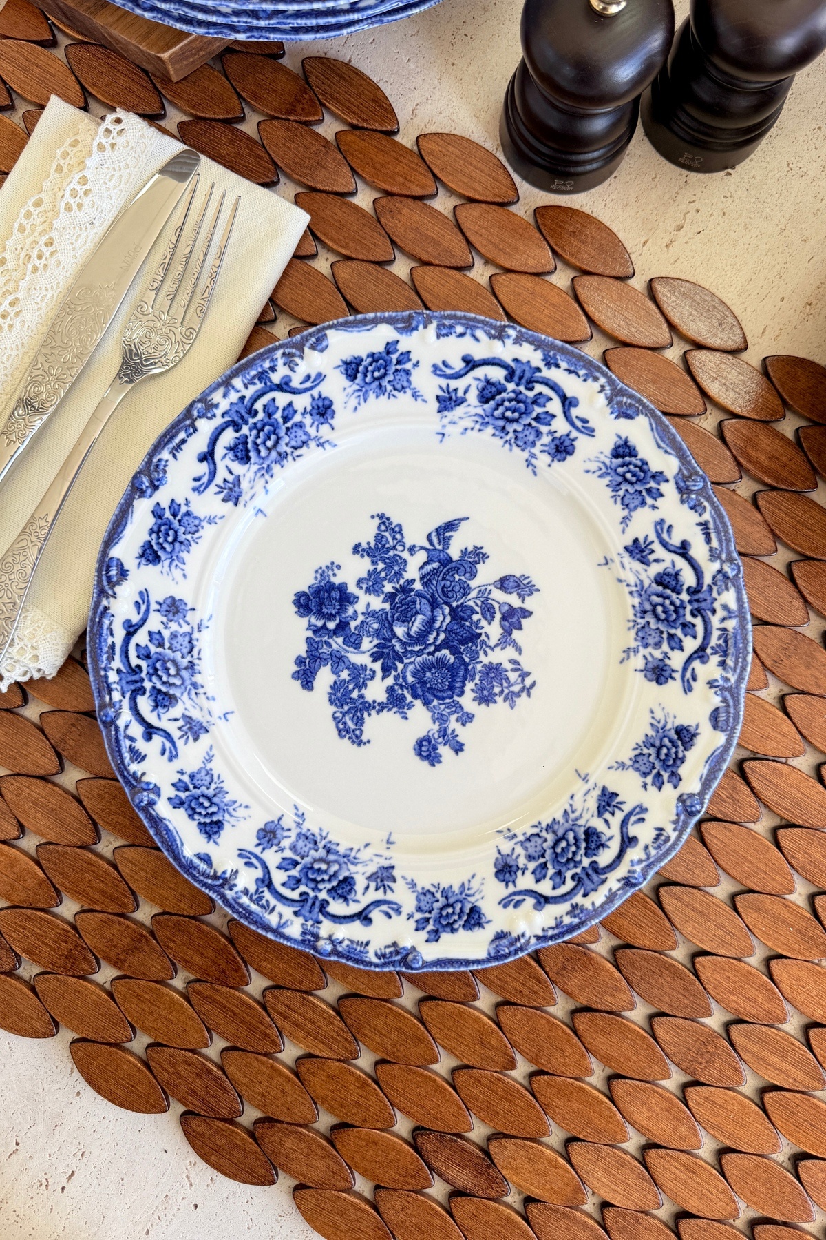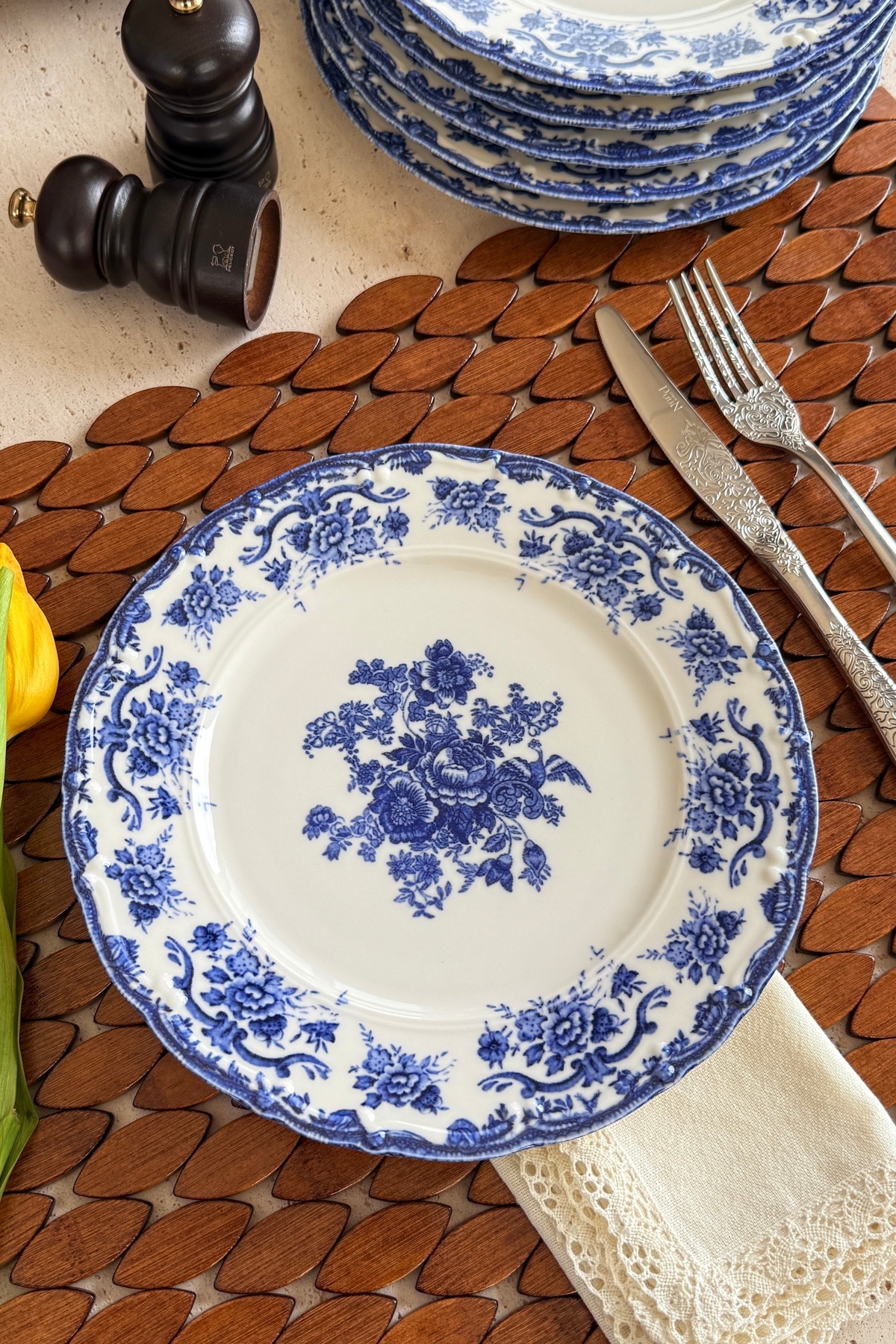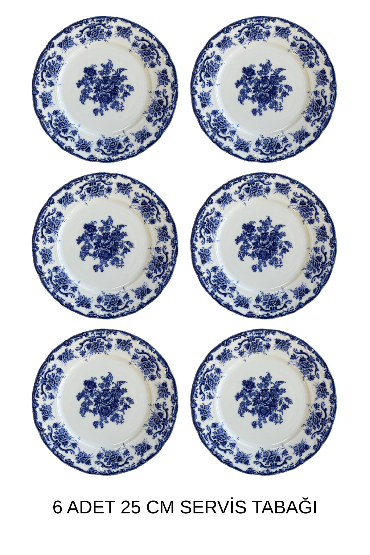 Antique Deep Azul 25 cm Special Design Premium Porcelain Serving Plate for 6 people Navy Blue Flower Patterned for 6 people.