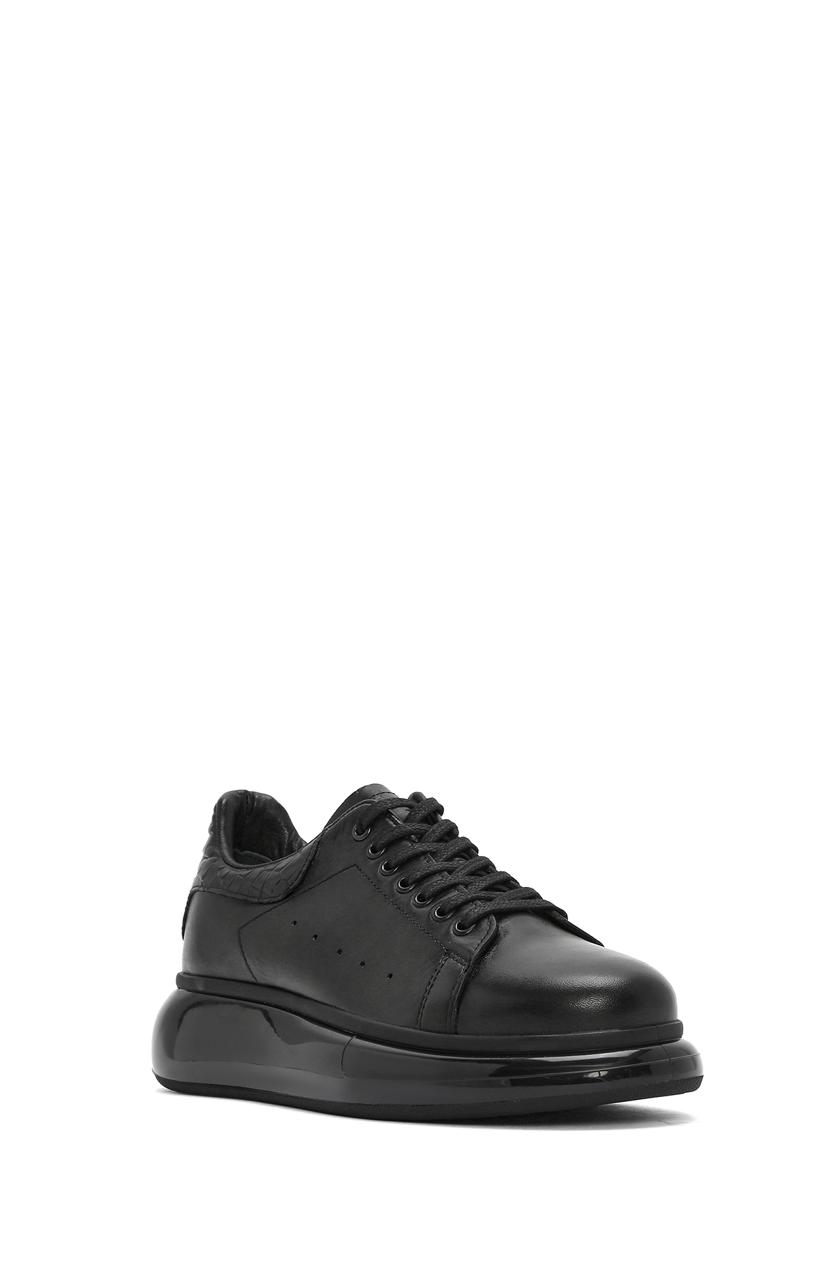 Men's Black Lace-Up Thick-Bottomed Leather Sneaker 26SFD680018