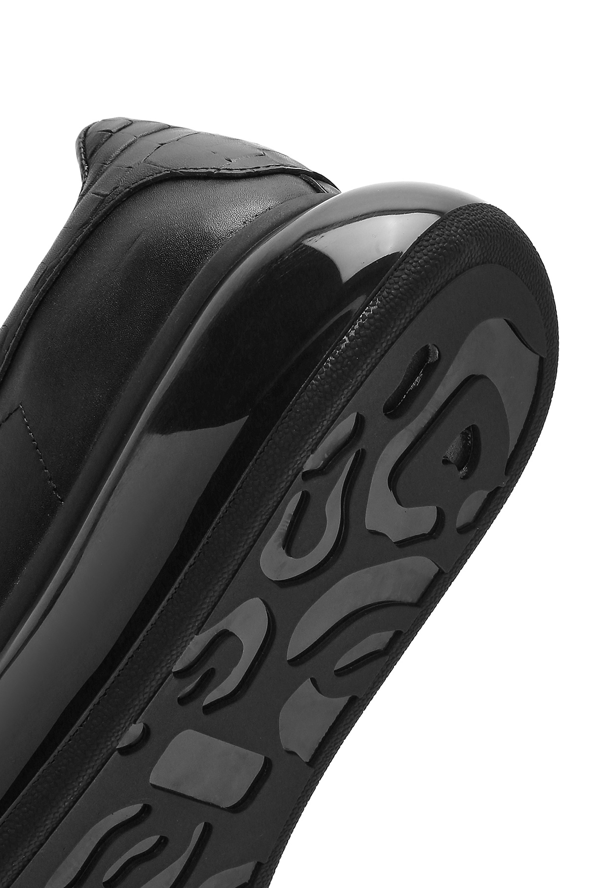 Men's Black Lace-Up Thick-Bottomed Leather Sneaker Includes cowhide.