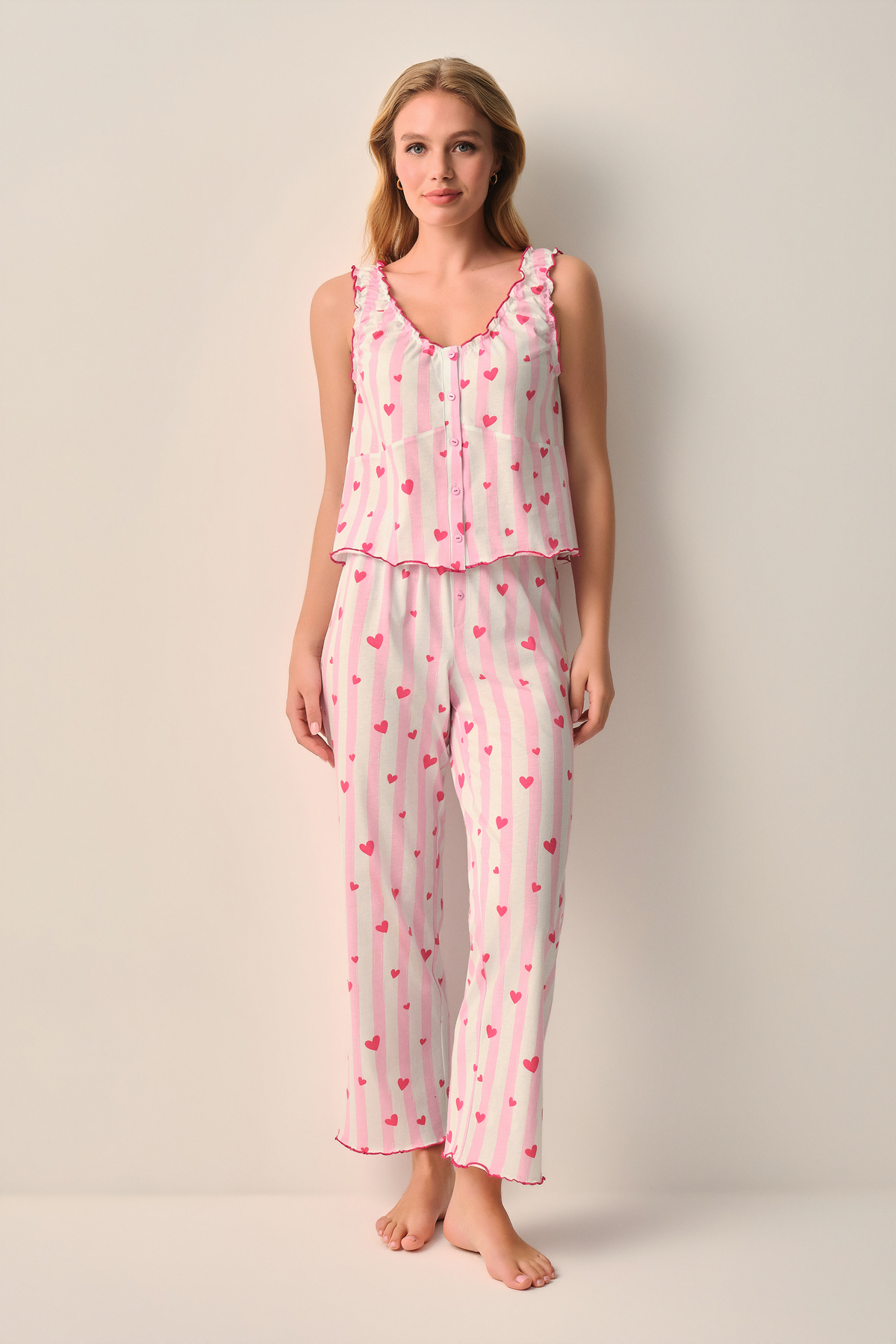 SUWEN Cherry Cotton Singlet Pants Pajamas Set | ByTR