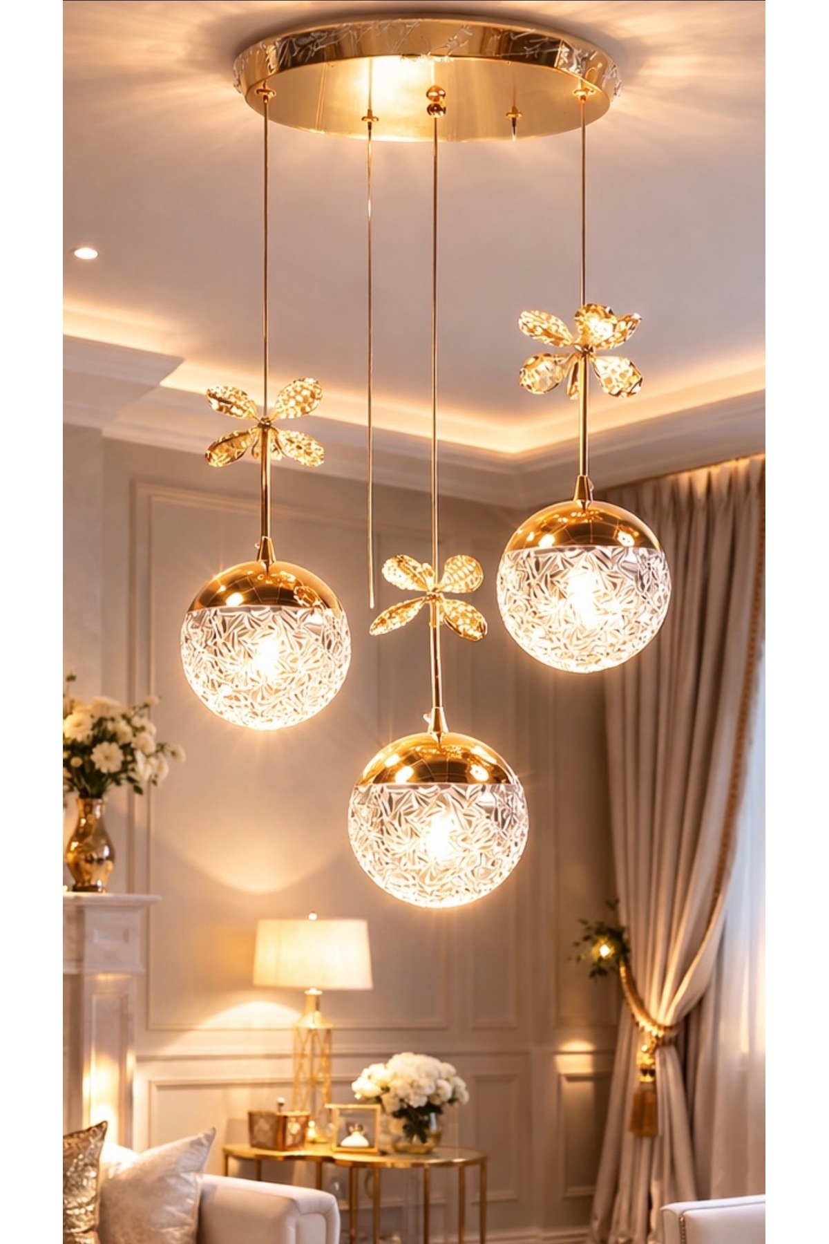 burenze Bruce Luxury Led Chandelier Triple Pendant Living Room Chandelier Bright Gold Yellow Plated Daylight Power Led | ByTR