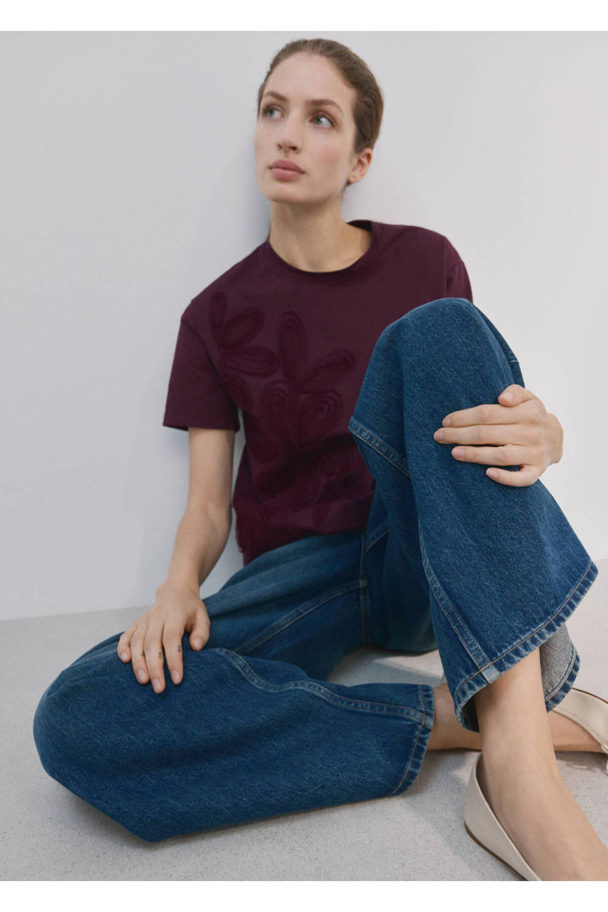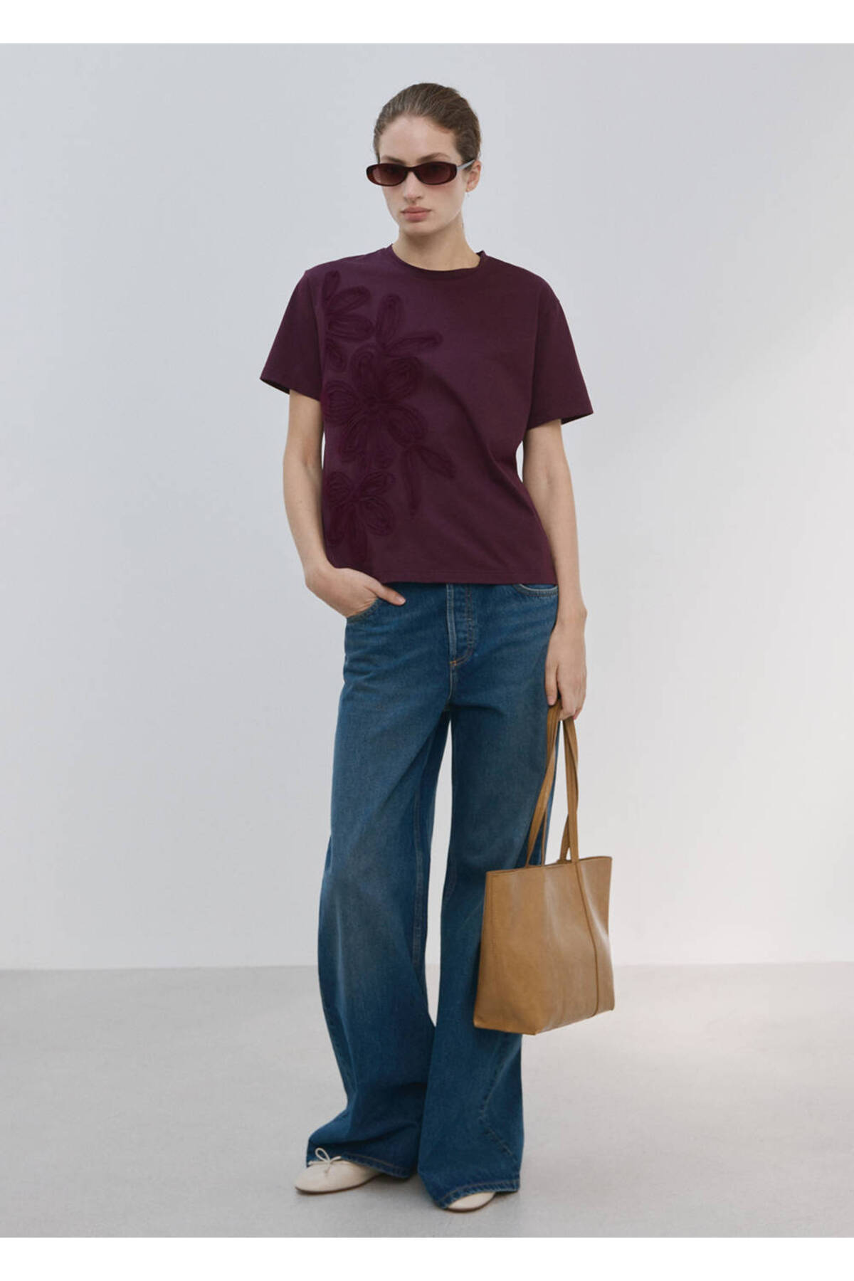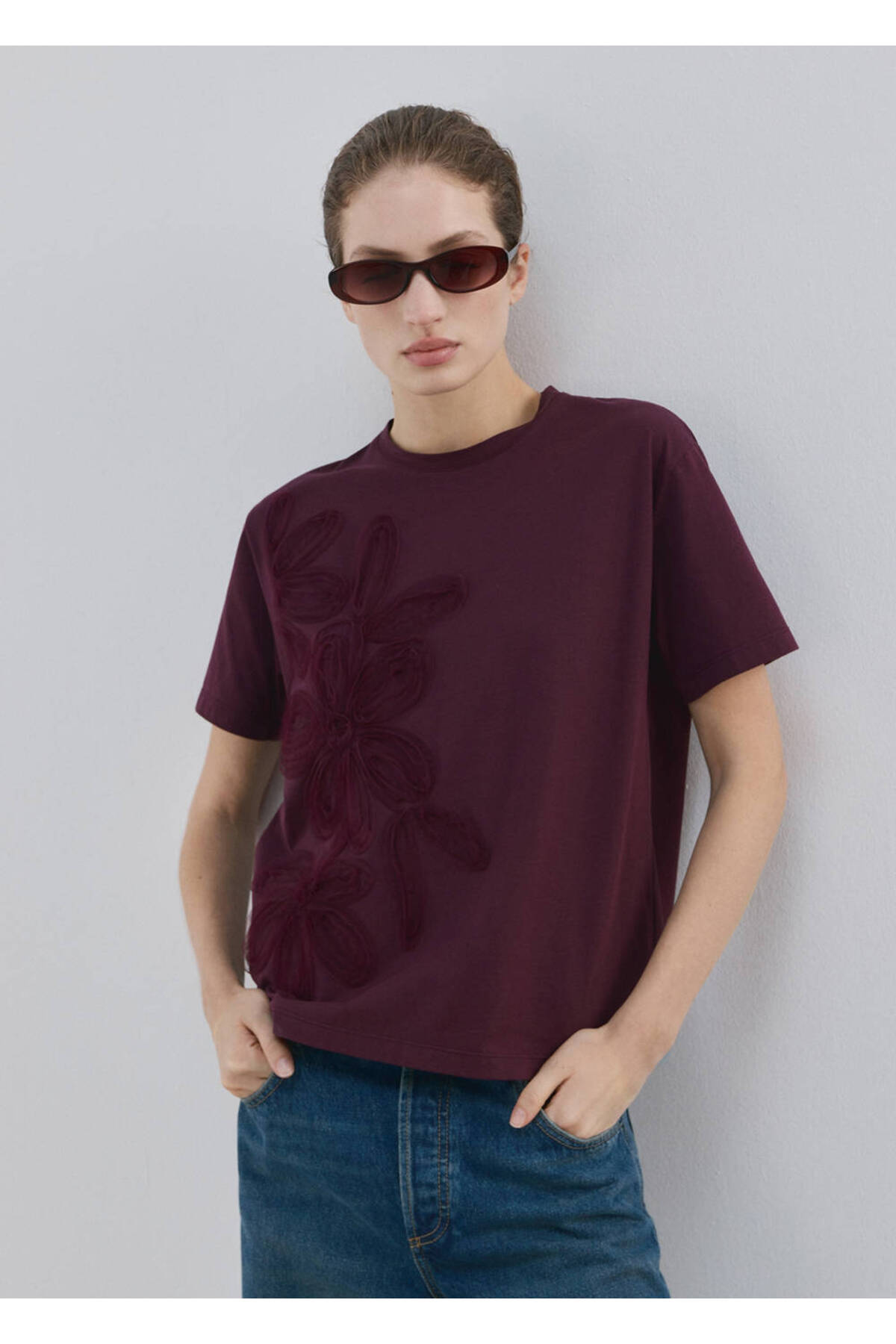100% cotton fabric, Floral embroidered, Plain design, Round neck, Short sleeve, No closure.