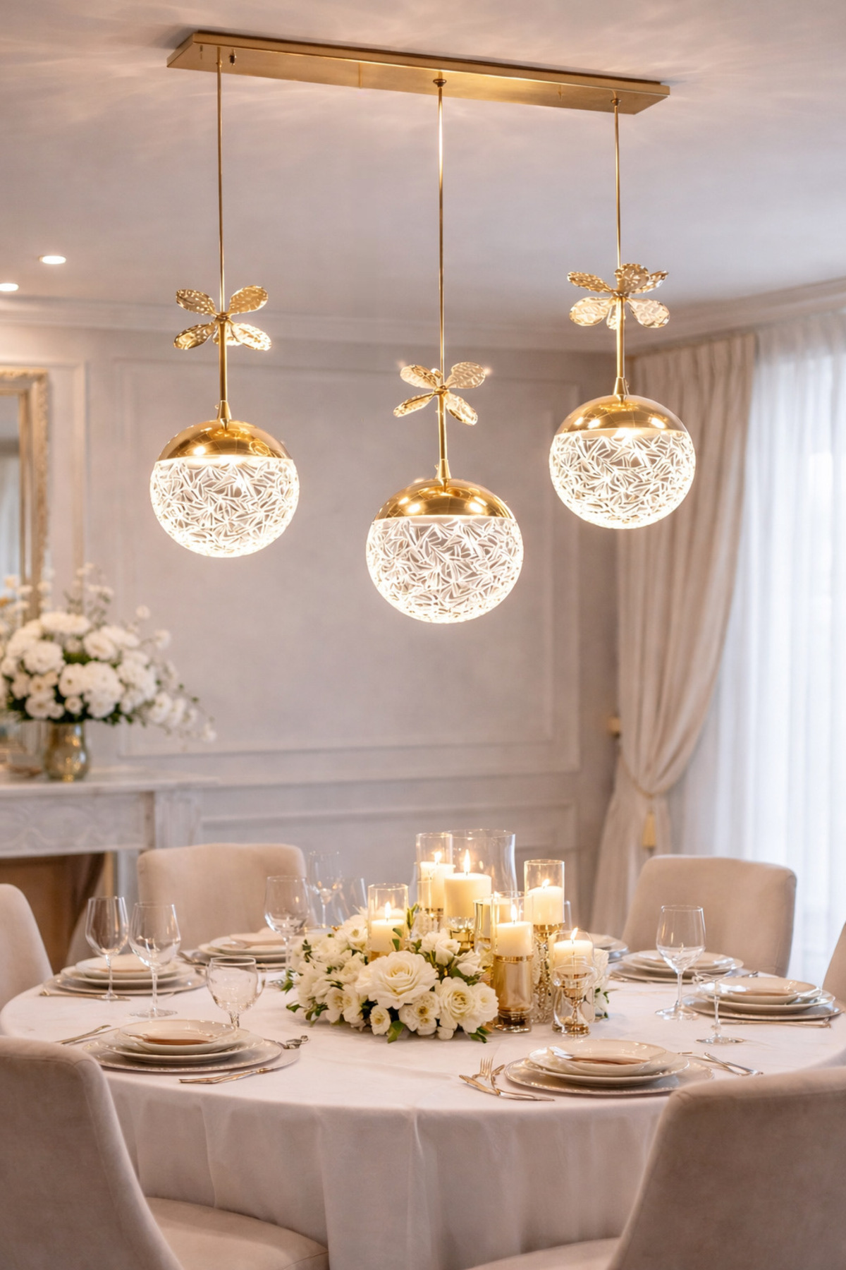 Bruce Luxury Triple Pendant Led Chandelier Inline Living Room Chandelier Bright Gold Yellow Coating Daylight Power Led