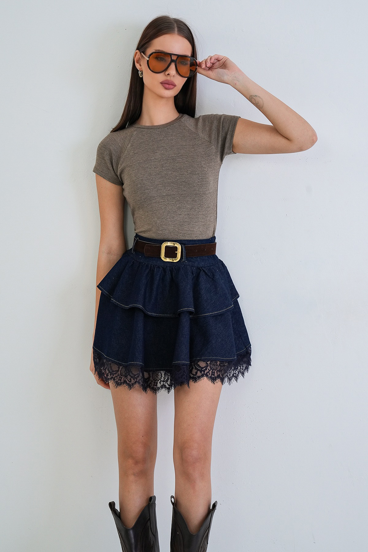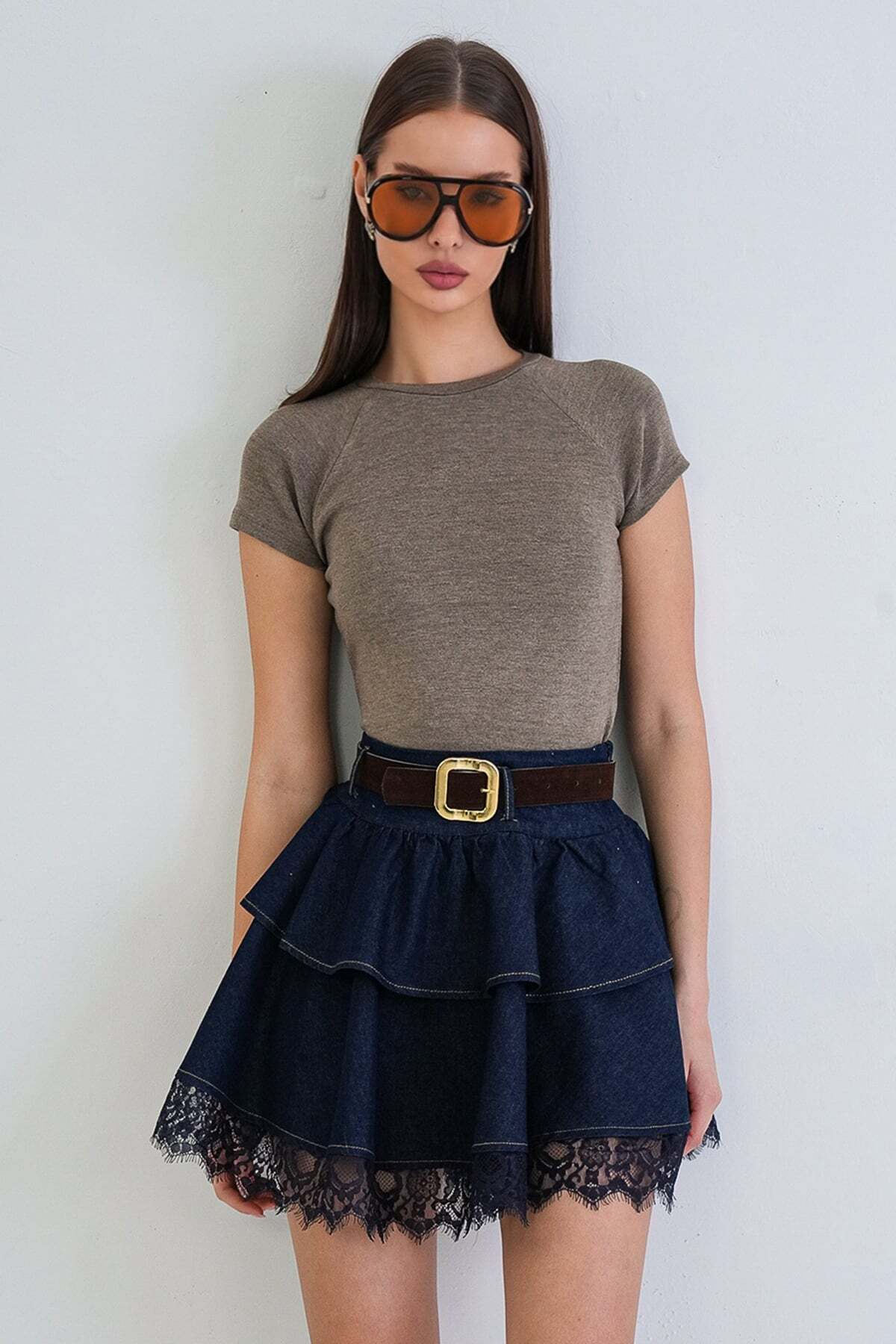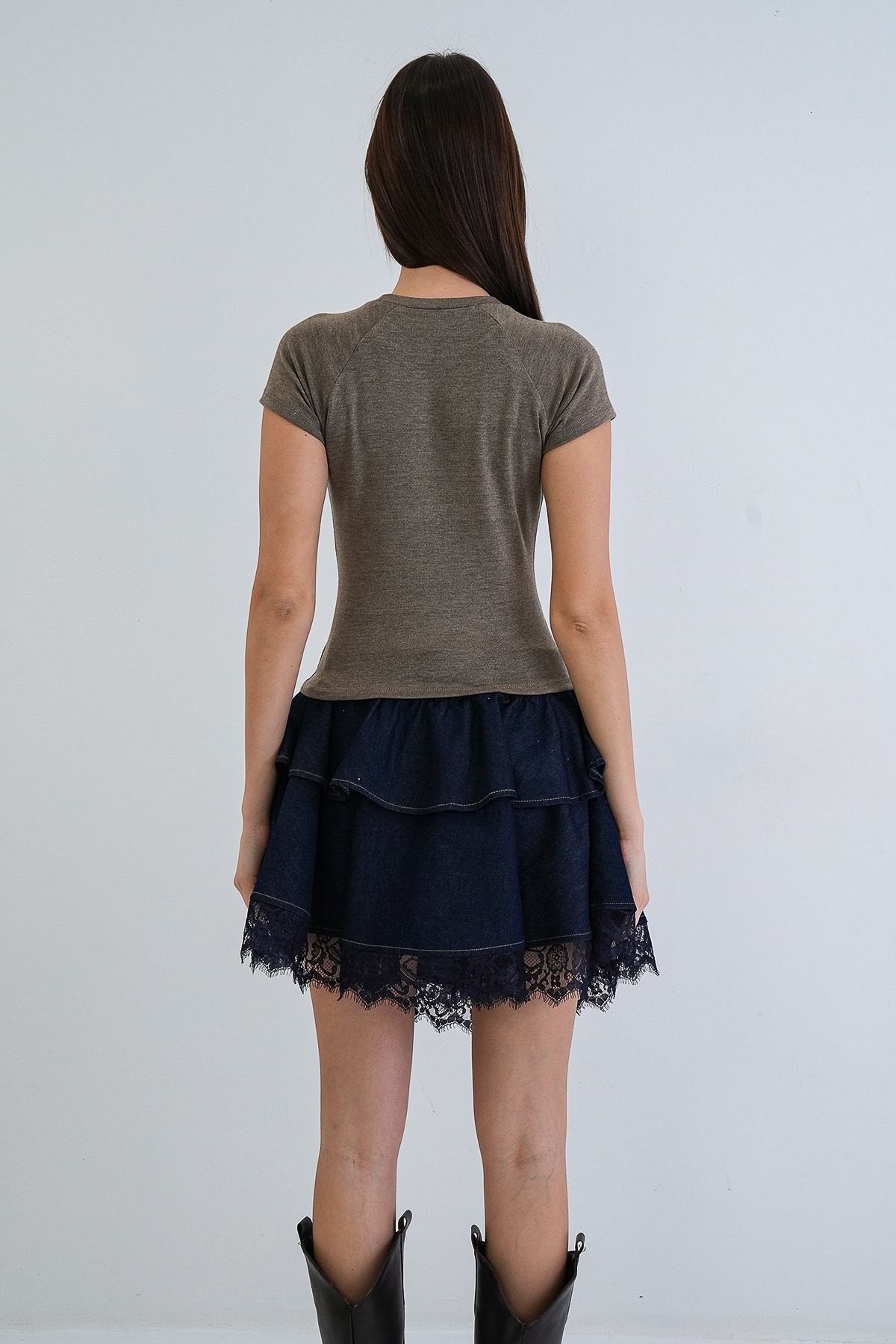 Mink Crew Neck Raglan Sleeve Lycra Knitted T-Shirt