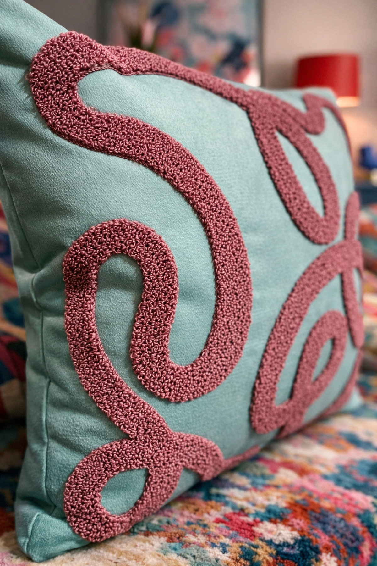 Pilloveland Punch Embroidered Pillow Case - 43*43 Cm - Curve - PNK001 | ByTR