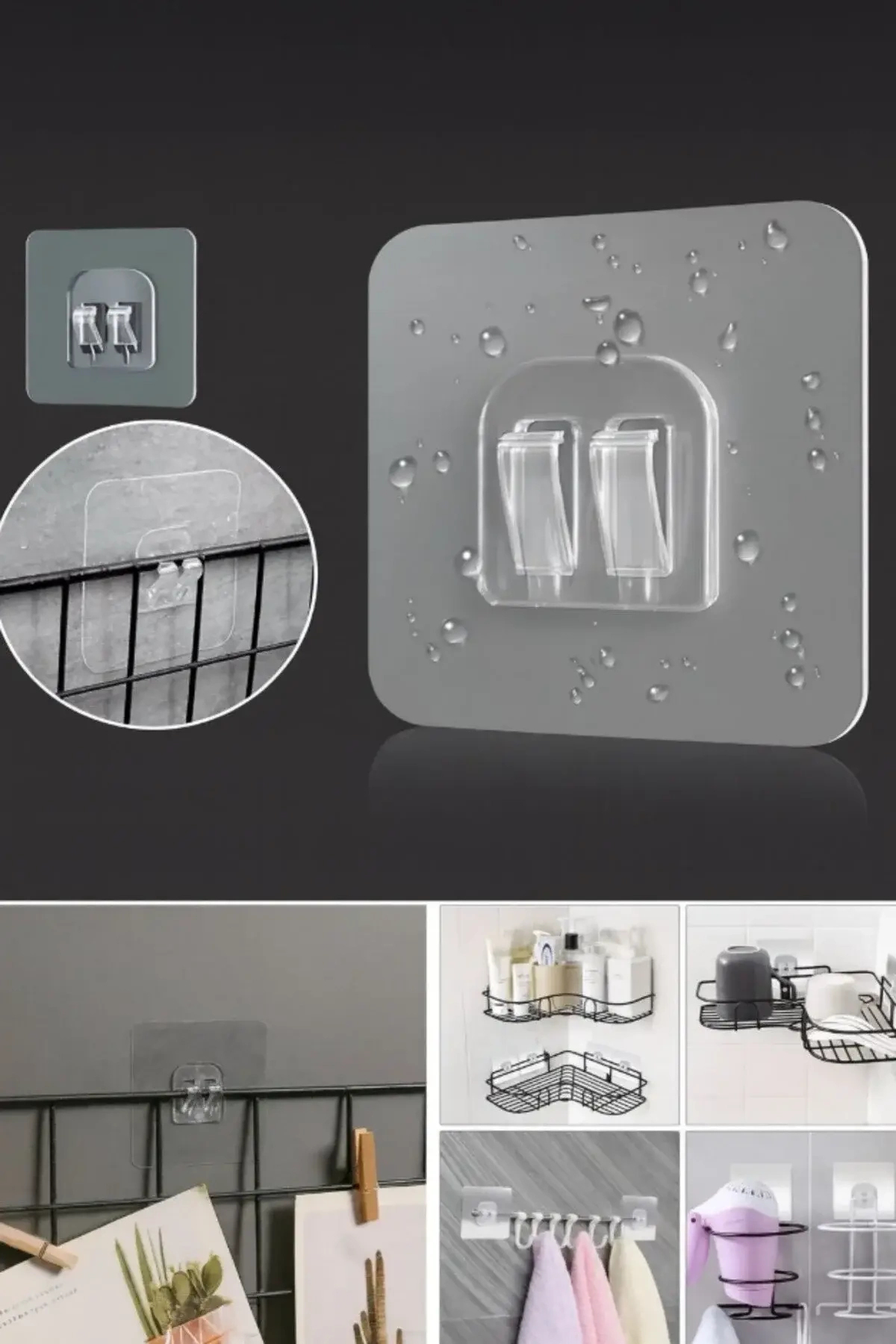 12-Piece Self-Adhesive Shelf Holder Hook – Transparent Wall Hanger Without Drilling Frame Hanger