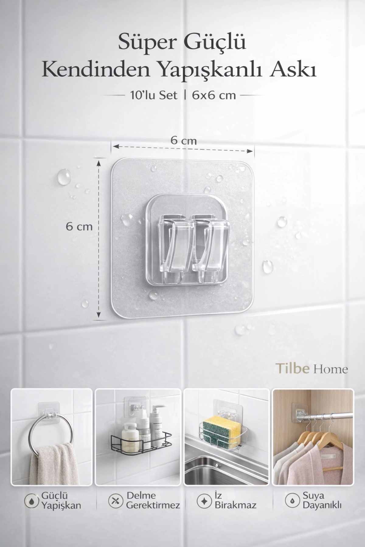 Tilbe Home 12-Piece Self-Adhesive Shelf Holder Hook – Transparent Wall Hanger Without Drilling Frame Hanger | ByTR