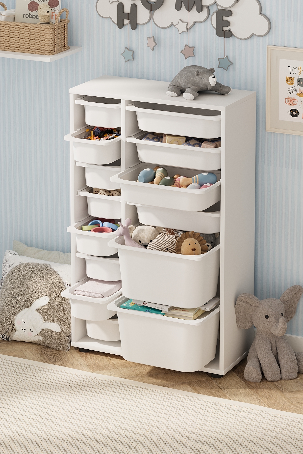14 Basket Cabinet Multipurpose Cabinet Toy Cabinet Dream White
