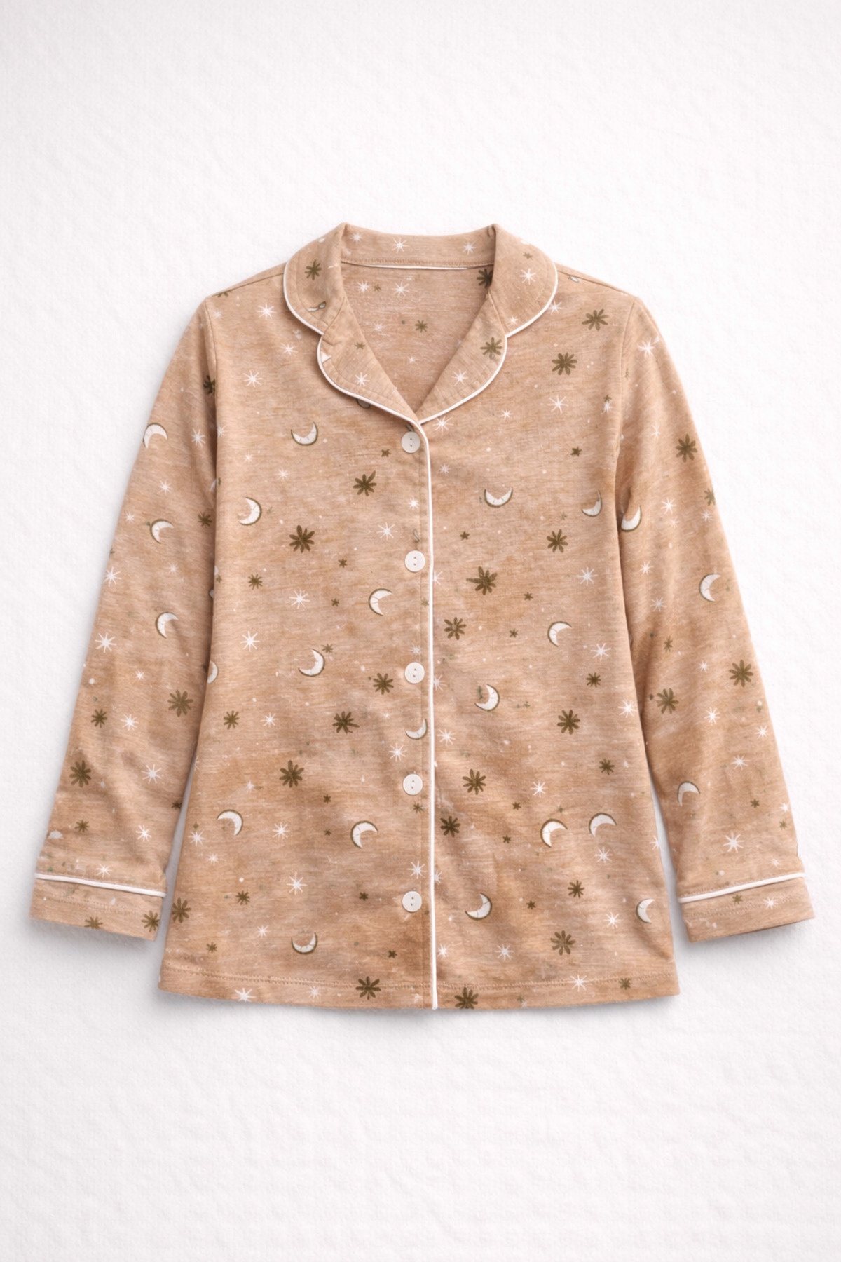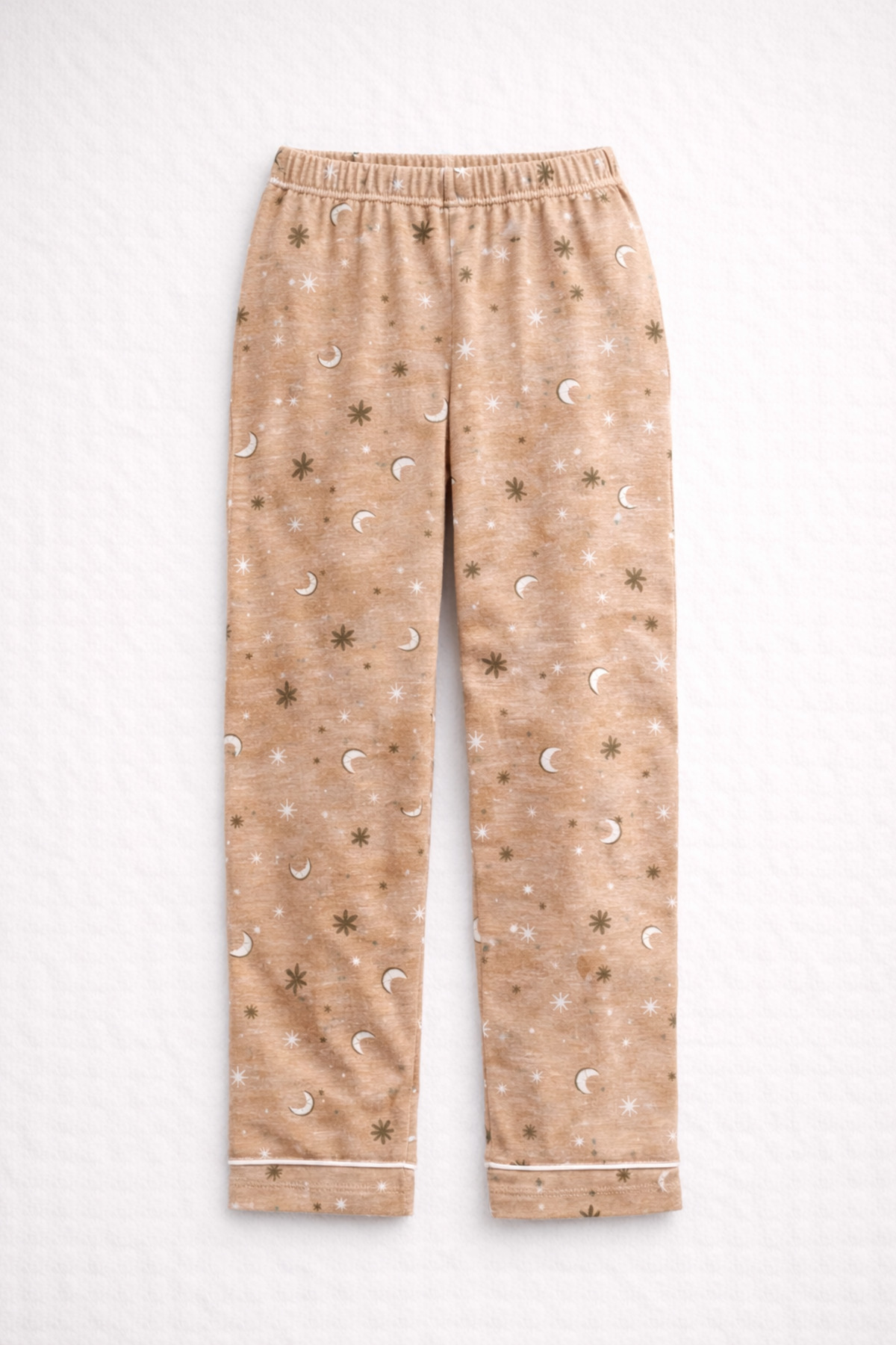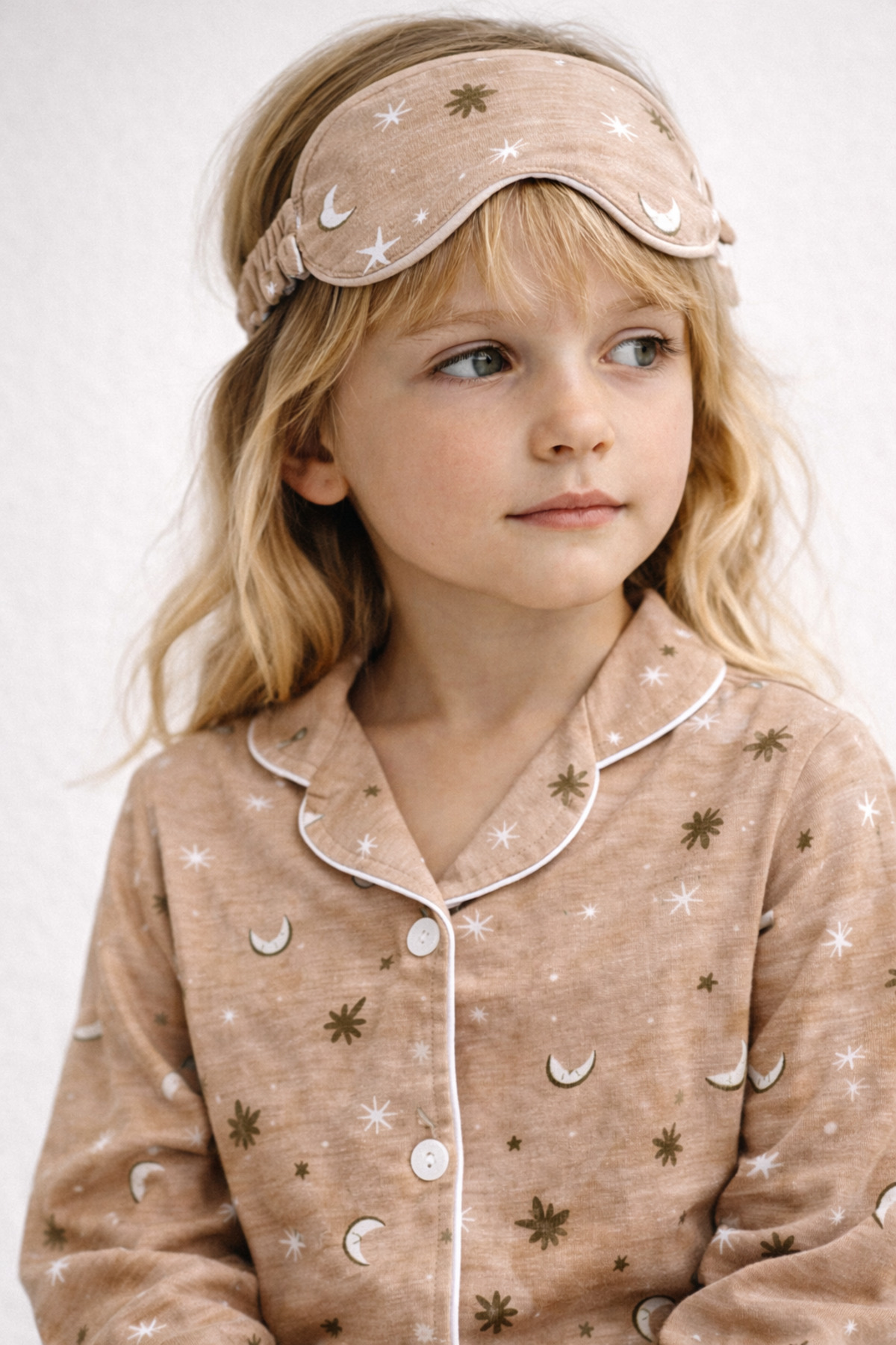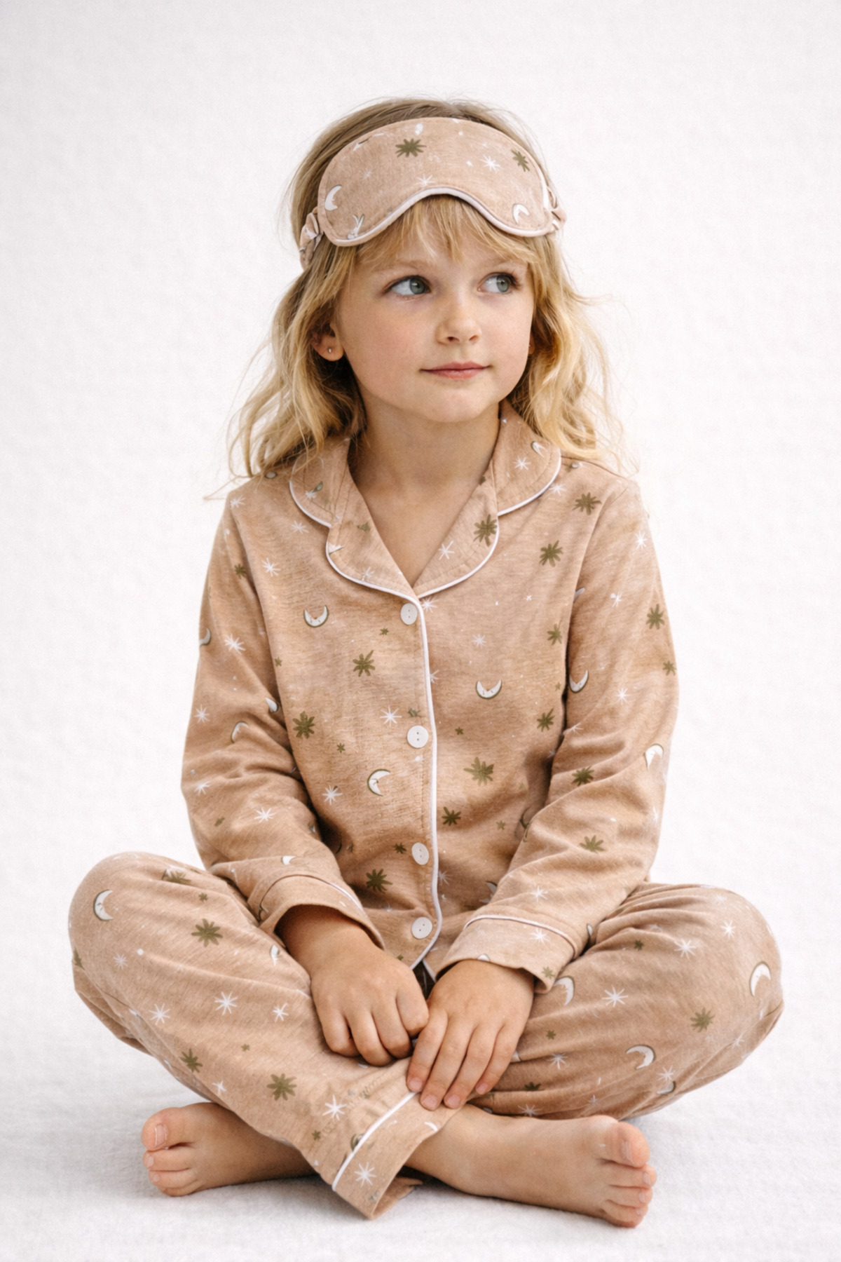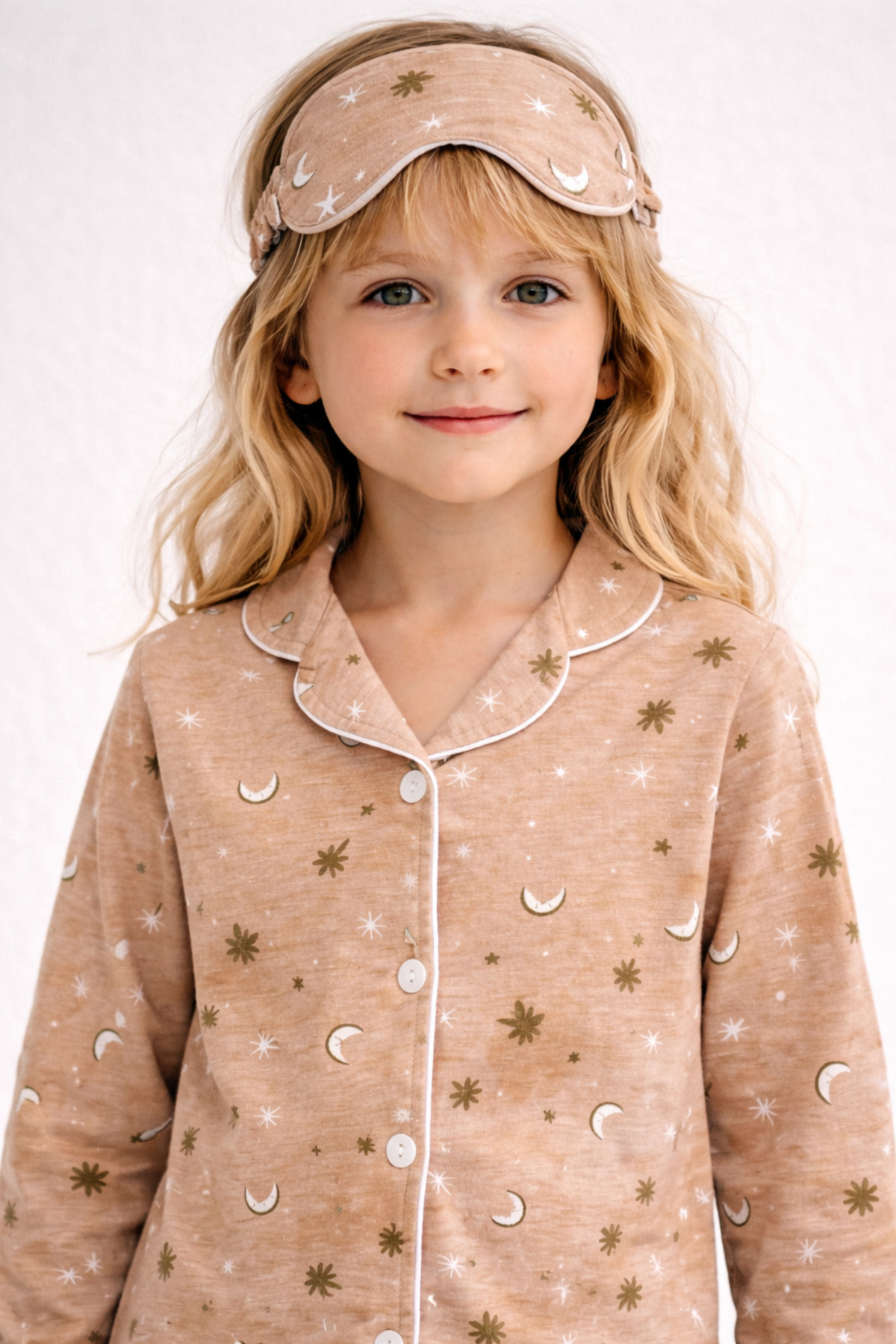 Patterned long-sleeved girls' pajamas set that draws attention with its comfortable and stylish design.