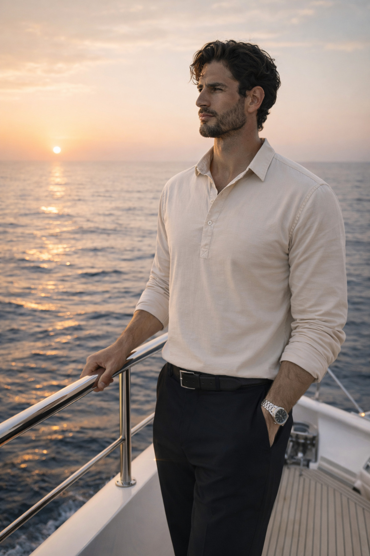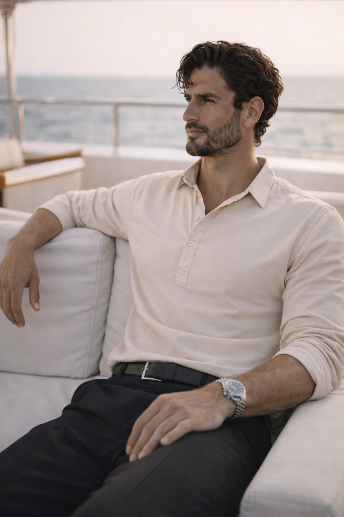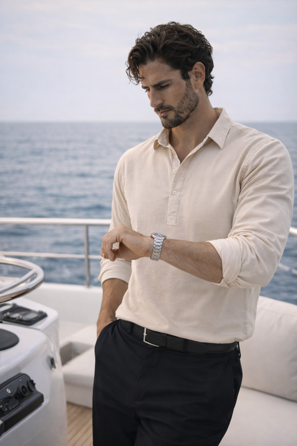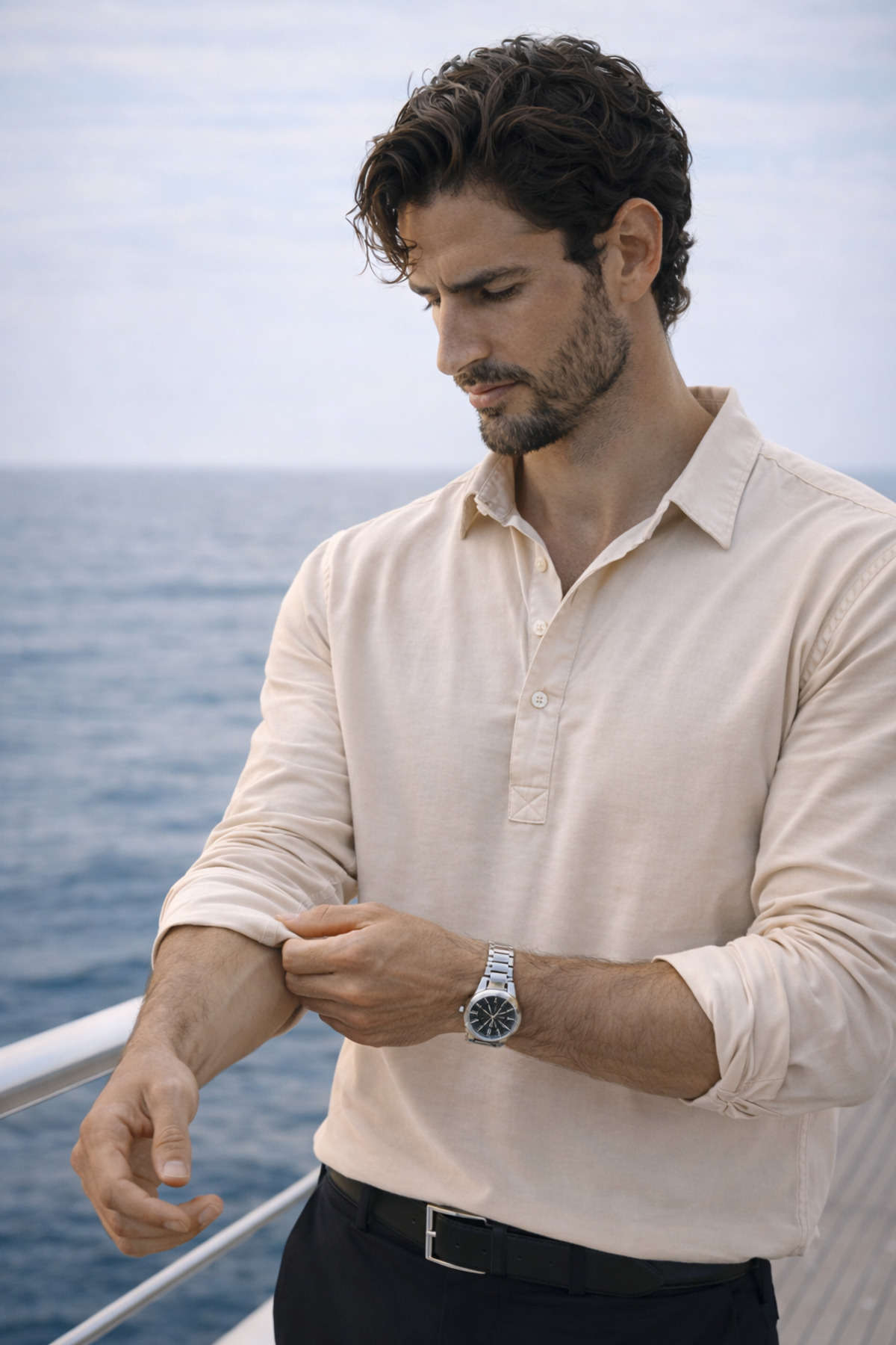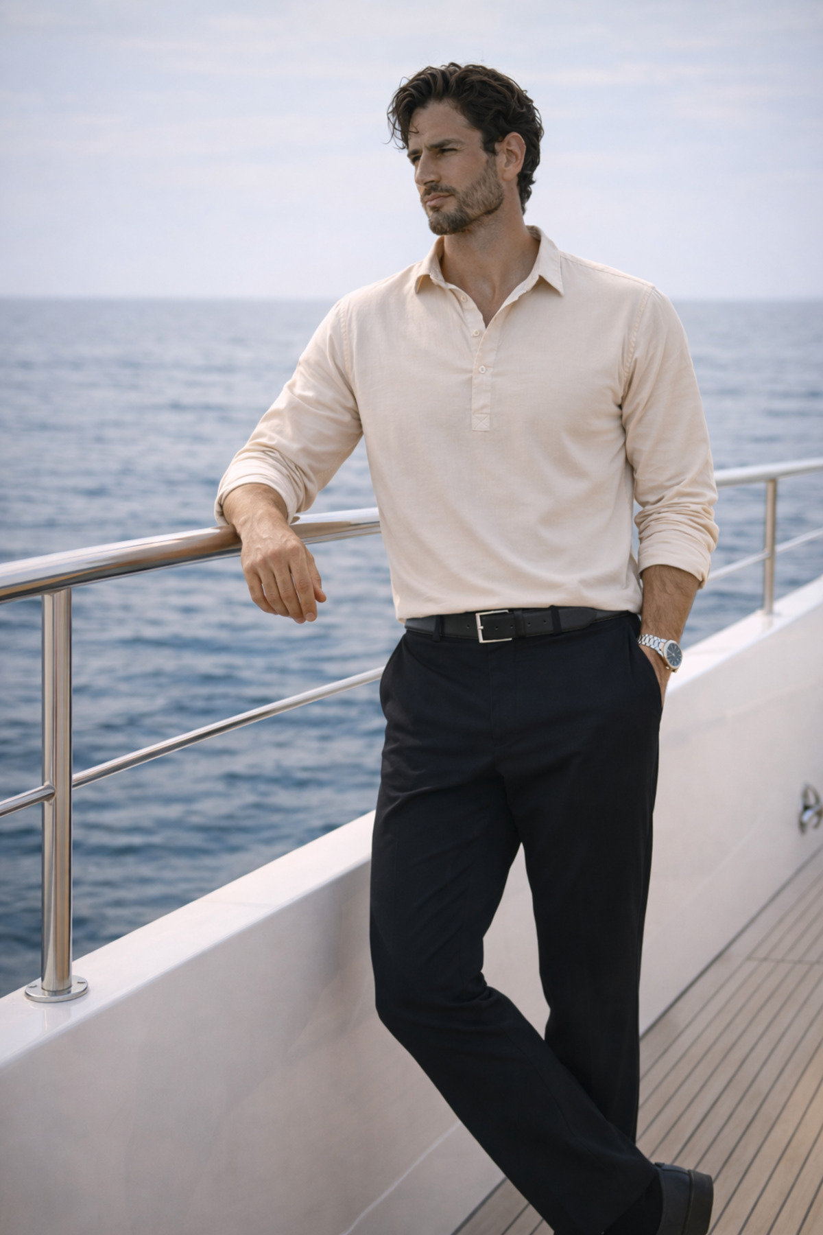 Valiberta Half Placket Collar York Cotton Fabric Long Sleeve Men's Shirt - Beige | ByTR