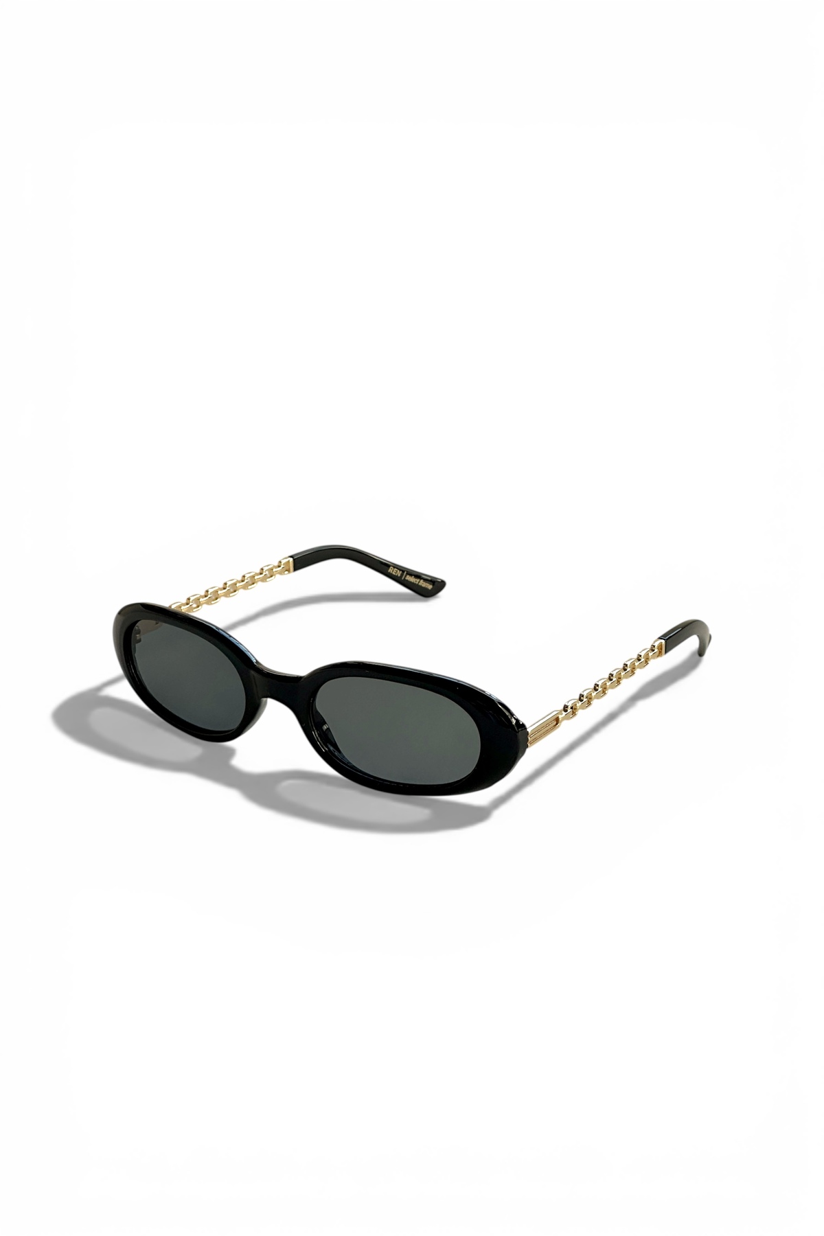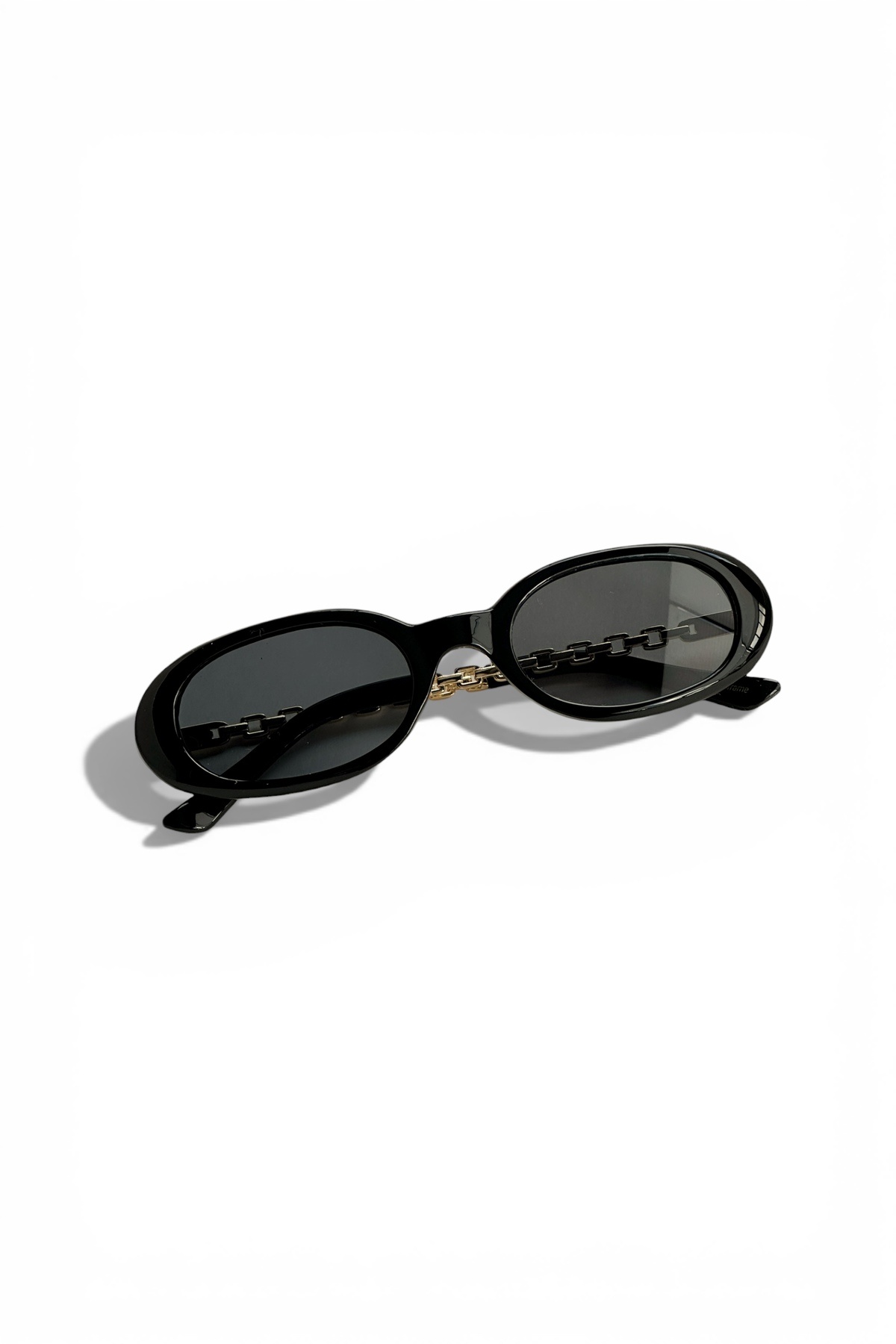 VELORA Limited Edition Women's Sunglasses offer a sophisticated style with a thin oval frame form and gold chain detailed handle design.