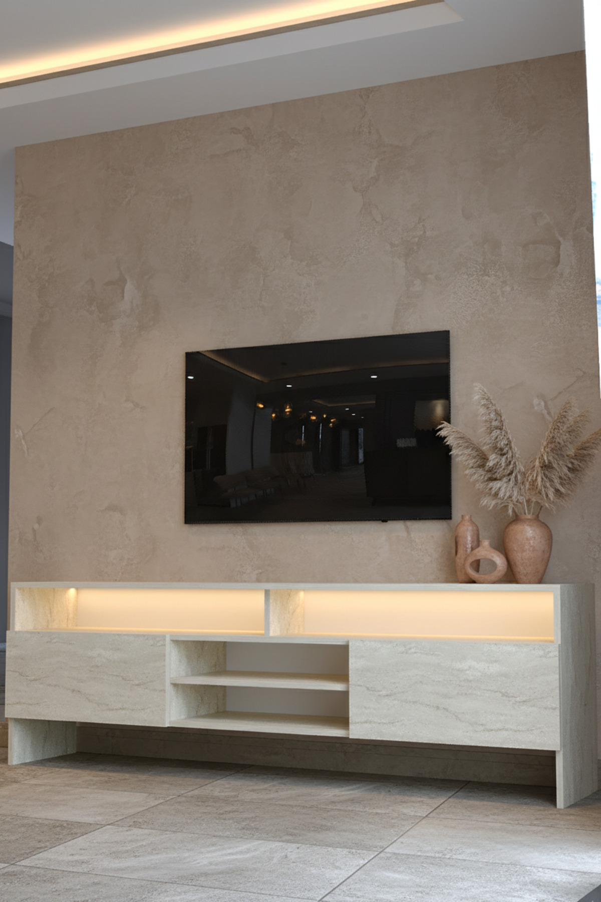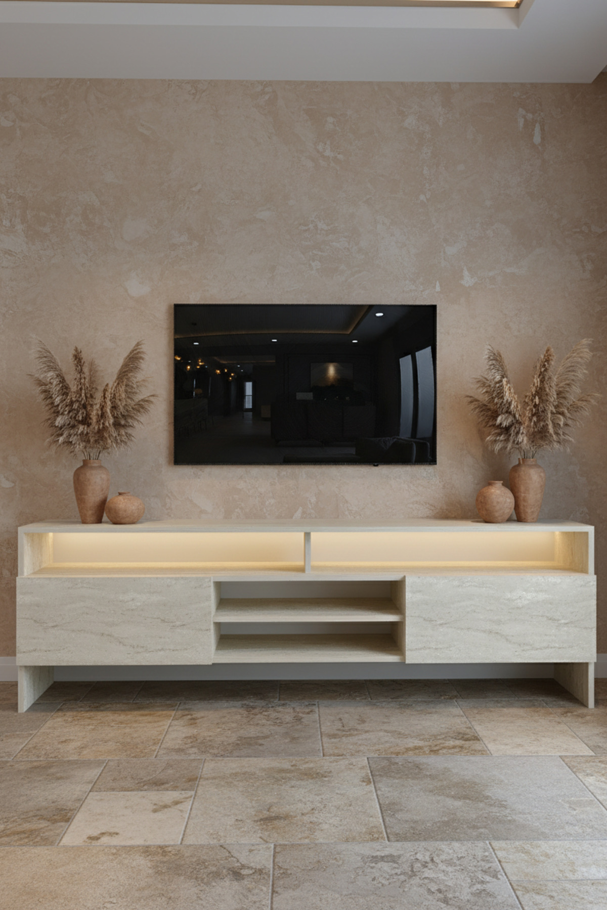 Focal Point "Quick Information and Itemization" Title: Stylish and Convenient 180 cm led TV Unit - High Legged Modern Living Room Furniture Description: Your new favorite furniture with its elegant design, ease of use and lighting system that adds air to the room! Change the mood of your home with its ergonomic dimensions and large storage spaces.