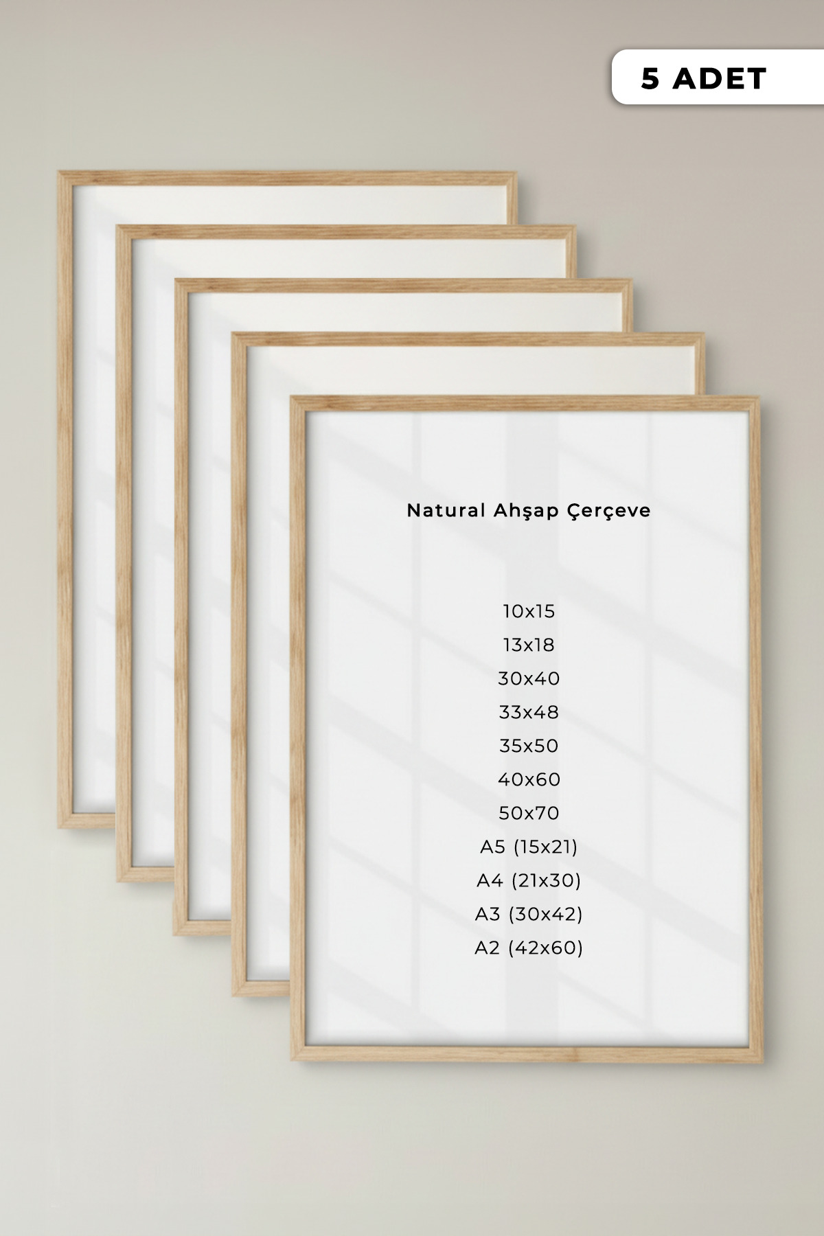 Available size options: 40x60 cm If the size you choose is, for example, 40x60 cm, 5 pieces of 40x60 cm Wooden Frame will be sent to you.