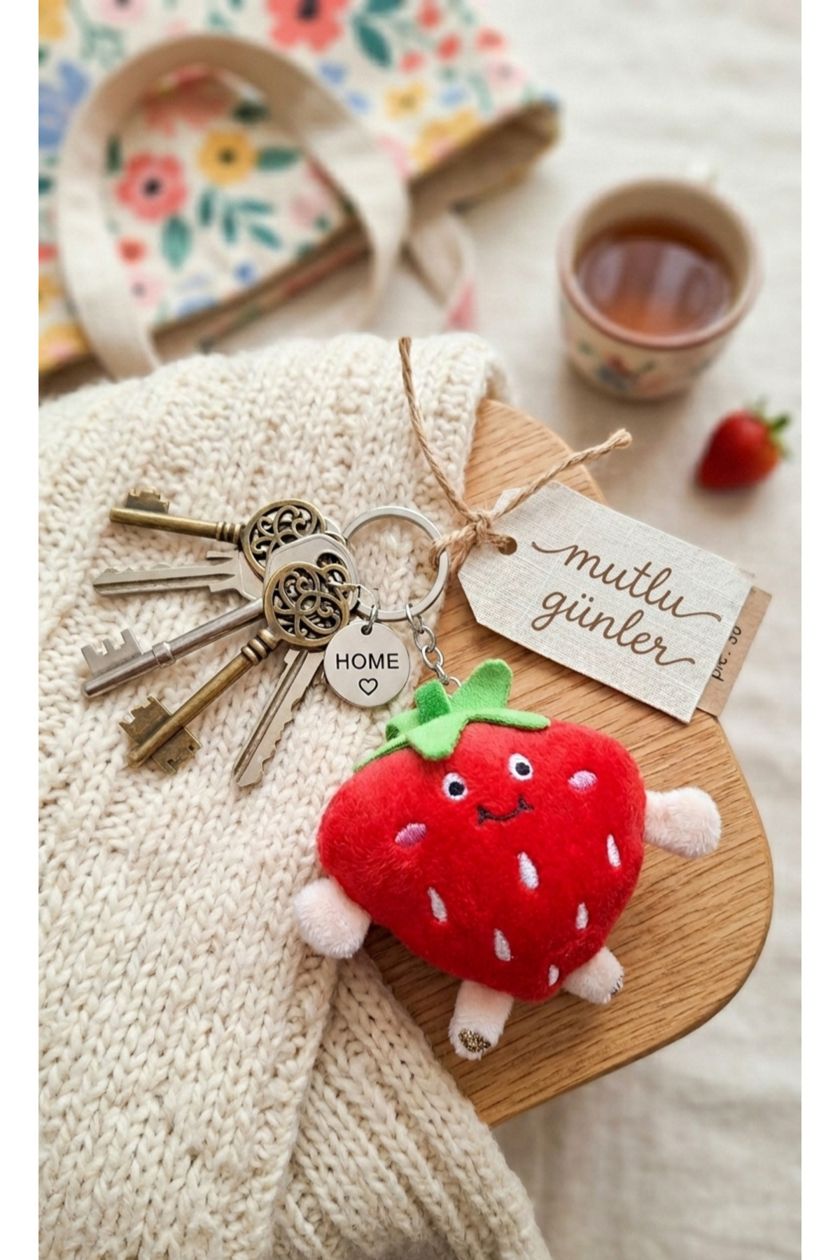 Sturdy Strap: Thanks to its gold metal ring, it can be securely attached to all kinds of bags and keys.