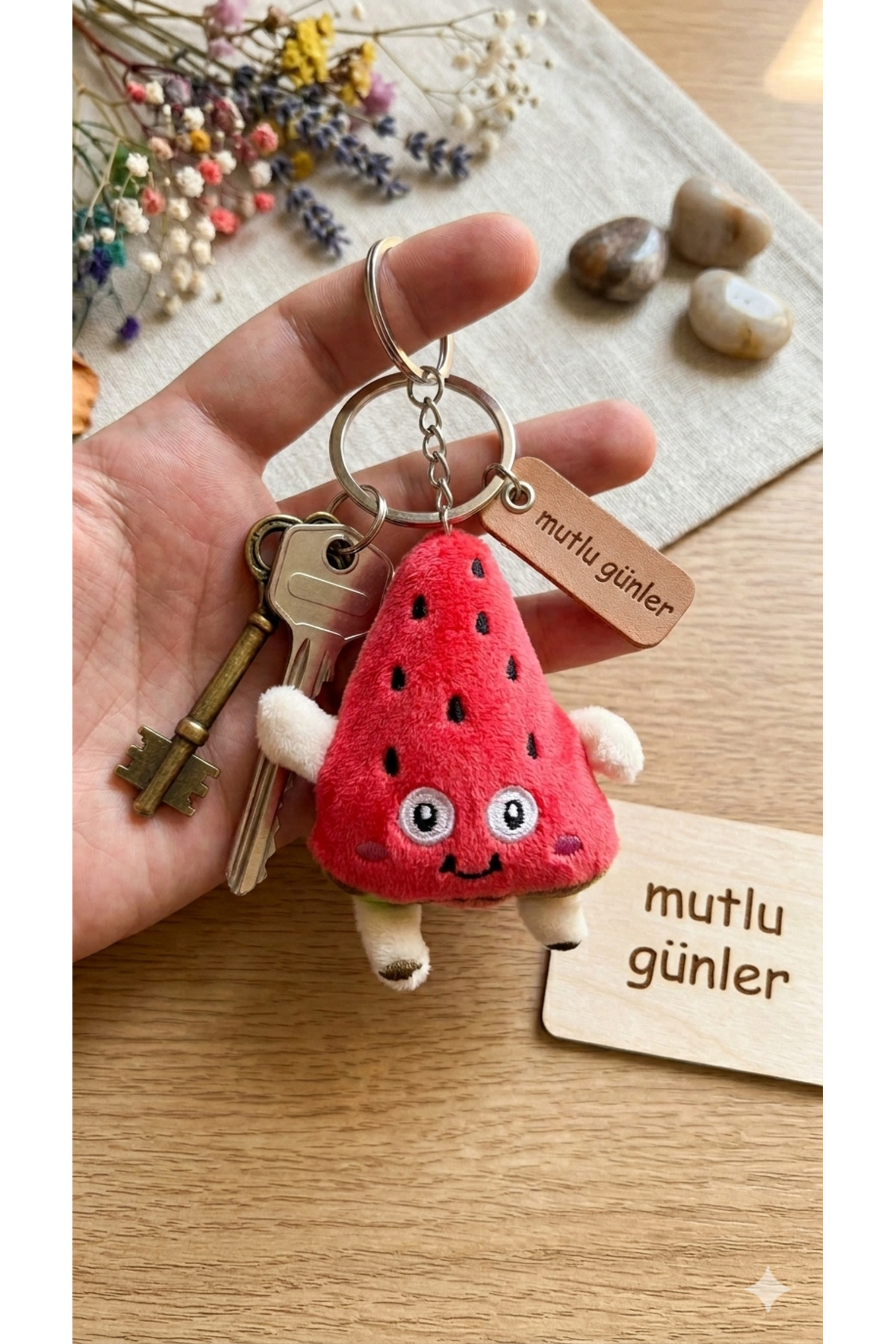 Sturdy Strap: Thanks to its gold metal ring, it can be securely attached to all kinds of bags and keys.