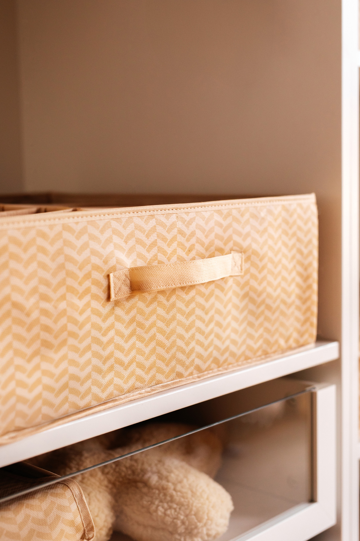 It makes you feel the soft touch with its fabric material and allows you to store it without damaging your belongings.
