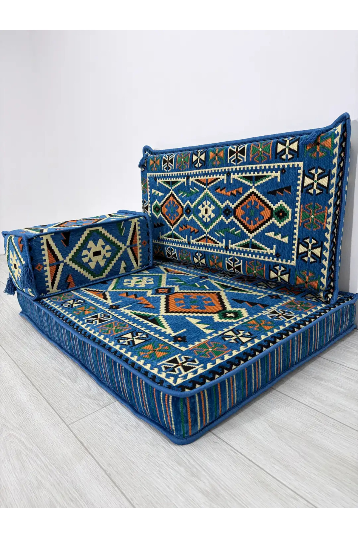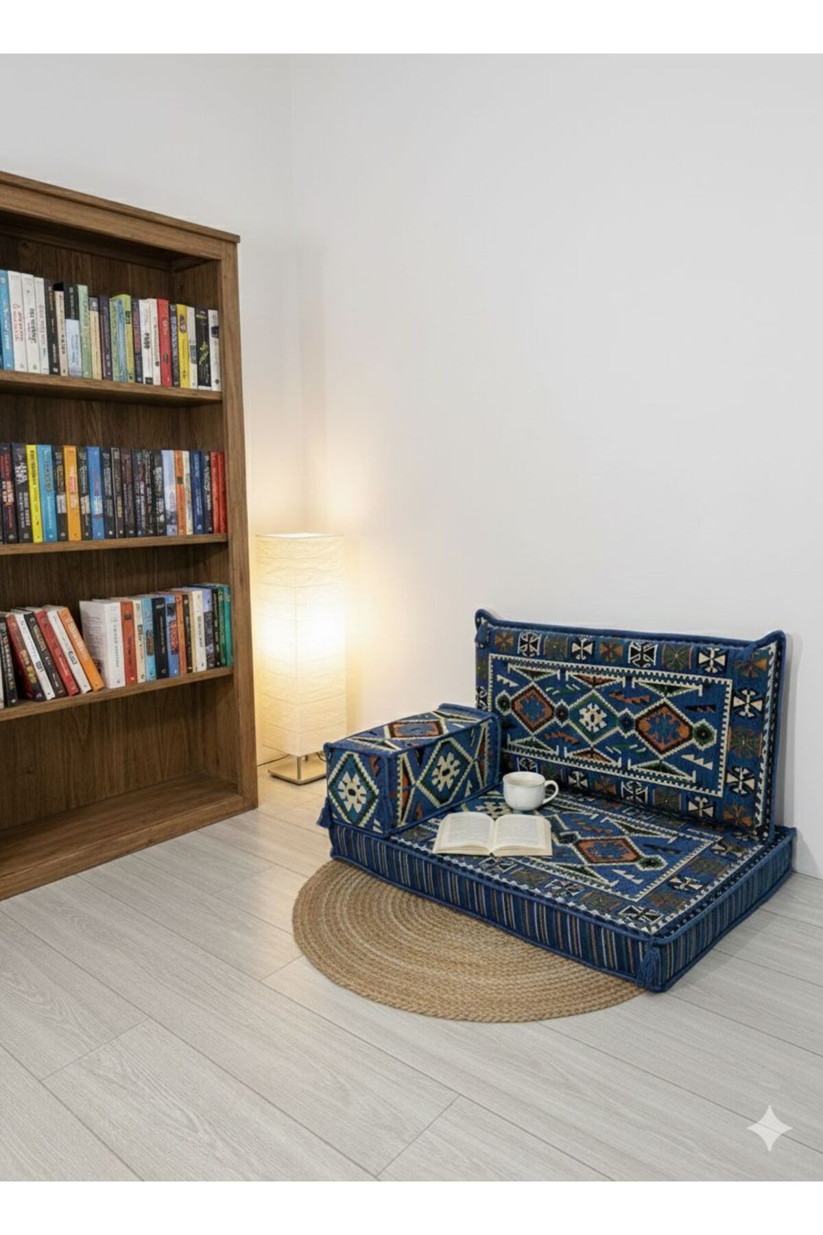 Set Content: It consists of 3 pieces in total: 1 Floor Cushion (70 x 95 x 10 cm) 1 Back Cushion, (42 x 92 x 10 cm) 1 Armrest (20 x 20 x 50 cm).