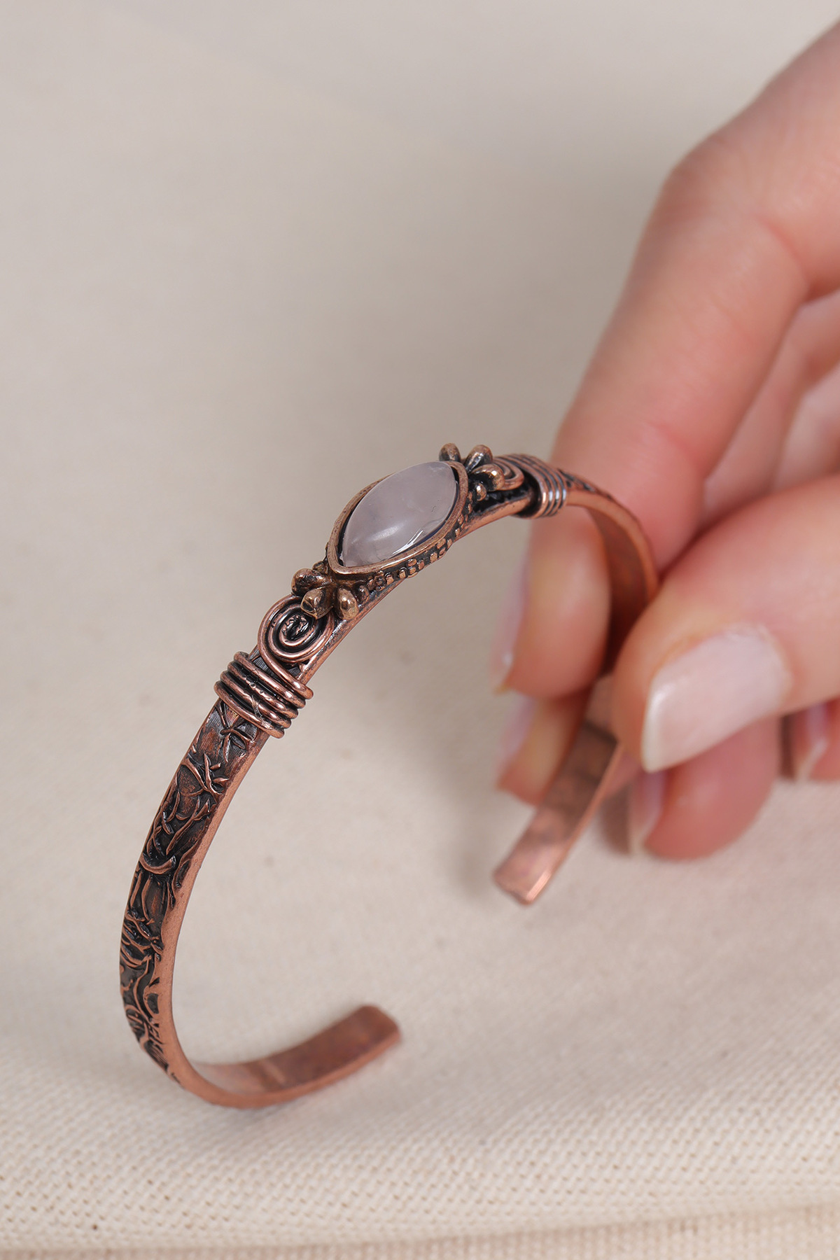 The Pure Copper Authentic Thin Bracelet with White Quartz Stone in the unique collection of Suspension Accessories is a special accessory that attracts attention with its elegance and health benefits.