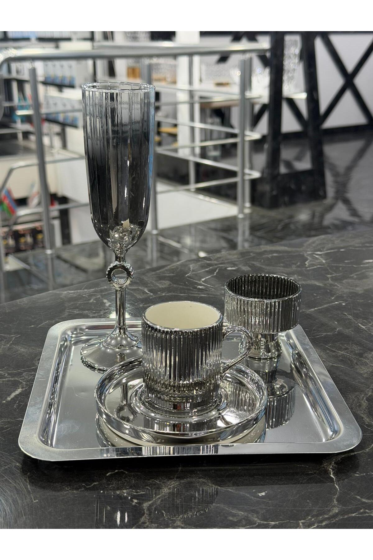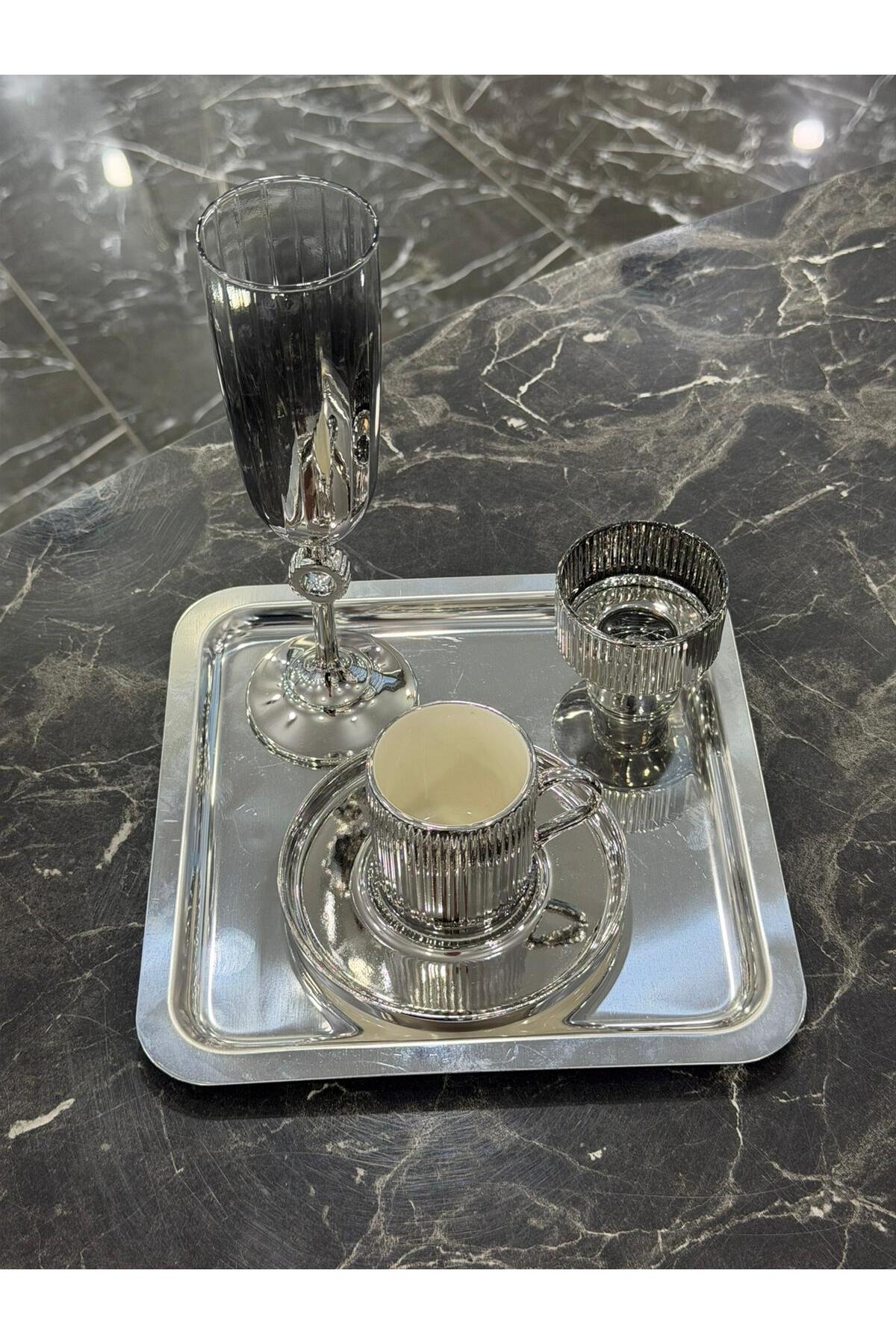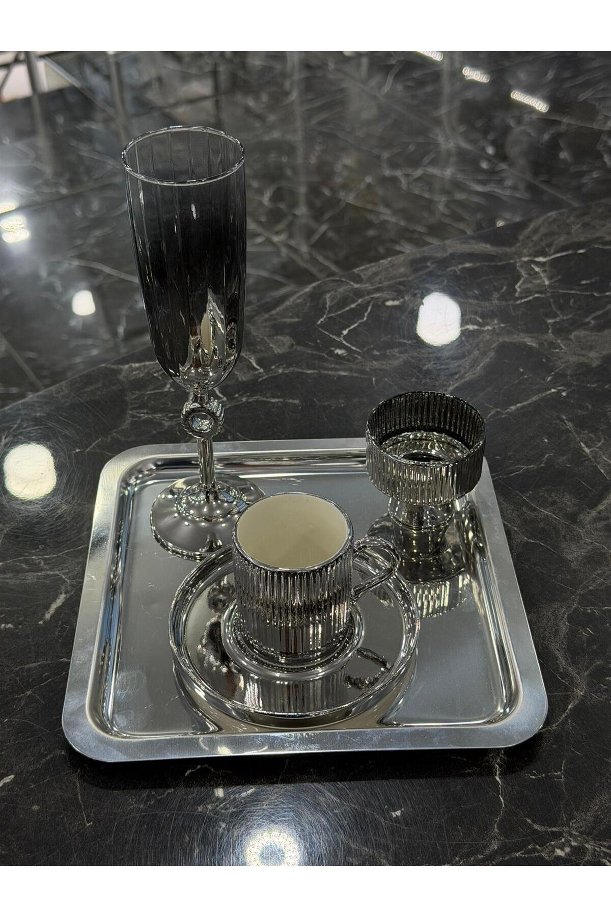 Set includes 4 pieces: Silver Coffee Cup, Coffee Side, Turkish Delight Holder and Tray.