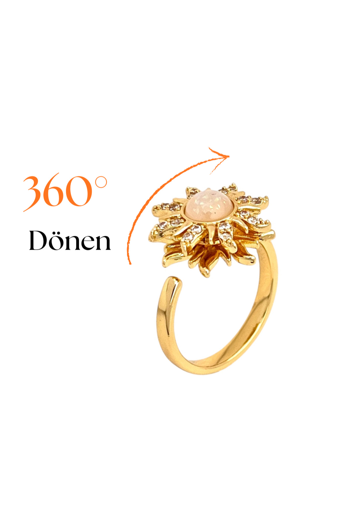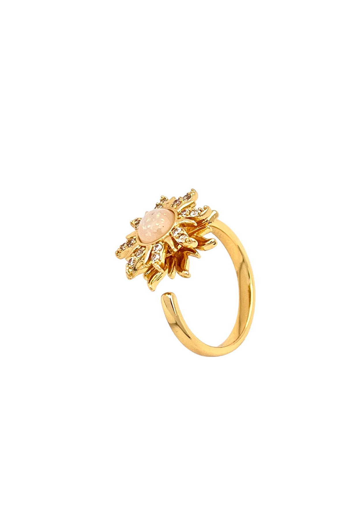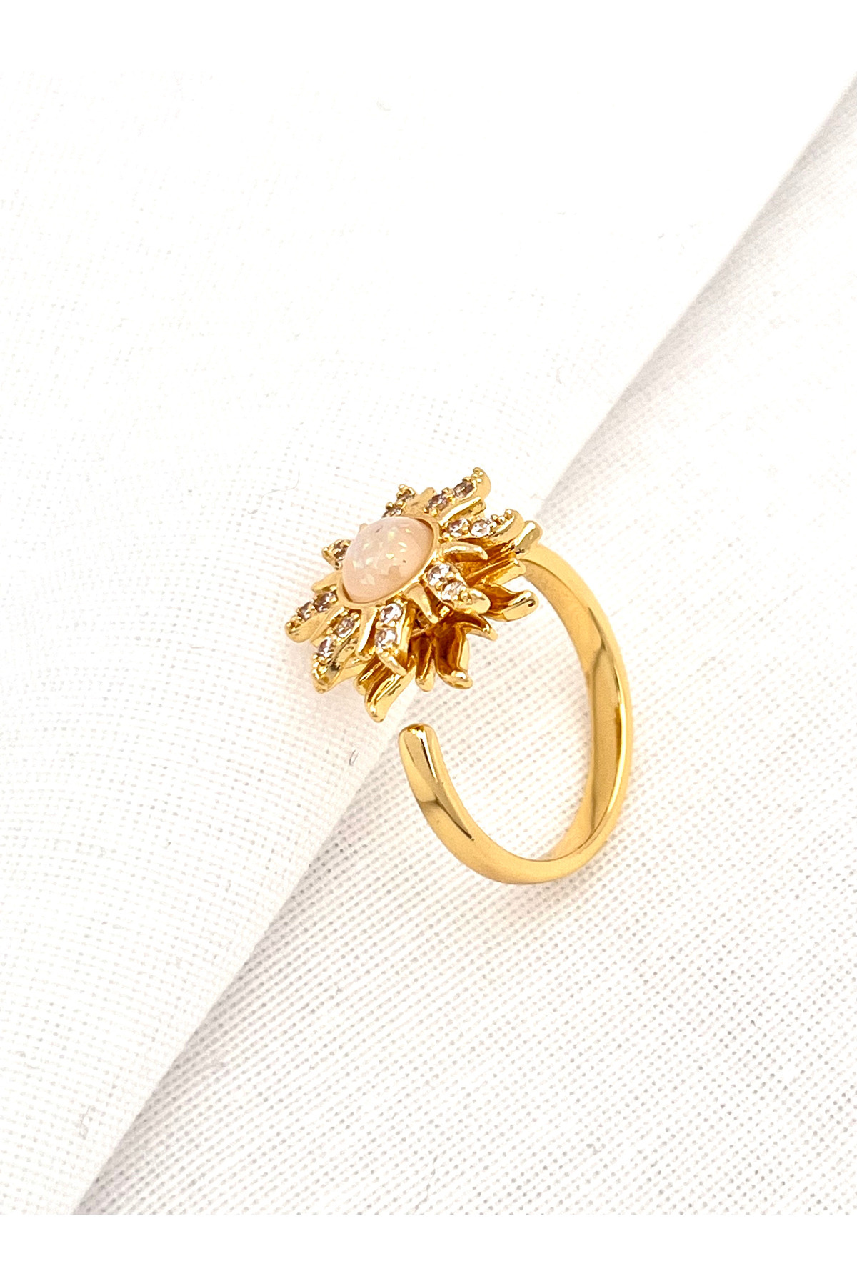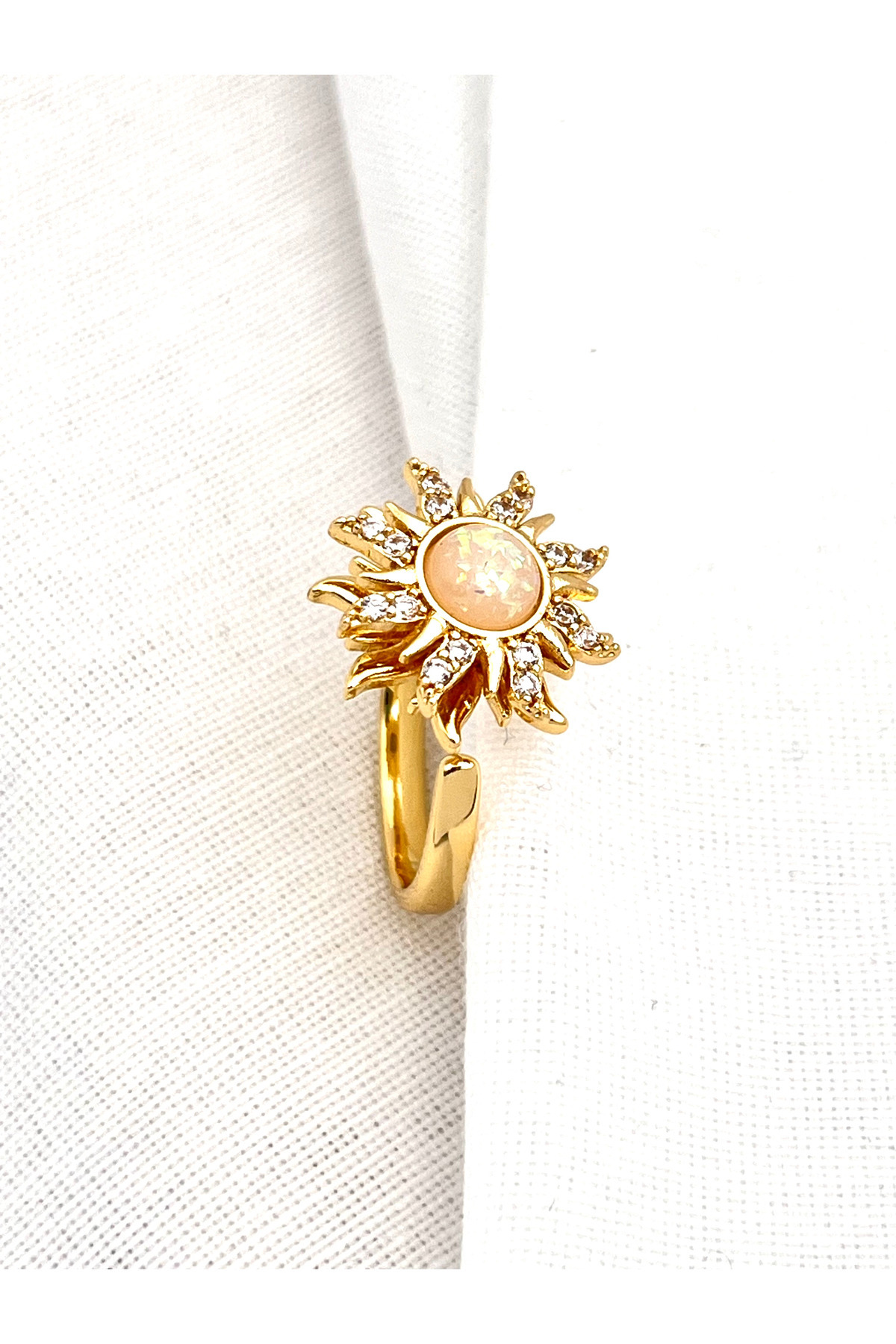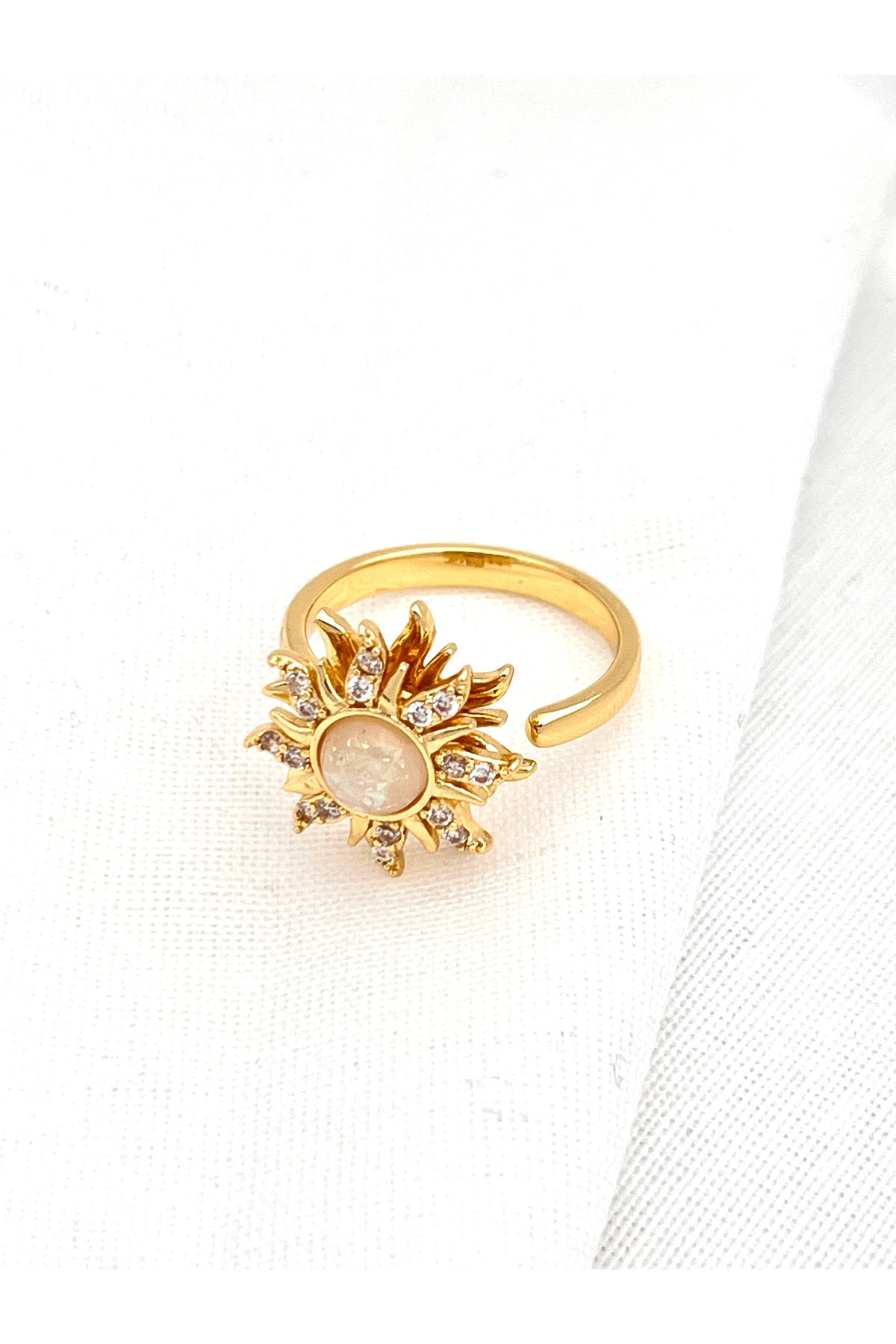 The sun-motivated ring, decorated with eye-catching zircon stones, represents elegance and elegance on your fingers.