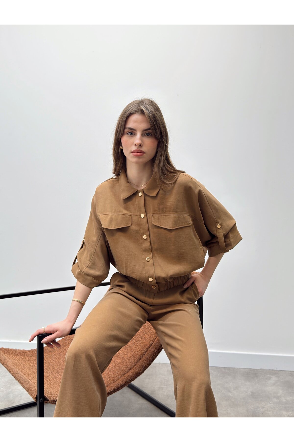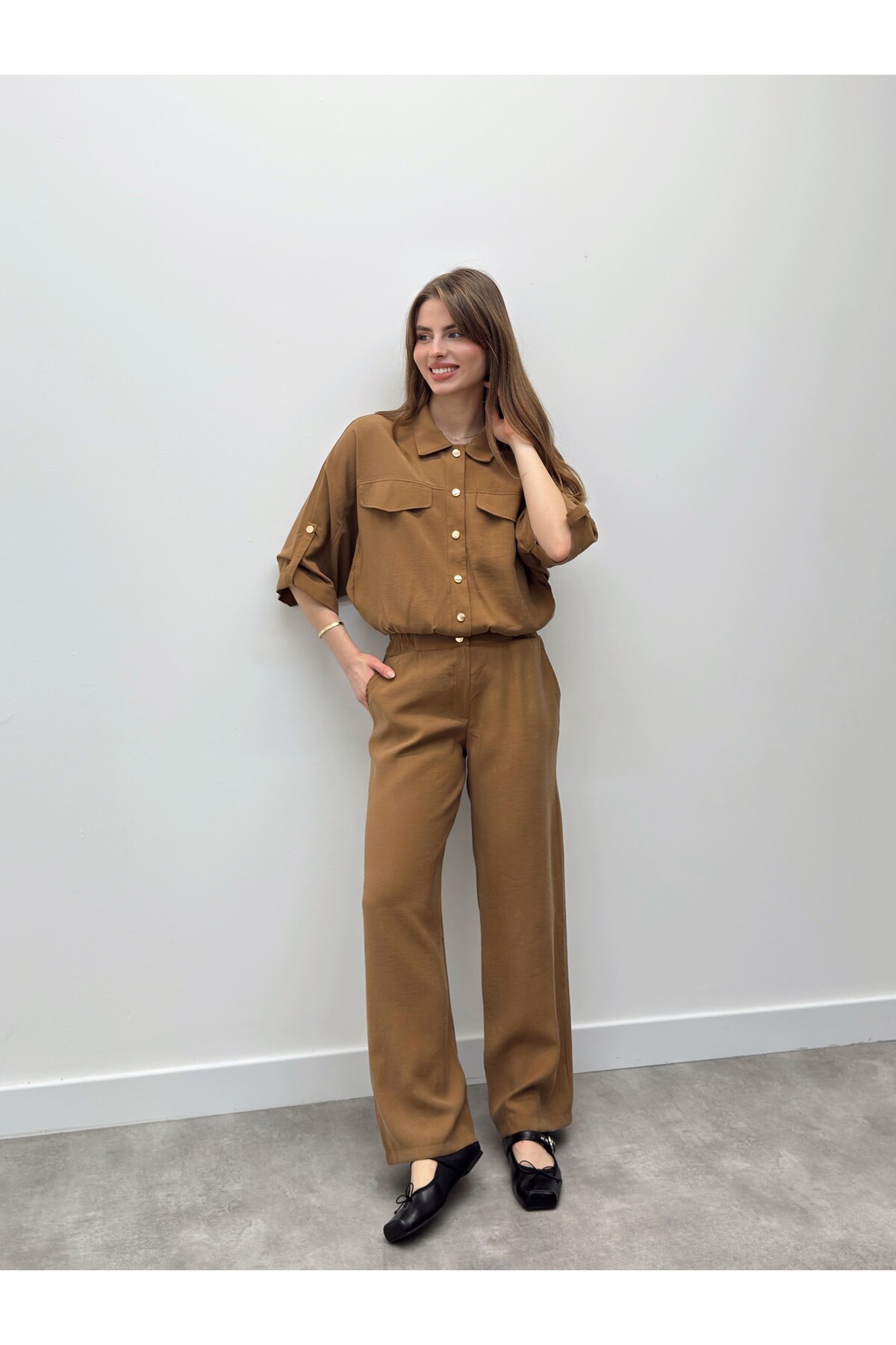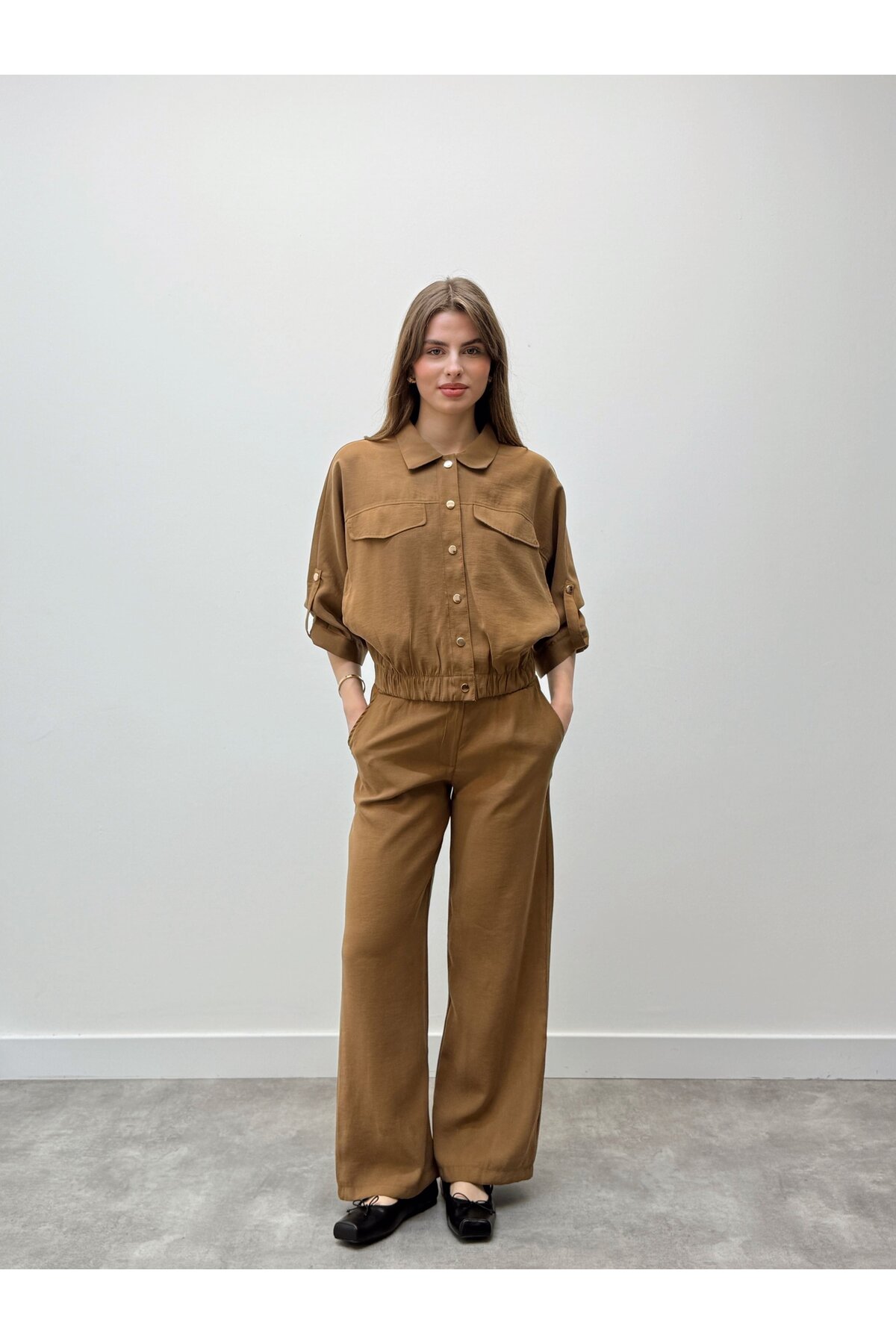Elara Jacket Pants Set in mustard color, ideal for a modern and stylish look.