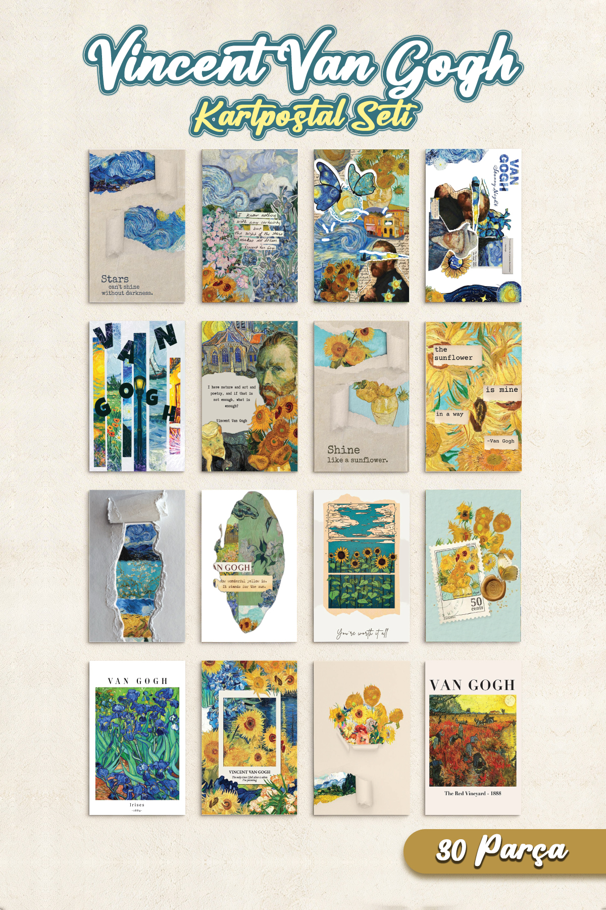 Modern Aesthetic Poster Set Van Gogh 30 Pieces Frameless - Thick Coated Paper