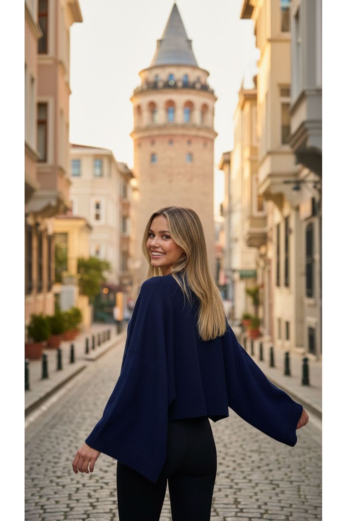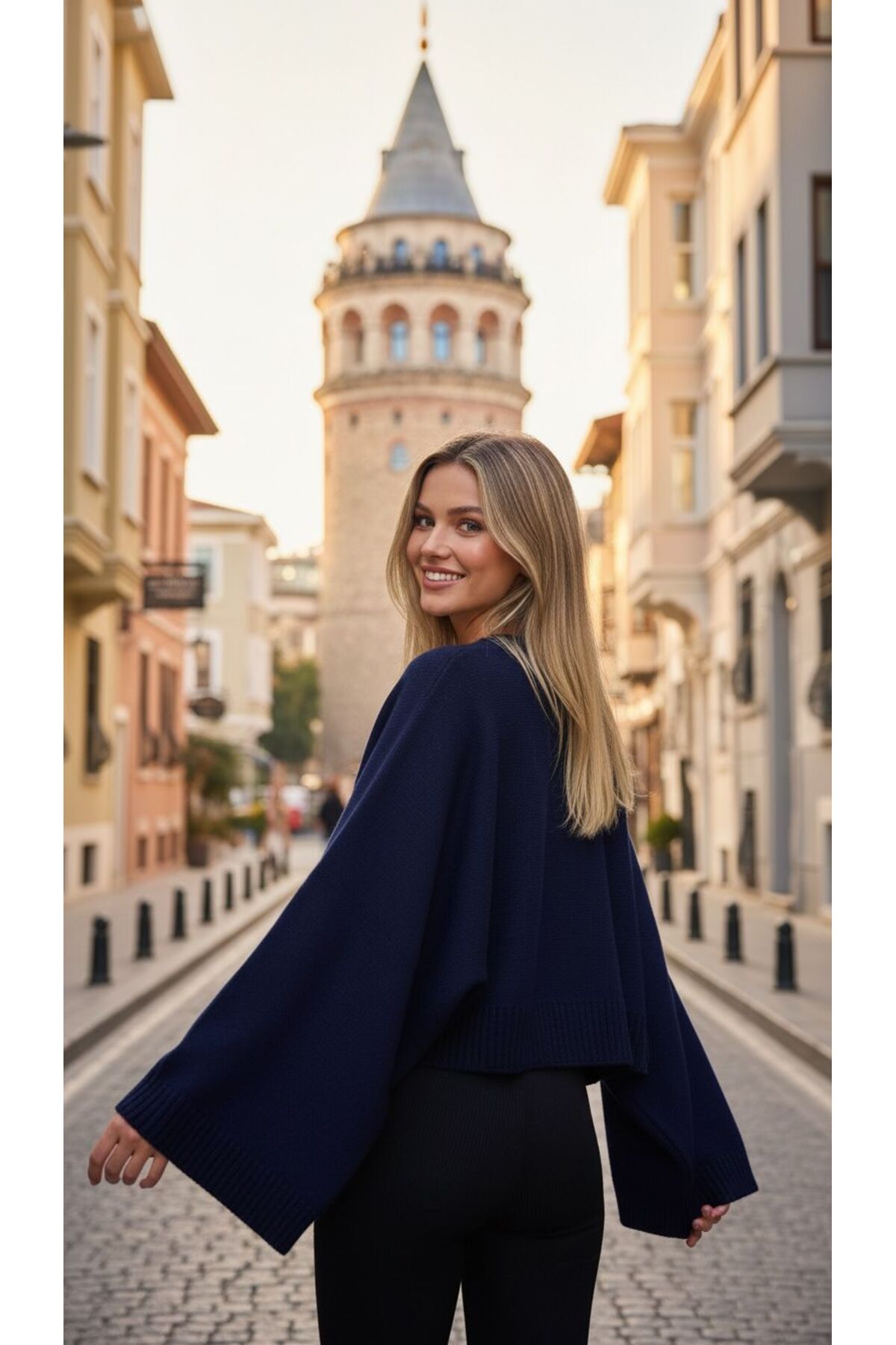 MELEK ARAZ Women's Navy Blue Bat Sleeve Sweater | ByTR