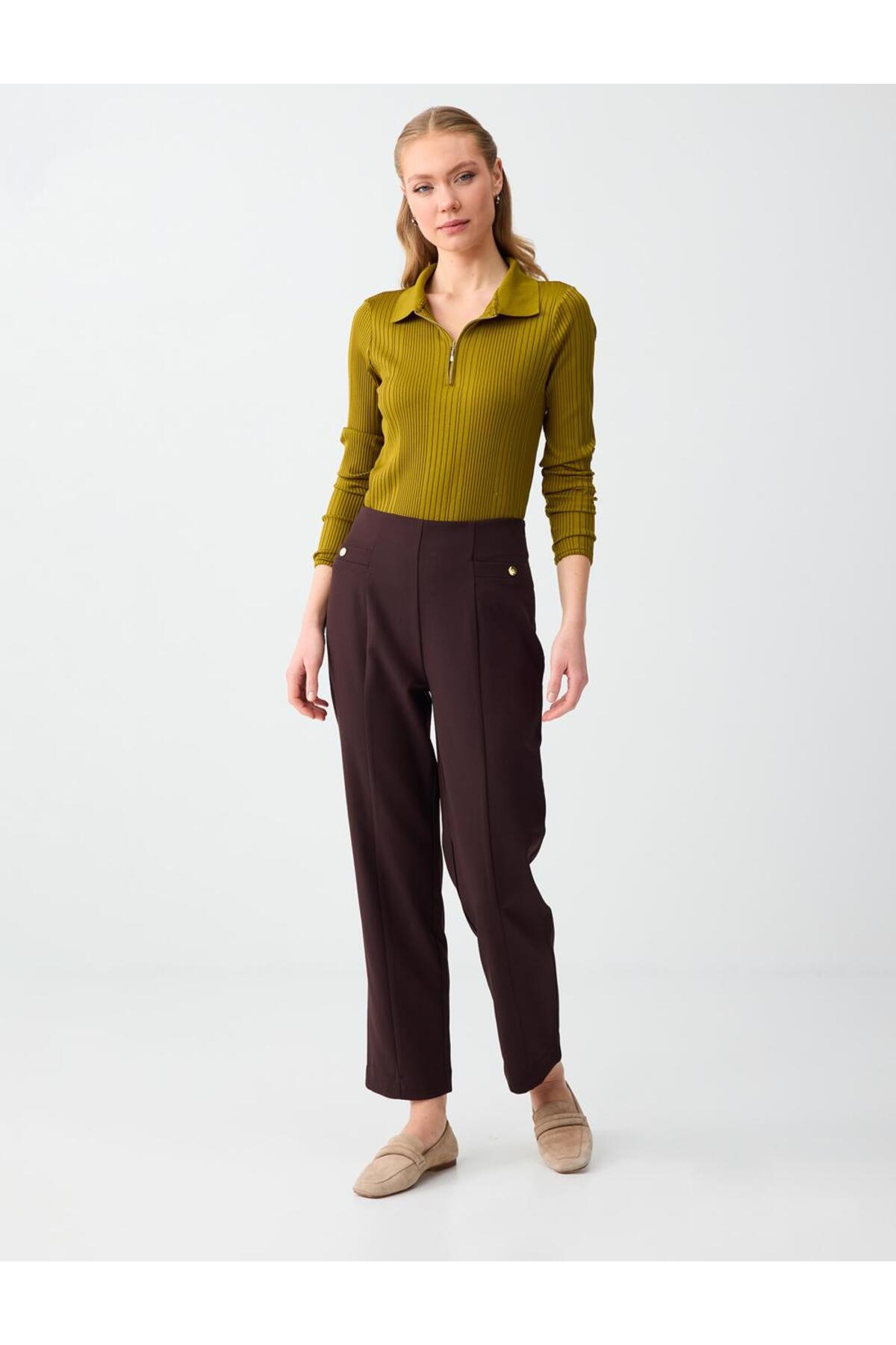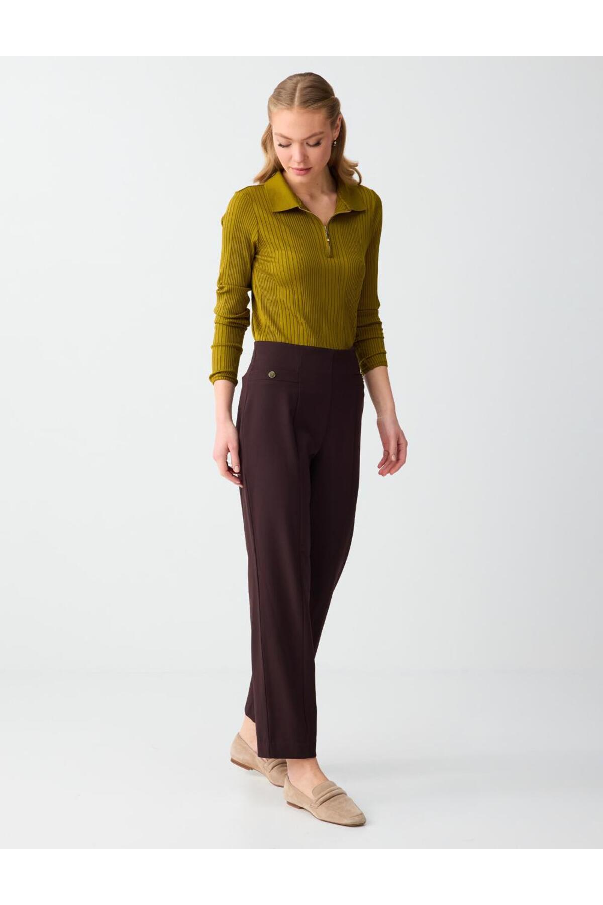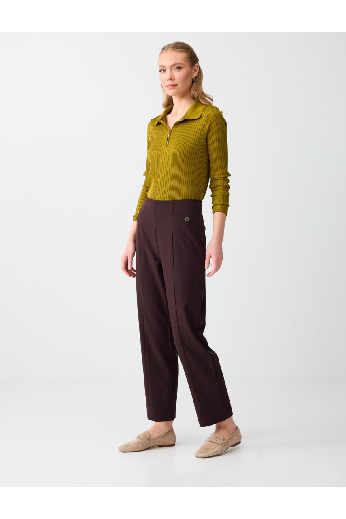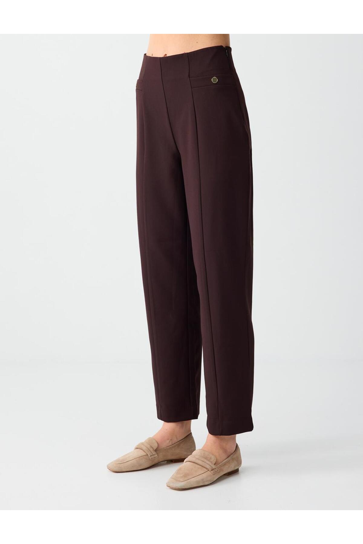 Jimmy Key Bitter Brown High Waist Button Detailed Woven Pants | ByTR