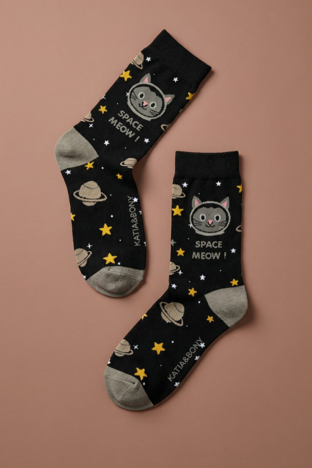 Katia&Bony Space Patterned Black Kids Socket Socks | ByTR