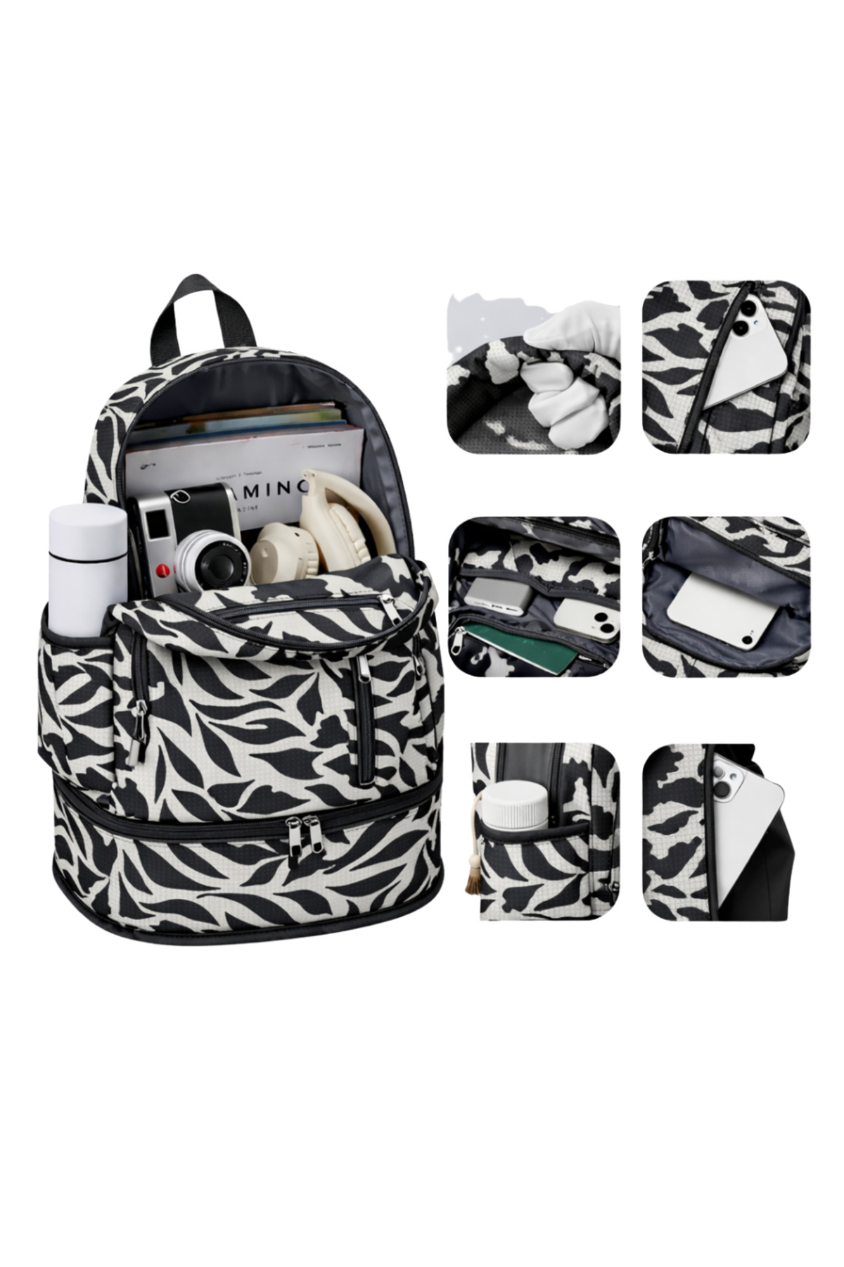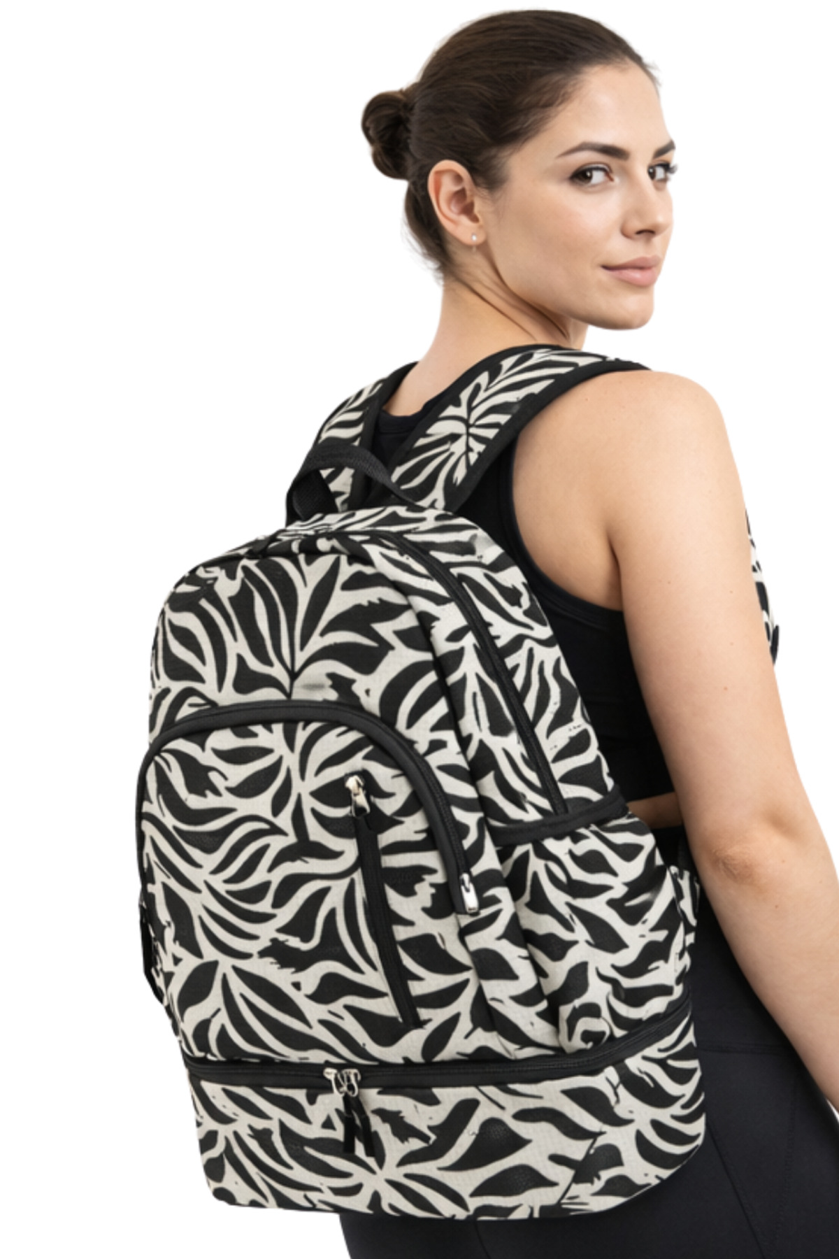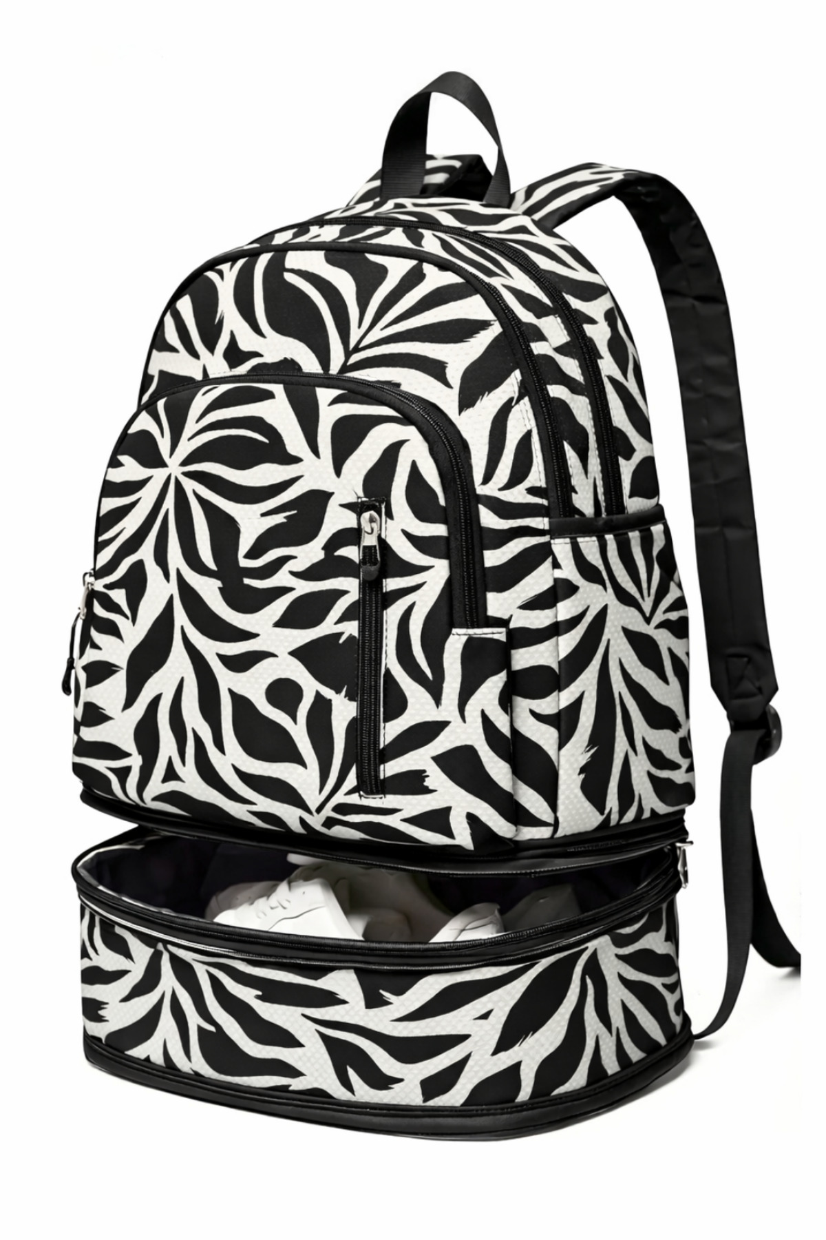 woys Black and White Patterned Professional Sports Backpack - Shoe Compartment , Laptop Compartment | ByTR