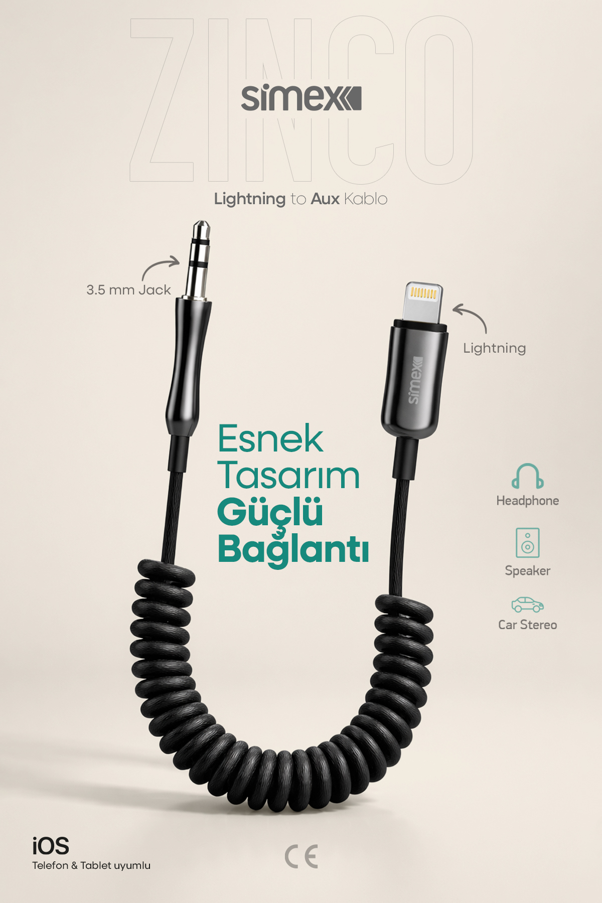 Featured Features - Compatible with iPhone and iPad devices with Lightning inputs - 3.5 mm aux (Jack) connection support - Use with vehicle tape recorders, speakers and headphone systems - Flexible spiral cable design (does not interfere) - Strong and stable sound transmission - Durable metal terminals - Compact and portable structure *Wide Usage Area - Thanks to the Lightning to aux cable, you can easily listen to the music on your phone on all audio devices with vehicle sound system, home speaker, headphone or aux input.