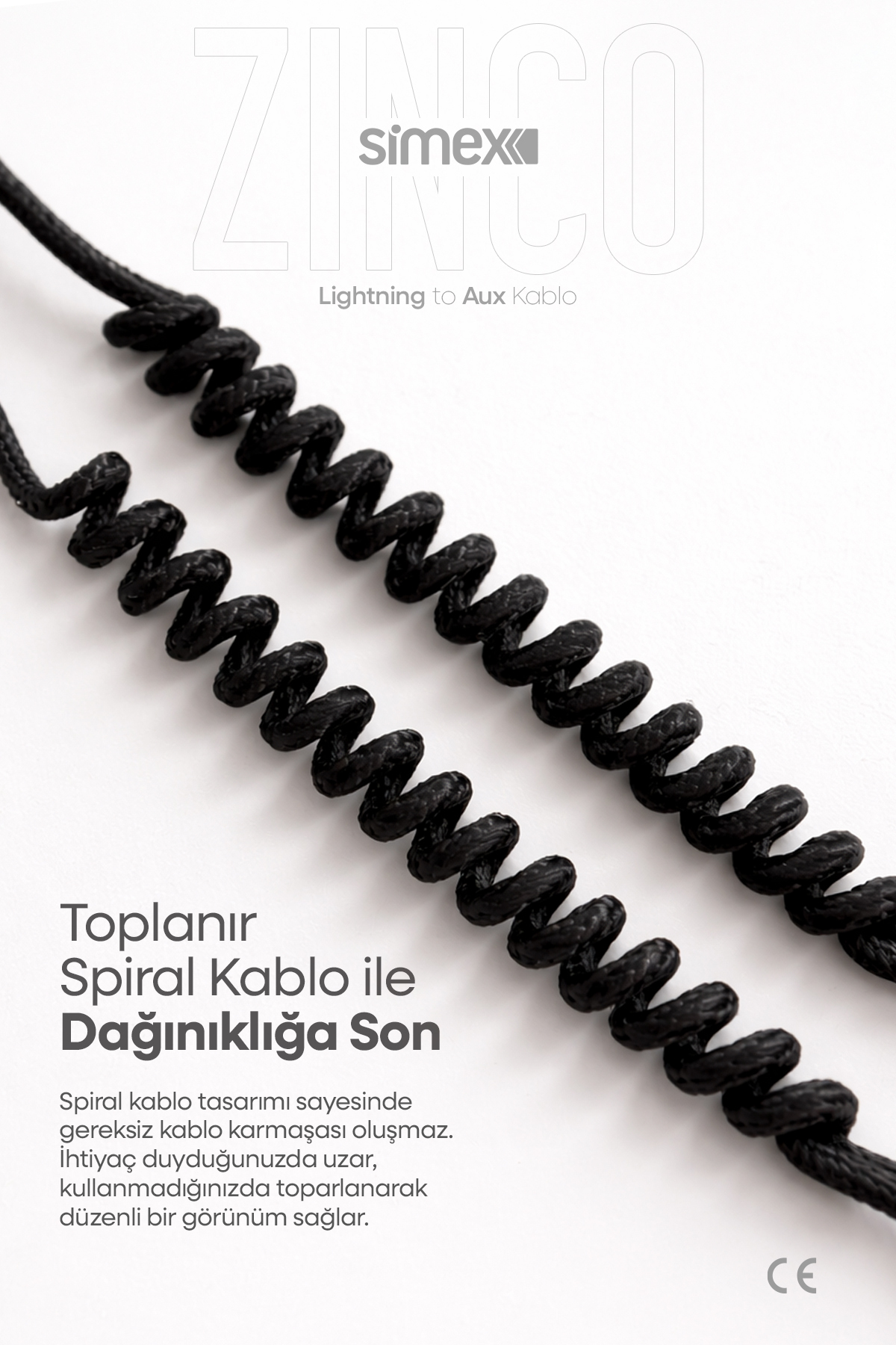 Lightning to aux spiral audio cable, which combines the music on your phone with powerful audio systems, offers a combination of quality audio transmission and practical use.