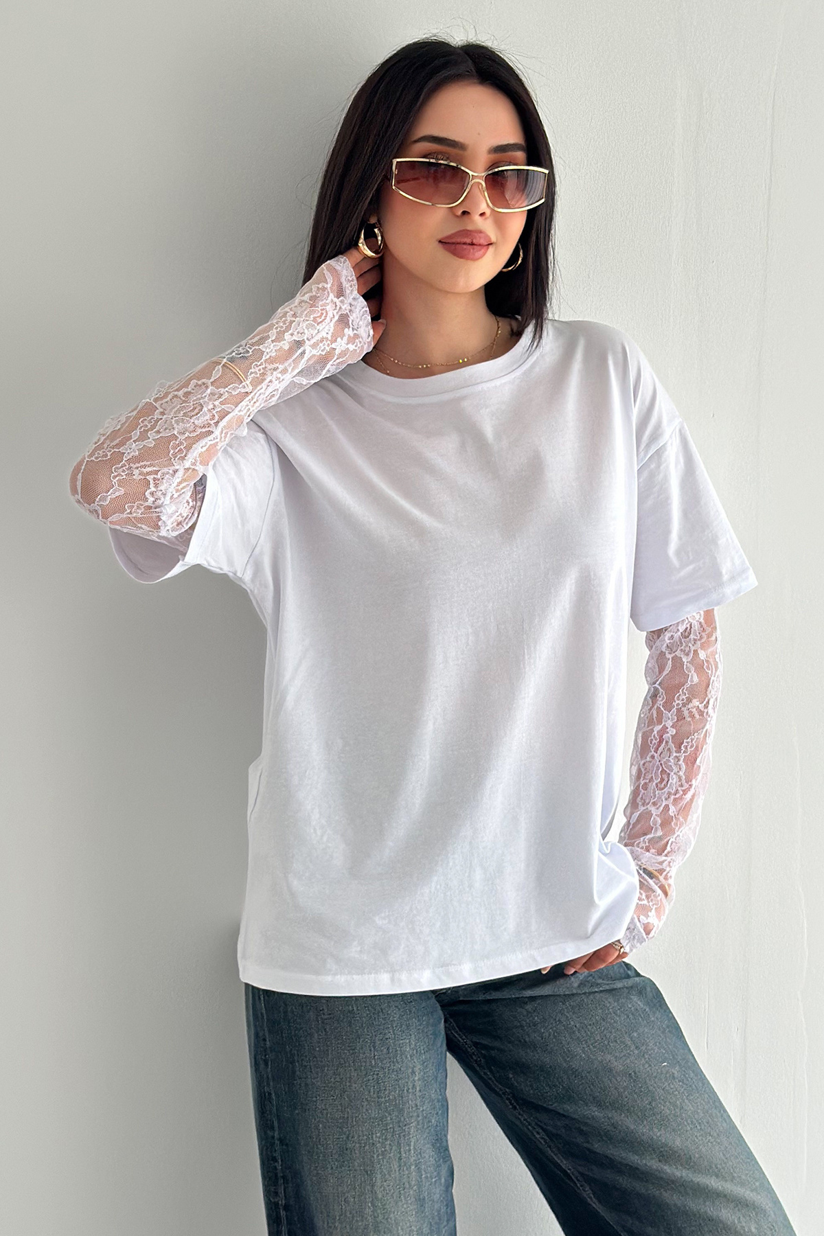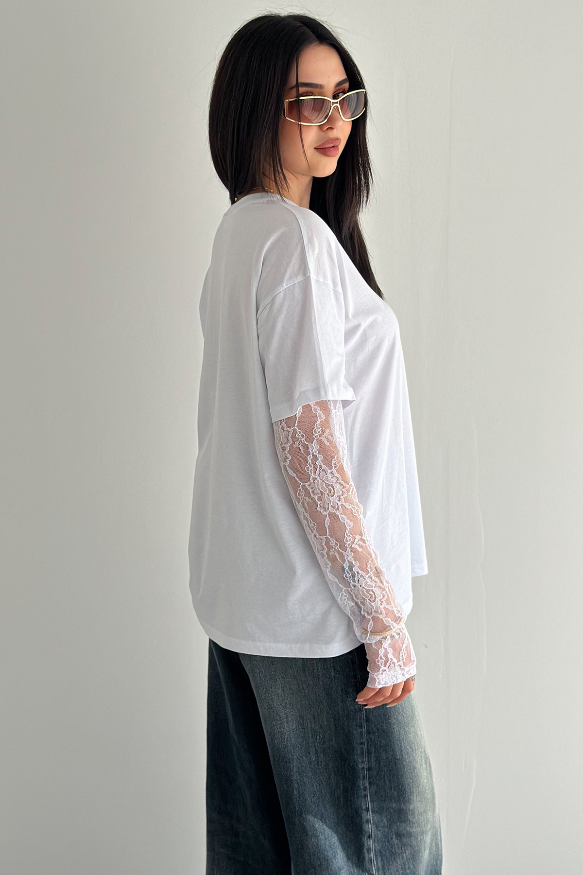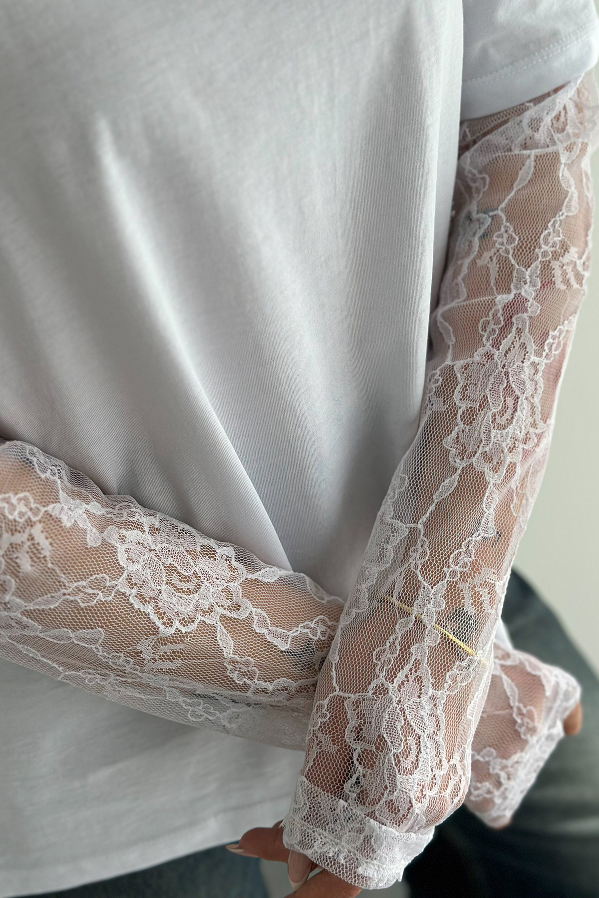 Lace Sleeve T-Shirt – Black Elegance Tee 2689