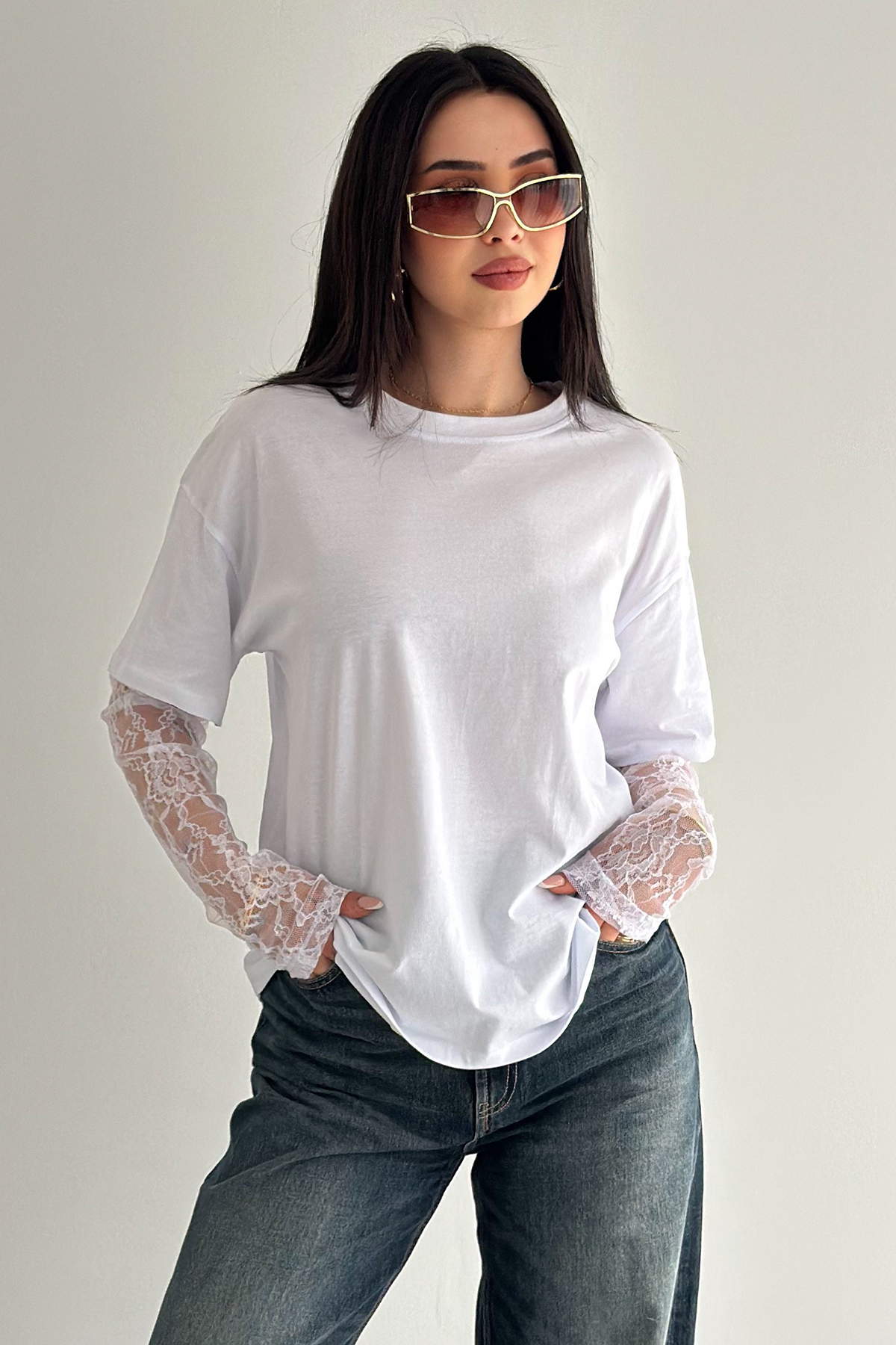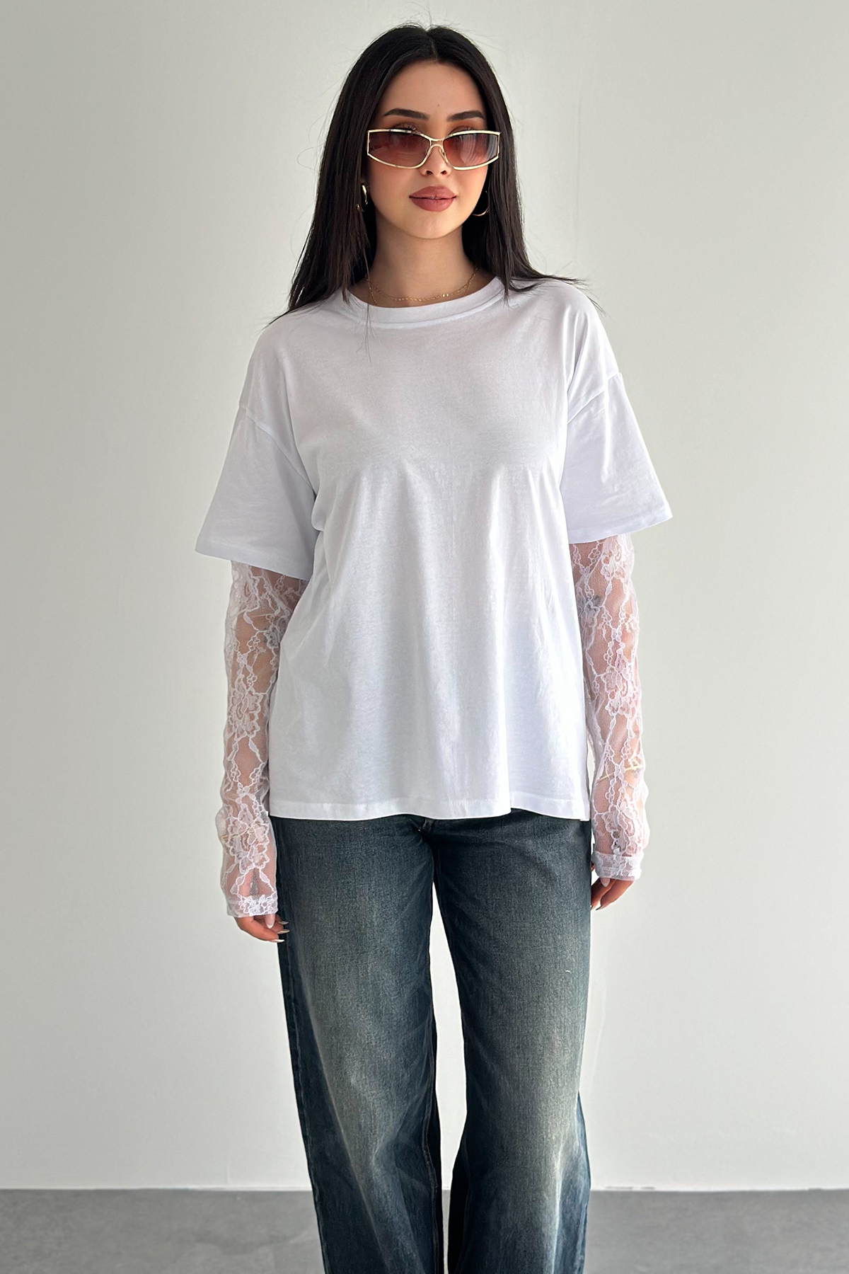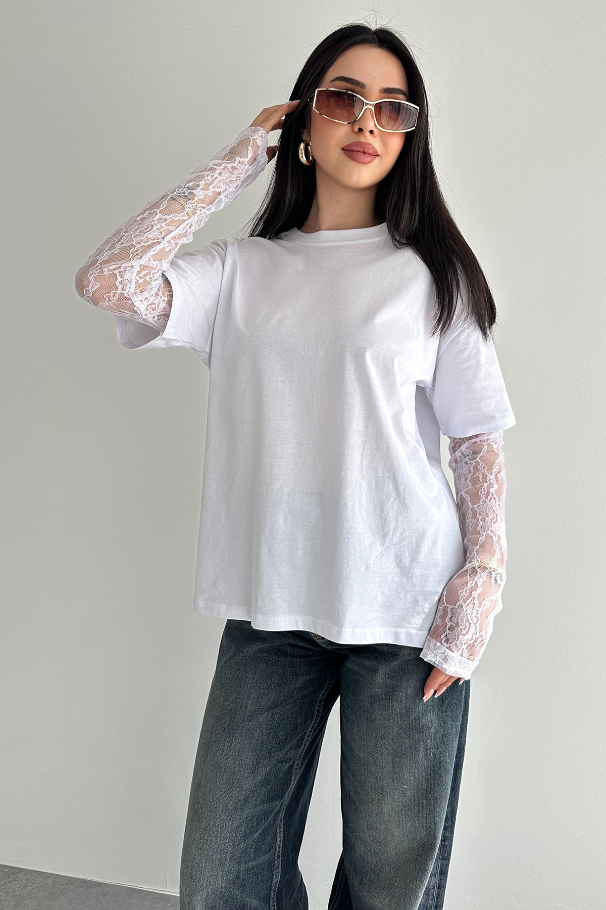 Lace Sleeve T-Shirt – Black Elegance Tee 2689